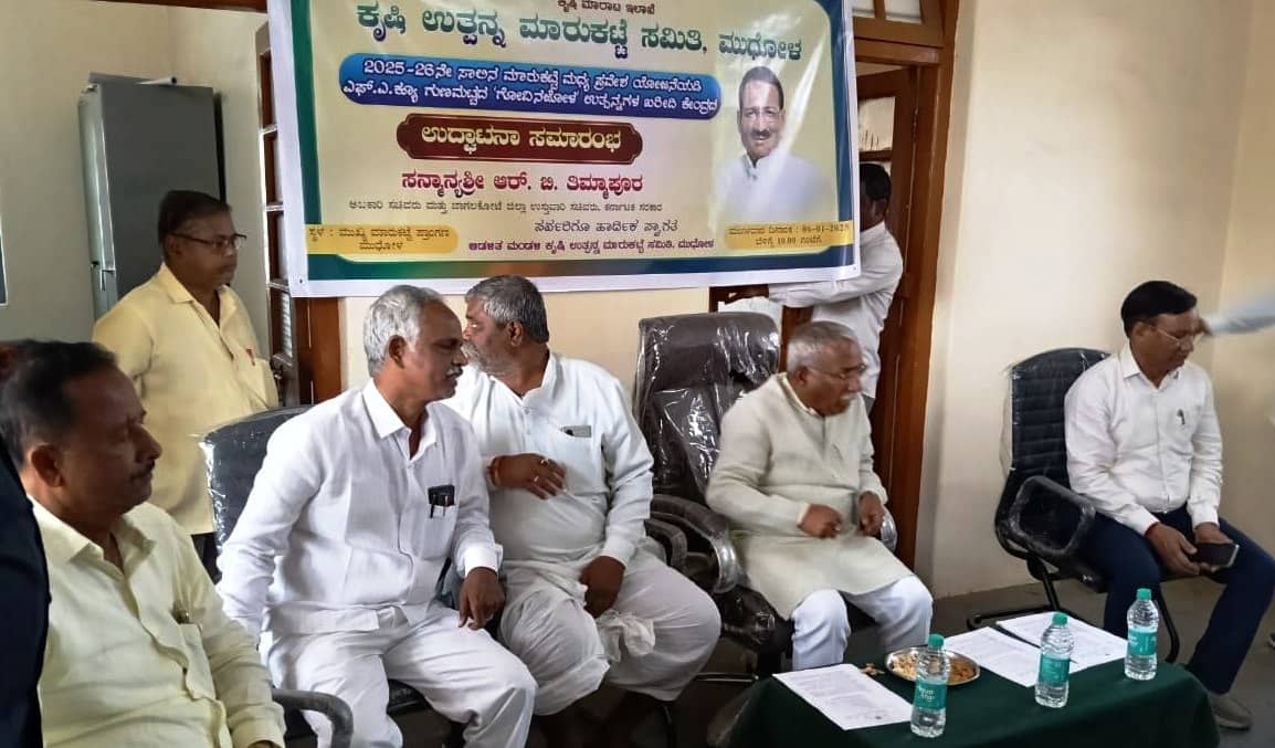 ಪ್ರಸಕ್ತ ಸಾಲಿನ ಮಾರುಕಟ್ಟೆ ಮಧ್ಯ ಪ್ರವೇಶ ಯೋಜನೆಯಡಿ ಎಫ್.ಎ.ಕ್ಯೂ ಗುಣಮಟ್ಟದ ಗೋವಿನಜೋಳ ಖರೀದಿಯ ನೋಂದಣಿ ಕಾರ್ಯಕ್ಕೆ ಅಬಕಾರಿ ಹಾಗೂ ಜಿಲ್ಲಾ ಉಸ್ತುವಾರಿ ಸಚಿವ ಆರ್.ಬಿ. ತಿಮ್ಮಾಪೂರ ಮಂಗಳವಾರ ಚಾಲನೆ ನೀಡಿದರು.