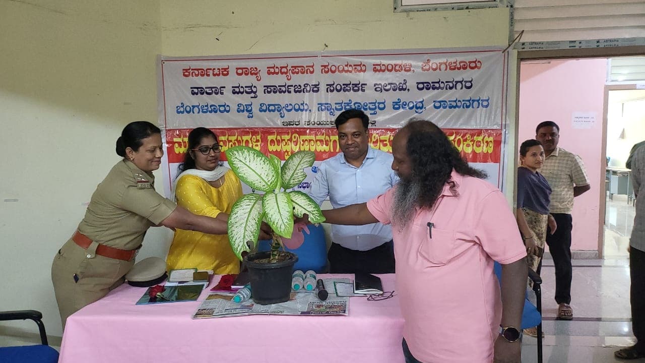 ಬೆಂಗಳೂರು ವಿವಿ ರಾಮನಗರ ಸ್ನಾತಕೋತರ ಕೇಂದ್ರದ ನಿರ್ದೇಶಕ, ಪ್ರಾಧ್ಯಾಪಕ ಪ್ರೊ.ಬಿ.ಗಂಗಾಧರ್, ಇಂದಿನ ದಿನಮಾನಗಳಲ್ಲಿ ನೈತಿಕತೆ, ಪ್ರಾಮಾಣಿಕತೆ ಕಳೆದುಕೊಳ್ಳುವುದು ಒಂದು ವ್ಯಸನವಾಗಿದೆ. ಅದರ ಸಾಲಿಗೆ ಇದೀಗ ಮದ್ಯ ಮತ್ತು ಮೊಬೈಲ್ ಸೇರಿದೆ ಎಂದರು.ವಾರ್ತಾ ಮತ್ತು ಸಾರ್ವಜನಿಕ ಸಂಪರ್ಕ ಇಲಾಖೆಯ ಹಿರಿಯ ಸಹಾಯಕ ನಿರ್ದೇಶಕ ರವಿರಾಜ್ , ಡಾ. ಪ್ರಸನ್ನಕುಮಾರ್ , ಉಪನ್ಯಾಸಕರಾದ ಎಂ.ಪಿ ಶ್ರೀರಂಗನಾಥ್, ಸ್ನಾತಕೋತ್ತರ ಕೇಂದ್ರದ ಅಧ್ಯಾಪಕರು, ವಿದ್ಯಾರ್ಥಿಗಳು ಹಾಗೂ ಸಿಬ್ಬಂದಿಗಳು ಉಪಸ್ಥಿತರಿದ್ದರು.