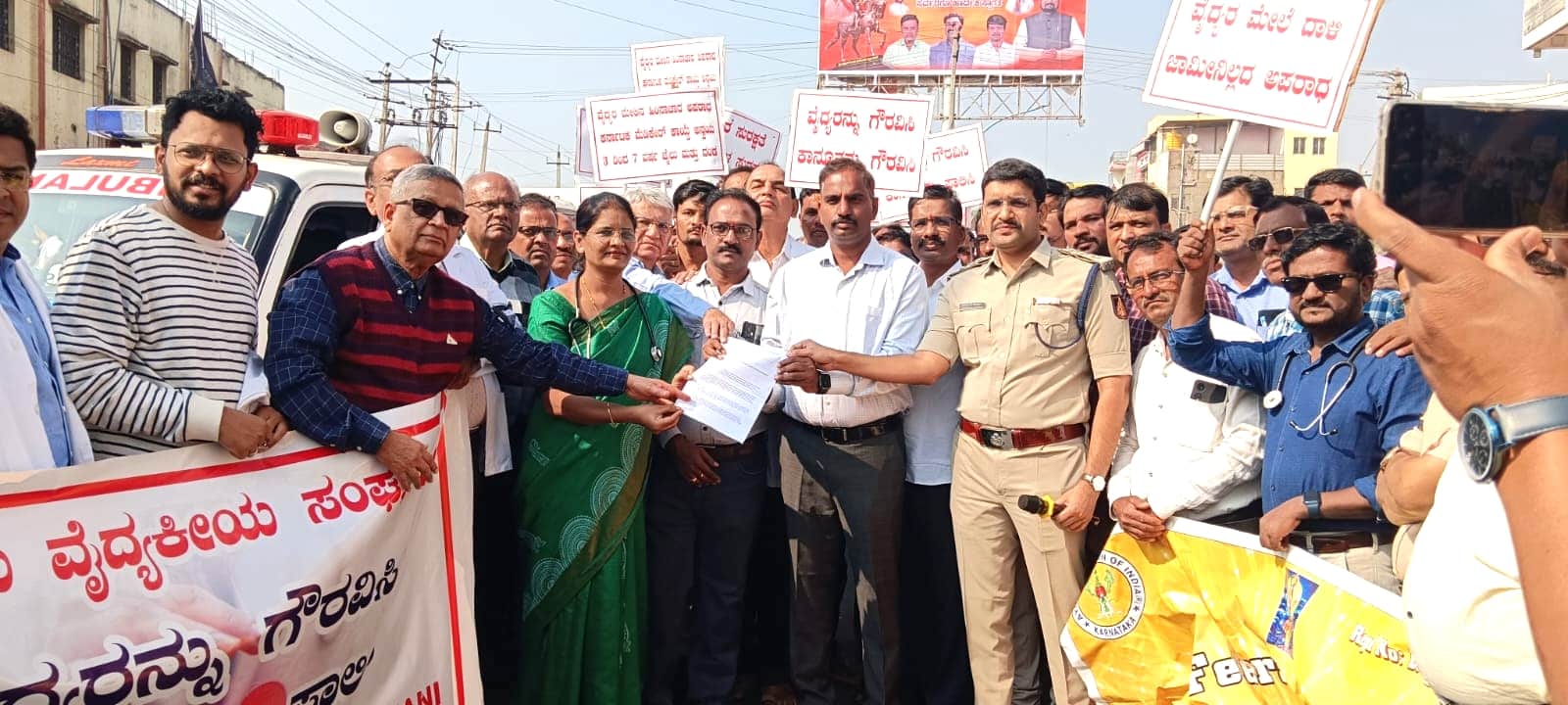 ಈ ಸಂದರ್ಭದಲ್ಲಿ ಡಾ.ಸಿ.ಎ.ಶಂಕ್ರಟ್ಟಿ, ಡಾ.ಮಹೇಶ್ ಕಾಪ್ಸೆ, ಡಾ.ಆನಂದ ಕುಲಕರ್ಣಿ, ಡಾ.ಜಿ.ಎಸ್.ಪಾಟೀಲ, ಡಾ.ಮುರುಗೇಶ ಅವಟಿ, ಡಾ.ರಮೇಶ್ ಗುಳ್ಳ, ಡಾ.ರಾಹುಲ್ ಬೋಸಲೆ, ಡಾ.ವಿಜಯ ಚೈನಿ, ಡಾ.ರವಿ ಪಾಂಗಿ, ಡಾ.ವಿಶ್ವನಾಥ ಕುಲಕರ್ಣಿ, ಡಾ.ಸಚಿನ್ ಮೀರಜ, ಡಾ.ರಮೇಶ್ ಕಾರೆ, ಡಾ.ನಂದೀಶ್ ತೇರದಾಳ, ಡಾ.ರವಿ ಚೌಗಲಾ, ಡಾ.ಸಂಗಮೇಶ್ ಮಮದಾಪುರ, ಡಾ.ಚಿದಾನಂದ ಮೇತ್ರಿ, ಡಾ.ಪ್ರಕಾಶ್ ಕುಮಠಳ್ಳಿ, ವಿಜಯಕುಮಾರ ಬುರ್ಲಿ, ಪ್ರಶಾಂತ ತೋಳ್ಕರ, ಮಹದೇವ ಹಳ್ಳದಮಳ ಸೇರಿ ವೈದ್ಯರು, ಔಷಧಿ ವ್ಯಾಪಾರಸ್ಥರು, ಆಸ್ಪತ್ರೆ ಸಿಬ್ಬಂದಿ, ಅಂಬುಲೆನ್ಸ್, ನರ್ಸಿಂಗ್, ವೈದ್ಯಕೀಯ ಮಹಾವಿದ್ಯಾಲಯದ ವಿದ್ಯಾರ್ಥಿಗಳು ಪ್ರತಿಭಟನೆಯಲ್ಲಿ ಪಾಲ್ಗೊಂಡಿದ್ದರು.-----