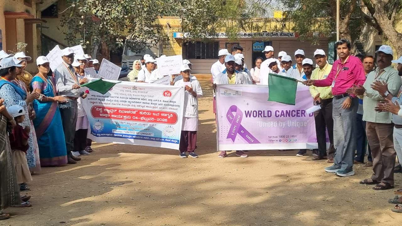 ಕೊಪ್ಪಳ: ಜಿಲ್ಲಾಡಳಿತ, ಜಿಲ್ಲಾ ಪಂಚಾಯಿತಿ, ಜಿಲ್ಲಾ ಆರೋಗ್ಯ ಮತ್ತು ಕುಟುಂಬ ಕಲ್ಯಾಣ ಇಲಾಖೆ, ಜಿಲ್ಲಾ ಅಸಾಂಕ್ರಾಮಿಕ ರೋಗಗಳ ನಿಯಂತ್ರಣ ಅಧಿಕಾರಿಗಳ ಕಚೇರಿ, ಜಿಲ್ಲಾ ಎನ್ಸಿಡಿ ಕೋಶ, ಇಂಡಿಯನ್ ಕ್ಯಾನ್ಸರ್ ಸೊಸೈಟಿ ಮತ್ತು ಕೊಪ್ಪಳದ ಬಸವಶ್ರೀ ಪ್ಯಾರಾಮೆಡಿಕಲ್ ಕಾಲೇಜ್ ಸಂಯುಕ್ತಾಶ್ರಯದಲ್ಲಿ ಹಳೆಯ ಜಿಲ್ಲಾ ಆಸ್ಪತ್ರೆಯ ಆವರಣದಲ್ಲಿ ವಿಶ್ವ ಕ್ಯಾನ್ಸರ್ ದಿನಾಚರಣೆಯ ಅಂಗವಾಗಿ ಜನ ಜಾಗೃತಿ ಜಾಥಾ ನಡೆಯಿತು.