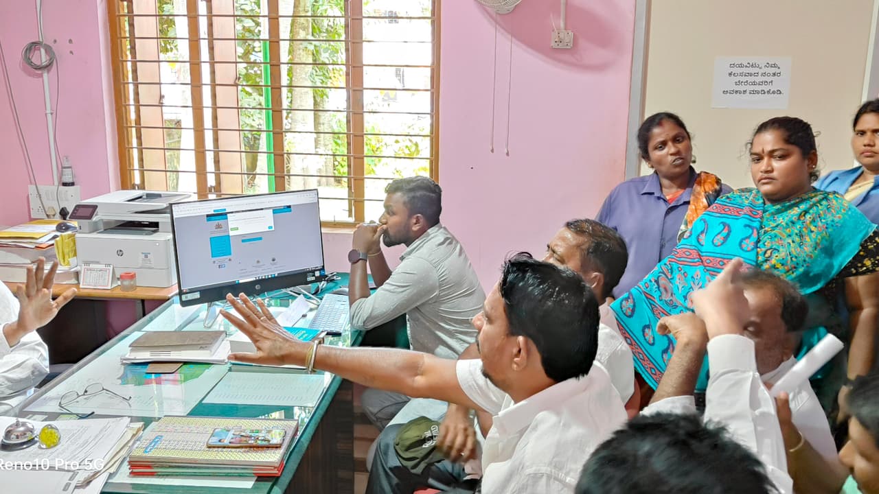 ಈ ಹಿಂದೆ ಇದ್ದ ಅಧಿಕಾರಿಯೊಬ್ಬರಿಗೆ ನಮ್ಮನು ಕಾಯಂ ಮಾಡಿಕೊಳ್ಳಿ ಎಂದು ಒಂದಷ್ಟು ಹಣವನ್ನು ನೀಡಿ ಮೋಸ ಹೋಗಿದ್ದೇವೆ. ಇಂದು ಹಣ ಪಡೆದ ಅಧಿಕಾರಿಯೂ ಇಲ್ಲ, ಇತ್ತ ಕೆಲಸವು ಕಾಯಂ ಆಗಿಲ್ಲ ಎಂದು ಅಧಿಕಾರಿಗಳ ವಿರುದ್ಧ ಮಹಿಳಾ ಕಾರ್ಮಿಕರು ಆಕ್ರೋಶ ವ್ಯಕ್ತಪಡಿಸಿ, ಕಣ್ಣಿರು ಸುರಿಸಿದರು.ಪ.ಪಂ. ಮುಖ್ಯಾಧಿಕಾರಿ ಬಸವರಾಜ್ ಜೊತೆ ಮಾತನಾಡಿದ ಮುಖಂಡ ಆರ್.ಉಮೇಶ್, ಸಮಸ್ಯೆಯನ್ನು ಮೂಲದಿಂದ ಸರಿ ಪಡಿಸಬೇಕು. ಕಾರ್ಮಿಕರು ನಾಲ್ಕೈದು ವರ್ಷಗಳಿಂದ ನಮ್ಮೂರಿನಲ್ಲಿ ಸ್ವಚ್ಛತಾ ಕಾರ್ಯ ಮಾಡಿಕೊಂಡು ಬರುತ್ತಿದ್ದಾರೆ. ಸಮಸ್ಯೆಯನ್ನು ಜಿಲ್ಲಾ ಉಸ್ತುವಾರಿ ಸಚಿವರ ಗಮನಕ್ಕೆ ತರಲಾಗಿದೆ. ಕಾರ್ಮಿಕರು ಕೆಲಸ ಮಾಡಲಿಲ್ಲ ಎಂದರೆ ಪ.ಪಂ ಕಸದ ಗೂಡಾಗುತ್ತದೆ. ಕಾರ್ಮಿಕರು ಮಾಮೂಲಿಯಂತೆ ಸ್ವಚ್ಛತಾ ಕೆಲಸ ಮಾಡಲಿ. ಪಪಂ ಯಾವುದಾದರು ಮೂಲದಿಂದ ಕಾರ್ಮಿಕರಿಗೆ ಸಂಬಳವನ್ನು ನೀಡುವ ವ್ಯವಸ್ಥೆ ಮಾಡಲಿ ಎಂದು ಮನವಿ ಮಾಡಿದರು.