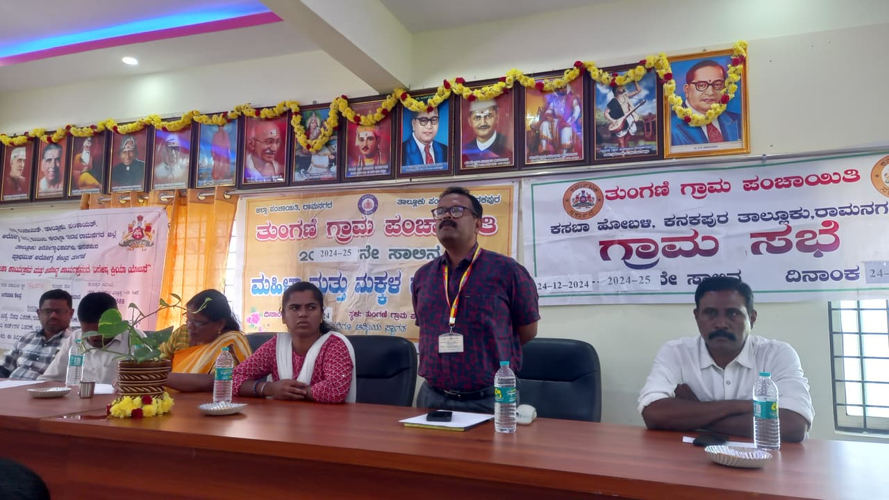 ಕನಕಪುರ ತಾಲೂಕಿನ ತುಂಗಣಿ ಗ್ರಾಪಂನಲ್ಲಿ ಮಹಿಳಾ ಮತ್ತು ಮಕ್ಕಳ ಗ್ರಾಮ ಸಭೆಯಲ್ಲಿ ತಾಪಂ ಸಹಾಯಕ ನಿರ್ದೇಶಕ ಮೋಹನ್ ಮಾತನಾಡಿದರು.