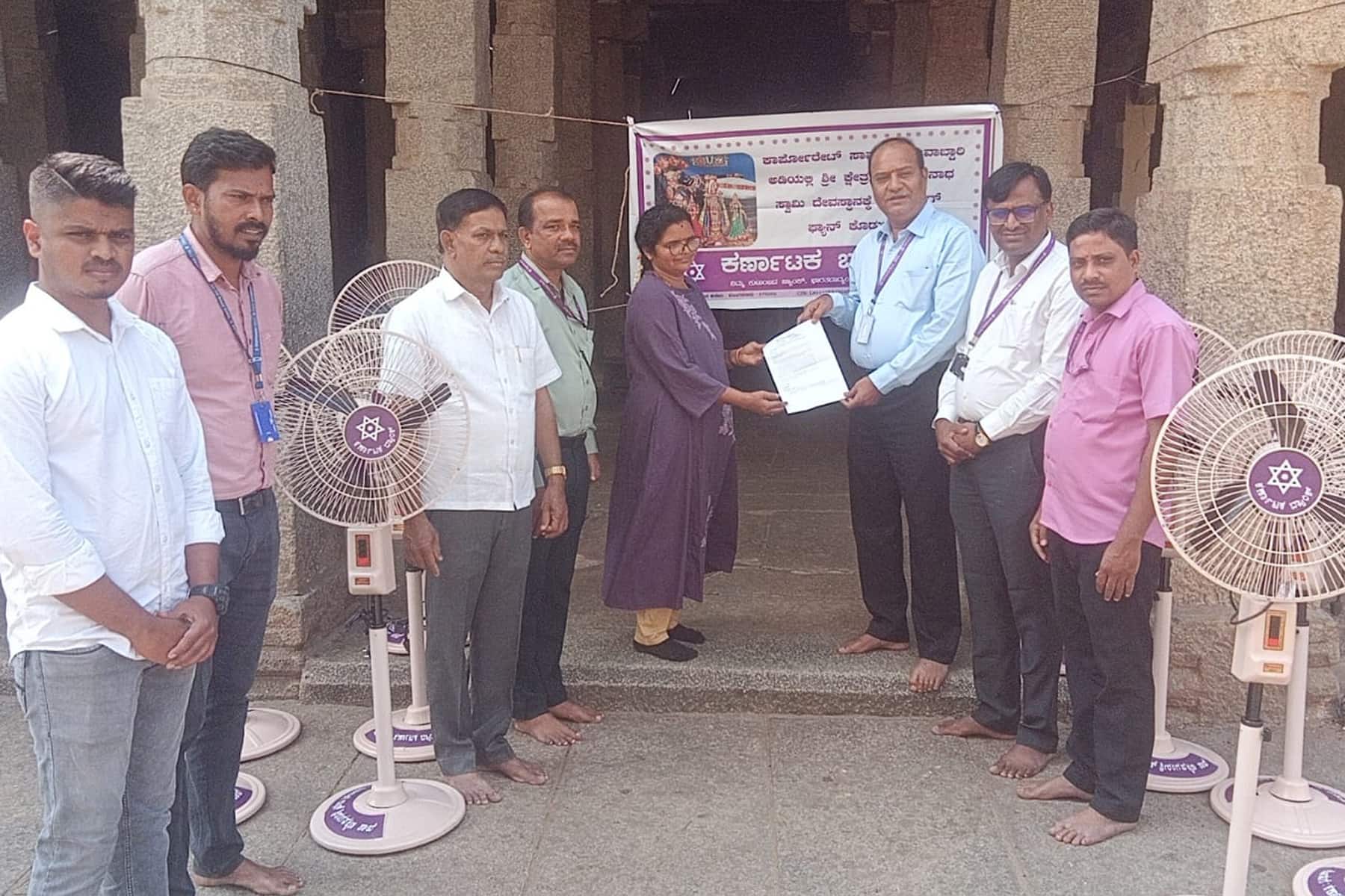 ಕರ್ಣಾಟಕ ಬ್ಯಾಂಕ್ ಶಾಖೆಯಿಂದ ಪಟ್ಟಣದ ಶ್ರೀರಂಗನಾಥ ದೇಗುಲಕ್ಕೆ ಸುಮಾರು 55 ಸಾವಿರ ರು. ಬೆಲೆಯುಳ್ಳ 10 ಫ್ಯಾನ್ಗಳನ್ನು ಕೊಡುಗೆಯಾಗಿ ನೀಡಲಾಯಿತು.ಬ್ಯಾಂಕ್ನ ಎಜಿಎಂ ಕೆ.ಎಲ್ ಶೇಷಾದ್ರಿರವರು ದೇವಾಲಯದ ಕಾರ್ಯನಿರ್ವಾಹಕ ಅಧಿಕಾರಿ ಎಂ.ಉಮಾ ಅವರಿಗೆ ಹಸ್ತಾಂತರಿಸಿ, ಭಕ್ತರ ಅನುಕೂಲಕ್ಕೆ ಬಳಸಿಕೊಳ್ಳುವಂತೆ ಮನವಿ ಮಾಡಿದರು.