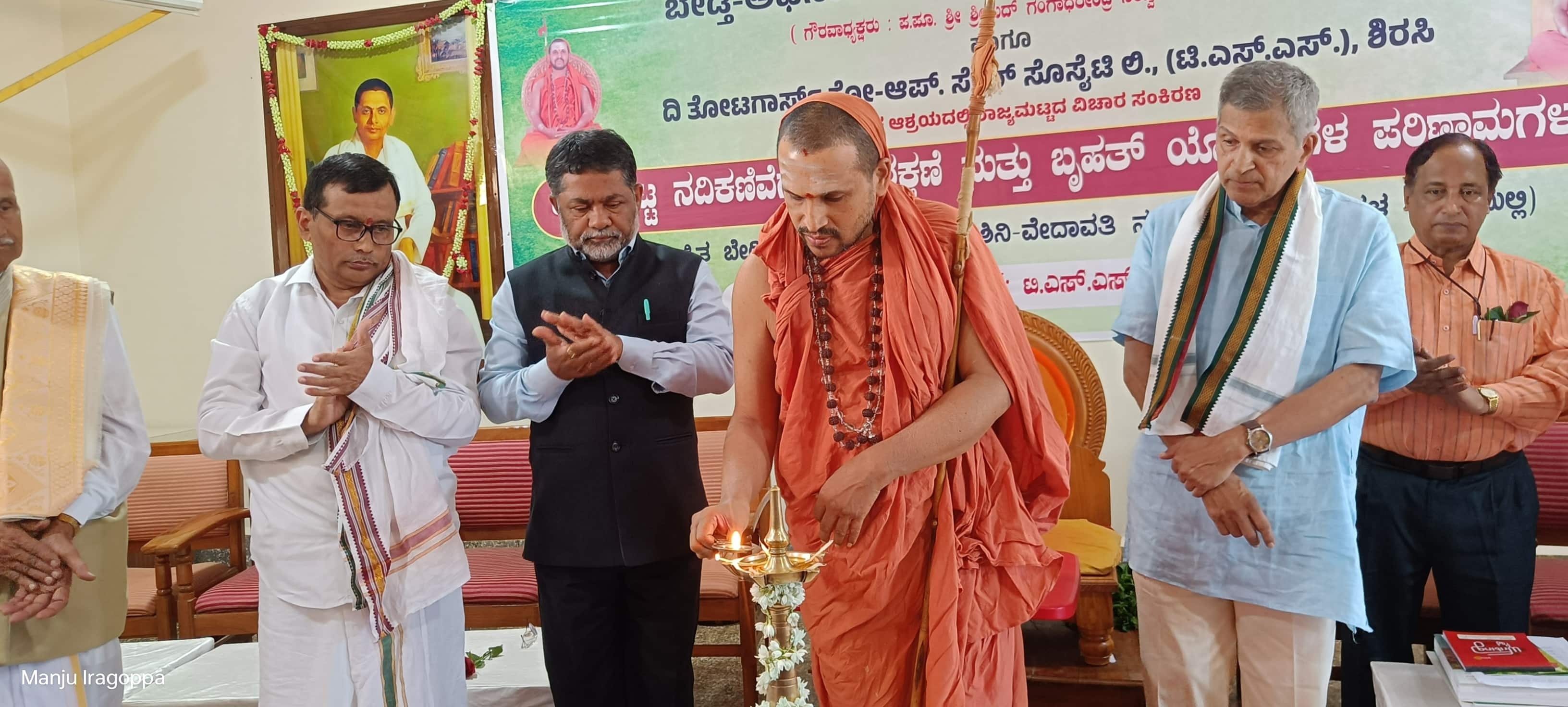 ಭಾನುವಾರದ ನಗರದ ಟಿಎಸ್ಎಸ್ ಸಭಾಂಗಣದಲ್ಲಿ ಬೇಡ್ತಿ-ಅಘನಾಶಿನಿ ಕೊಳ್ಳ ಸಂರಕ್ಷಣಾ ಸಮಿತಿ ಹಾಗೂ ತೋಟಗಾರ್ಸ್ ಕೋ ಆಪ್ ಸೇಲ್ ಸೊಸೈಟಿ ಸಂಯುಕ್ತಾಶ್ರಯದಲ್ಲಿ ಹಮ್ಮಿಕೊಂಡ ಪಶ್ವಿಮ ಘಟ್ಟ ನದಿ ಕಣಿವೆಗಳ ಸಂರಕ್ಷಣೆ ಹಾಗೂ ಬೃಹತ್ ಯೋಜನೆಗಳ ಪರಿಣಾಮ ರಾಜ್ಯ ಮಟ್ಟದ ವಿಚಾರ ಸಂಕಿರಣ ಉದ್ಘಾಟಿಸಿ ಸಾನ್ನಿಧ್ಯ ವಹಿಸಿ ಆಶೀರ್ವಚನ ನೀಡಿದರು.ಬೇಡ್ತಿ-ವರದಾ, ಅಘನಾಶಿನಿ-ವೇದಾವತಿ ನದಿ ತಿರುವು ಯೋಜನೆ, ಕರಾವಳಿಯಲ್ಲಿ ಕೇಣಿ ಬಂದರು, ಶರಾವತಿ ಭೂಗರ್ಭ ಯೋಜನೆಯನ್ನು ಅನುಷ್ಠಾನಗೊಳಿಸಲು ಹೊರಟಿದೆ. ನದಿ ನೀರು ಸಹಜವಾಗಿ ಹರಿದರೆ ಪರಿಸರದಲ್ಲಿ ಸಮತೋಲನೆಯಲ್ಲಿ ಇರುತ್ತದೆ. ಸಹಜವಾದ ನೀರಿನ ಹರಿವು ತಿರುವು ಮಾಡಿದರೆ ಅಸಮತೋಲನ ಉಂಟಾಗಿ ಮೀನುಗಾರಿಕೆ, ಕೃಷಿ, ಅರಣ್ಯದ ವನ್ಯಜೀವಿ, ಭೂಮಿಯ ಮೇಲೆ ಪರಿಣಾಮ ಬೀರಲಿದೆ.