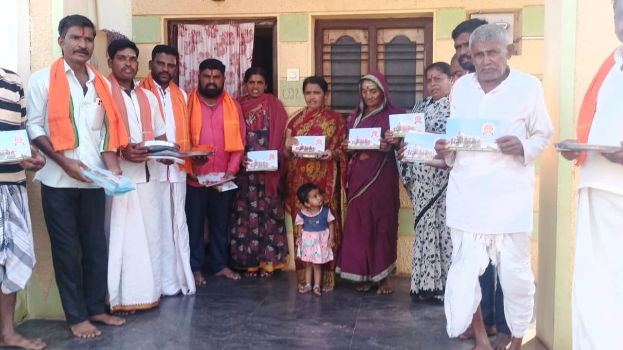 ಗುಳೇದಗುಡ್ಡ: ತಾಲೂಕಿನ ಖಾಜಿಬೂದಿಹಾಳ ಗ್ರಾಮದಲ್ಲಿ ರವಿವಾರ ಅಯೋಧ್ಯದ ಪವಿತ್ರವಾದ ಮಂತ್ರಾಕ್ಷತೆ ಹಾಗೂ ಪ್ರಭು ಶ್ರೀರಾಮ ಮಂದಿರದ ಭಾವಚಿತ್ರ ಹಾಗೂ ಕರಪತ್ರಗಳನ್ನು ಗ್ರಾಮದ ಮಾರುತೇಶ್ವರ ಮಂದಿರದಲ್ಲಿ ಗೋಮಾತೆಗೆ ಪೂಜೆ ಸಲ್ಲಿಸಿದ ನಂತರ ಗ್ರಾಮದ ಪ್ರತಿ ಮನೆ ಮನೆಗೆ ಮಂತ್ರಾಕ್ಷತೆ ಹಾಗೂ ಕರಪತ್ರಗಳನ್ನು ವಿತರಿಸಲಾಯಿತು.