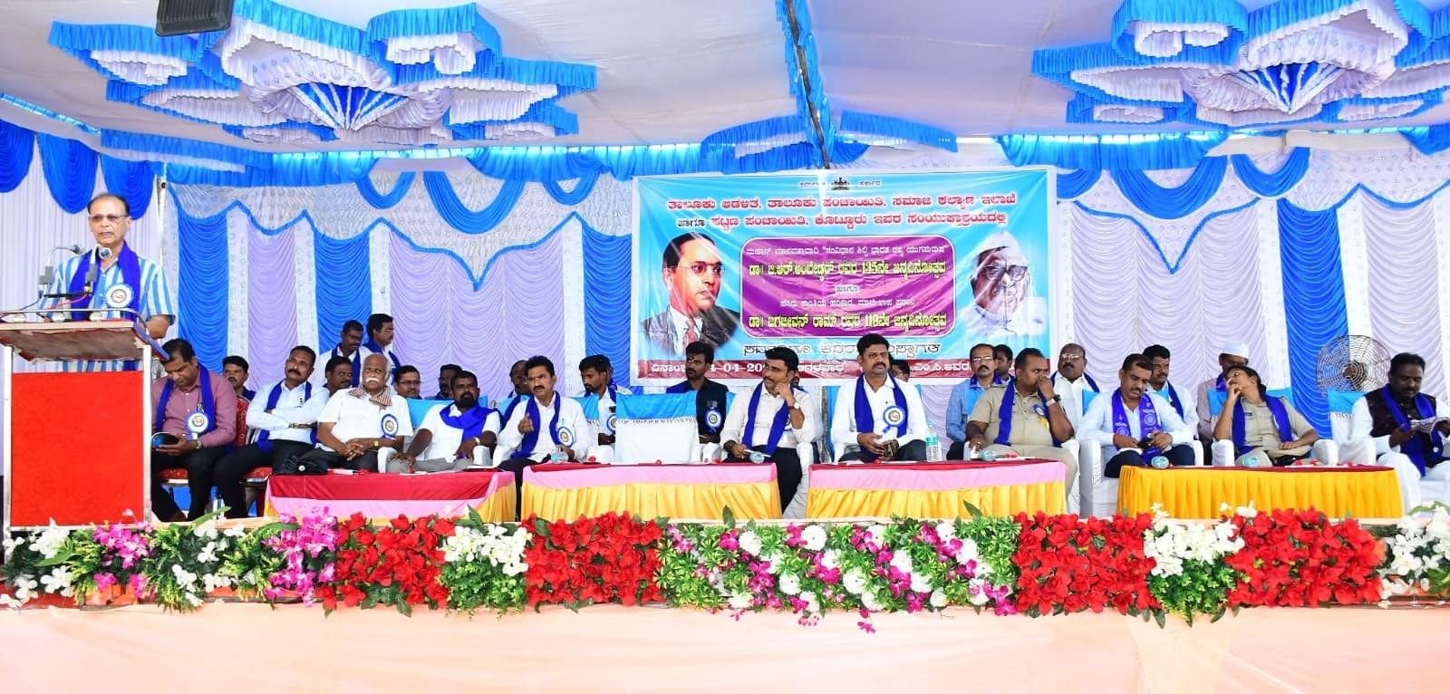 ಪಟ್ಟಣದ ಎಪಿಎಂಸಿ ಆವರಣದಲ್ಲಿ ಮಂಗಳವಾರ ನಡೆದ ಡಾ. ಬಿ.ಆರ್. ಅಂಬೇಡ್ಕರ್ ಅವರ 135ನೇ ಮತ್ತು ಡಾ. ಬಾಬು ಜಗಜೀವನ್ ರಾಂ ಅವರ 119ನೇ ಜನ್ಮ ದಿನಾಚರಣೆ ಕಾರ್ಯಕ್ರಮದಲ್ಲಿ ವಿಶೇಷ ಉಪನ್ಯಾಸಕರಾಗಿ ಅವರು ಮಾತನಾಡಿದರು.ತಹಸೀಲ್ದಾರ್ ಜಿ.ಕೆ. ಅಮರೇಶ ಅಧ್ಯಕ್ಷತೆ ವಹಿಸಿದ್ದರು. ಡಿಎಸ್ಎಸ್ ಜಿಲ್ಲಾ ಸಂಚಾಲಕ ಬದ್ದಿ ಮರಿಸ್ವಾಮಿ, ಡಿಎಸ್ಎಸ್ ಮುಖಂಡ ತಗ್ಗಿನಕೇರಿ ಕೊಟ್ರೇಶ ಮಾತನಾಡಿದರು. ಗ್ಯಾರಂಟಿ ಯೋಜನೆಗಳ ತಾಲೂಕು ಸಮಿತಿ ಅಧ್ಯಕ್ಷ ಅನಿಲ್ ಹೊಸಮನಿ ಉದ್ಘಾಟಿಸಿದರು. ತಾಪಂ ಇಒ ಡಾ. ಆನಂದಕುಮಾರ್, ಸಿಪಿಐ ದುರುಗಪ್ಪ, ಪಿಎಸ್ಐ ಗೀತಾಂಜಲಿ ಶಿಂಧೆ, ಕಸಾಪ ತಾಲೂಕು ಅಧ್ಯಕ್ಷ ದೇವರಮನಿ ಕೊಟ್ರೇಶ್, ಪಶುವೈದ್ಯಾಧಿಕಾರಿ ಡಾ. ಚಂದ್ರನಾಯ್ಕ, ಎಪಿಎಂಸಿ ಕಾರ್ಯದರ್ಶಿ ಎಚ್.ಕೆ. ವೀರಣ್ಣ, ನರೇಗಾ ಎಡಿ ವಿಜಯಕುಮಾರ್, ಪಂಚಮಸಾಲಿ ಸಂಘದ ತಾಲೂಕು ಅಧ್ಯಕ್ಷ ಚಾಪಿ ಚಂದ್ರಪ್ಪ, ತಾಲೂಕು ನೌಕರರ ಸಂಘದ ಅಧ್ಯಕ್ಷ ಯೋಗೀಶ್ವರ ದಿನ್ನೆ, ಬಾಬು ಜಗಜೀವನರಾಮ್ ಸಂಘದ ತಾಲೂಕು ಅಧ್ಯಕ್ಷ ಟಿ. ಹನುಮಂತಪ್ಪ, ಮುಖಂಡರಾದ ಬಿ. ದುರುಗೇಶ್, ಕಂದಗಲ್ ಪರುಶರಾಮ, ಕೆಂಗರಾಜ, ಹೊಟ್ಟೇರ ಅಜ್ಜಯ್ಯ, ಗುಡಿಯಾರ ಮಲ್ಲಿಕಾರ್ಜುನ, ಬಿ. ಶಿವರಾಜ, ಅಮರೇಶ್, ಪರಶುರಾಮ, ಹುಲುಗೇಶ, ಮಂಜುನಾಥ, ಮಿಲ್ಟ್ರಿ ಅಜ್ಜಪ್ಪ, ಸಮಾಜ ಕಲ್ಯಾಣ ಇಲಾಖೆಯ ಸದಾನಂದ, ತುಪ್ಪದ ವೀರೇಶ್ ಇದ್ದರು.