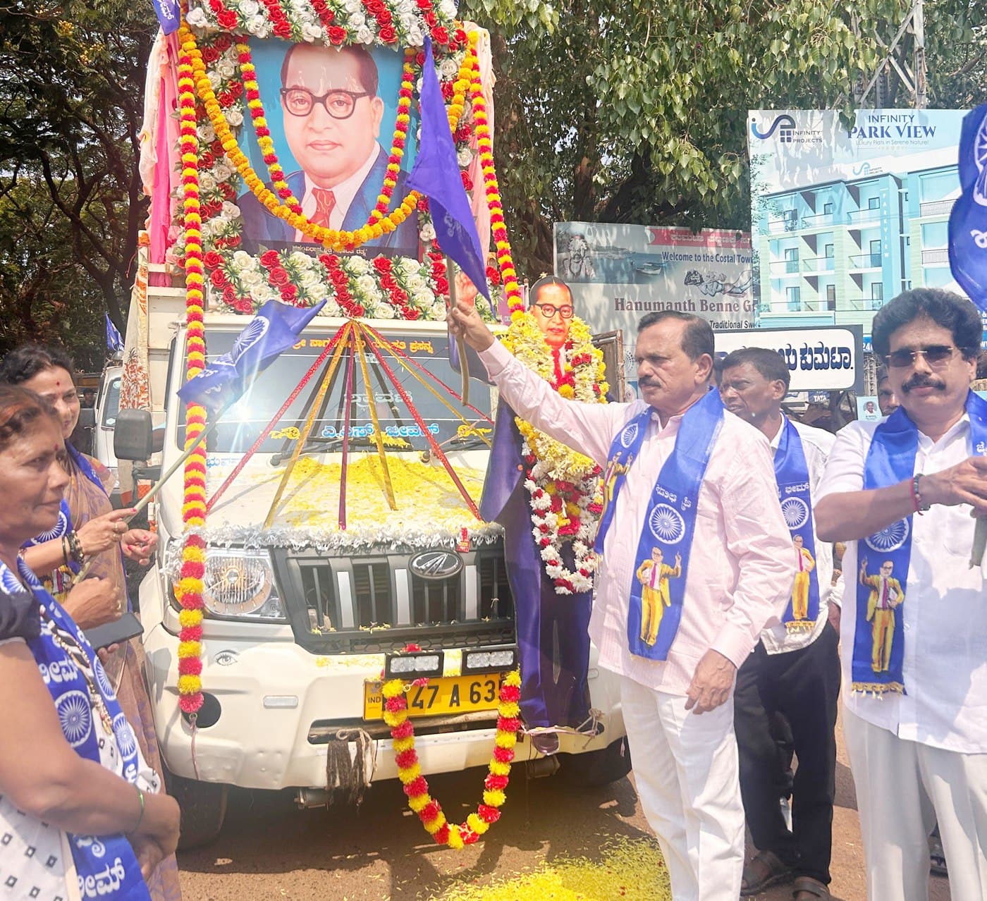 ಡಾ. ಬಿ.ಆರ್. ಅಂಬೇಡ್ಕರ್ ಜಯಂತಿ ಪ್ರಯುಕ್ತ ಸೋಮವಾರ ಪಟ್ಟಣದ ಗಿಬ್ ವೃತ್ತದಲ್ಲಿ ಆಯೋಜಿಸಿದ್ದ ಕುಮಟಾದಿಂದ ಹೊನ್ನಾವರಕ್ಕೆ ತೆರಳುವ ಬೃಹತ್ ಬೈಕ್ ರ್ಯಾಲಿಗೆ ಚಾಲನೆ ನೀಡಿ ಮಾತನಾಡಿದರು.ಅಂಬೇಡ್ಕರ್ ಅವರ ಸಮಾನತೆ ಮತ್ತು ಭ್ರಾತೃತ್ವದ ಸಂದೇಶವನ್ನು ಸಾರುವ ಉದ್ದೇಶದಿಂದ ಅತ್ಯಂತ ಉತ್ಸಾಹ ಮತ್ತು ಸಡಗರದಿಂದ ಆಯೋಜಿಸಲಾಗಿದ್ದ ಬೈಕ್ ರ್ಯಾಲಿಯ ಮುಂಚೂಣಿಯಲ್ಲಿ ಅಂಬೇಡ್ಕರ್ ರಥದಲ್ಲಿದ್ದ ಭಾವಚಿತ್ರಕ್ಕೆ ಎಲ್ಲರೂ ಪುಷ್ಪಾರ್ಚನೆ ಮಾಡಿದರು. ಅಂಬೇಡ್ಕರ್ ಅಭಿಮಾನಿಗಳು ನೀಲಿ ಧ್ವಜಗಳನ್ನು ಹಿಡಿದು ಜಯಘೋಷಗೈದರು. ಬಳಿಕ ಅಲ್ಲಿಂದ ಹೊರಟ ಬೈಕ್ ರ್ಯಾಲಿ ರಾಷ್ಟ್ರೀಯ ಹೆದ್ದಾರಿ ೬೬ರ ಮೂಲಕ ಹೊನ್ನಾವರಕ್ಕೆ ತೆರಳಿ ಮರಳಿತು. ಶಿವಾನಂದ ಹೆಗಡೆ ಸುಷ್ಮಾ ರೆಡ್ಡಿ ಮಂಜುಳಾ ಮುಕ್ರಿ ಇತರರು ಇದ್ದರು.