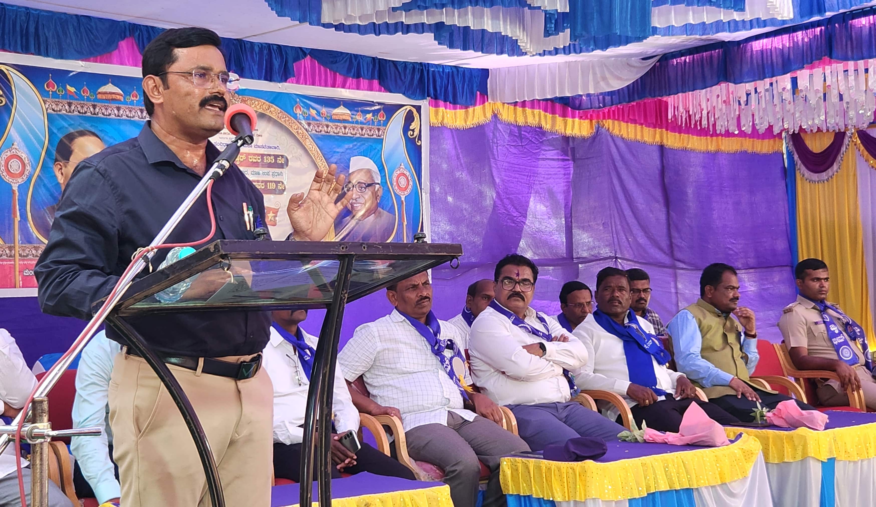 ಮಂಗಳವಾರ ಪಟ್ಟಣದ ಪುರಸಭೆ ಆವರಣದಲ್ಲಿ ತಾಲೂಕು ಆಡಳಿತ, ತಾಲೂಕು ಪಂಚಾಯಿತಿ, ಸಮಾಜ ಕಲ್ಯಾಣ ಇಲಾಖೆ ಮತ್ತು ಪುರಸಭೆಯ ಸಹಯೋಗದಲ್ಲಿ ಡಾ. ಬಿ.ಆರ್. ಅಂಬೇಡ್ಕರ್ 135ನೇ ಹಾಗೂ ಡಾ. ಬಾಬು ಜಗಜೀವನರಾಂ 119ನೇ ಜಯಂತ್ಯುತ್ಸವ ಕಾರ್ಯಕ್ರಮದಲ್ಲಿ ಮಾತನಾಡಿದರು.ಶೋಷಿತ ವರ್ಗದವರಿಗೆ ಧ್ವನಿಯಾಗುವ ಮೂಲಕ ಅವರು ಜಗತ್ತಿಗೆ ಮಾನವೀಯತೆಯ ದಿಕ್ಸೂಚಿಯಾದರು. ರಾಷ್ಟ್ರಪ್ರೇಮ, ದೇಶದ ಐಕ್ಯತೆ ಮತ್ತು ಸಮಗ್ರತೆಯನ್ನು ಕಾಪಾಡುವಲ್ಲಿ ಸಂವಿಧಾನದ ಪಾತ್ರ ಅನನ್ಯವಾದುದು. ಜಾತಿ ವ್ಯವಸ್ಥೆಯಿಂದ ಜರ್ಜರಿತವಾಗಿದ್ದ ಸಮಾಜಕ್ಕೆ ಸಮಾನತೆ ಎಂಬ ಹೊಸ ದಾರಿಯನ್ನು ಅಂಬೇಡ್ಕರ್ ತೋರಿಸಿಕೊಟ್ಟರು. ಸಂವಿಧಾನದ ಮೂಲಕ ಪ್ರತಿಯೊಬ್ಬ ಪ್ರಜೆಗೂ ಸಮಾನ ಹಕ್ಕುಗಳನ್ನು ನೀಡಿ, ಸಾಮಾಜಿಕ ನ್ಯಾಯ ಕಲ್ಪಿಸಿದರು. ಅಂಬೇಡ್ಕರ್ ಸಾರಿದ ತತ್ವ, ಸಂದೇಶ, ಅವರ ಬದುಕು ಆದರ್ಶನೀಯವಾಗಿದೆ ಎಂದರು.
