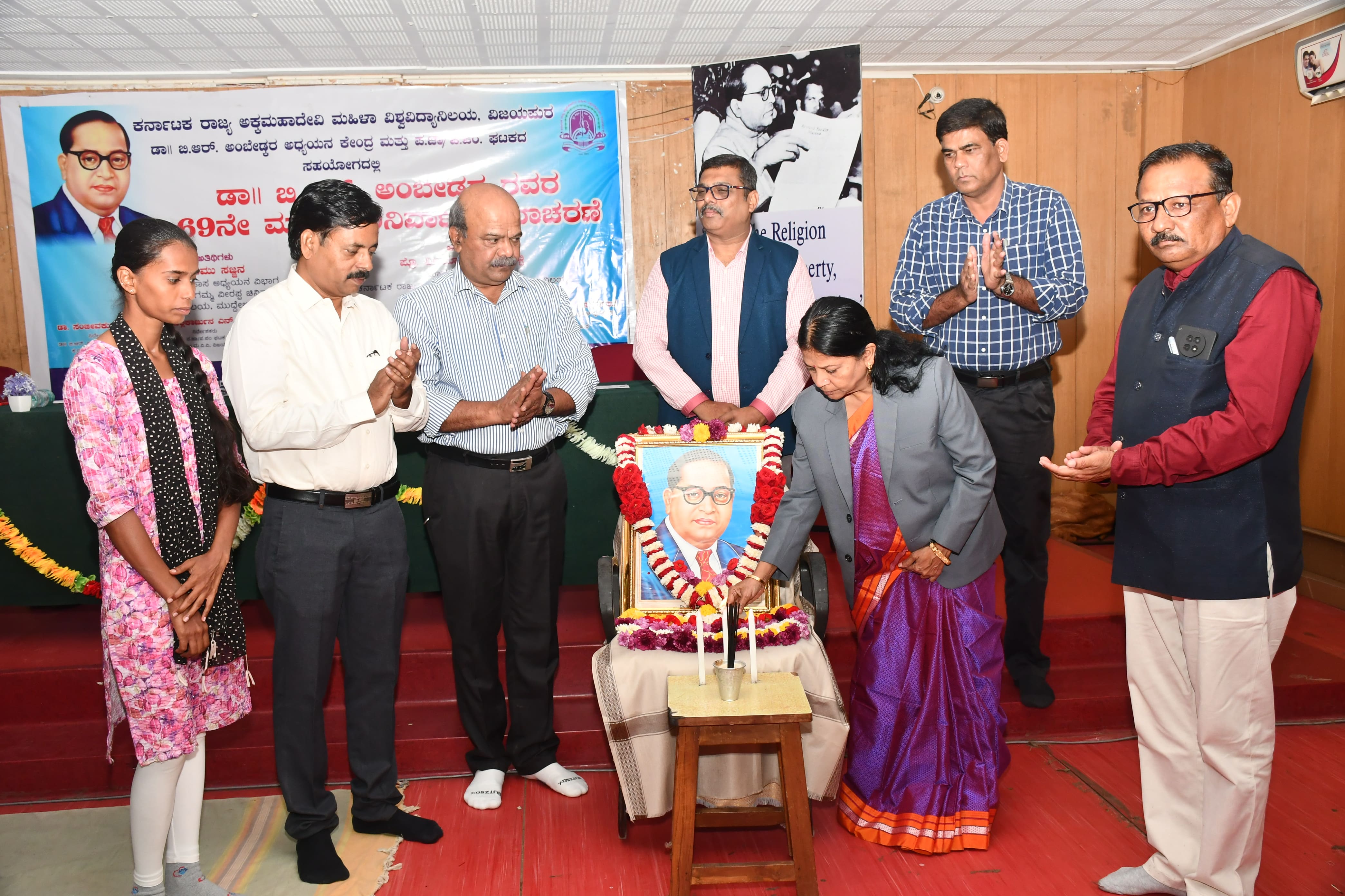 ಡಾ. ಬಿ.ಆರ್.ಅಂಬೇಡ್ಕರ್ ಅವರು ಮಹಾನ್ ವಿದ್ವಾಂಸರಾಗಿದ್ದು, ವಿಶ್ವವು ಅವರನ್ನು ಜ್ಞಾನದ ಸಂಕೇತವಾಗಿ ಗೌರವಿಸಿದೆ ಎಂದು ಮಹಿಳಾ ವಿವಿಯ ಕುಲಪತಿ ಪ್ರೊ. ವಿಜಯಾ ಬಿ. ಕೋರಿಶೆಟ್ಟಿ ಹೇಳಿದರು.ನಗರದ ಕರ್ನಾಟಕ ರಾಜ್ಯ ಅಕ್ಕಮಹಾದೇವಿ ಮಹಿಳಾ ವಿಶ್ವವಿದ್ಯಾಲಯದ ಡಾ.ಬಿ.ಆರ್.ಅಂಬೇಡ್ಕರ ಅಧ್ಯಯನ ಕೇಂದ್ರ ಹಾಗೂ ಪರಿಶಿಷ್ಟ ಜಾತಿ/ಪರಿಶಿಷ್ಟ ಪಂಗಡಗಳ ಕೋಶದ ಸಹಯೋಗದಲ್ಲಿ ಶನಿವಾರ ಹಮ್ಮಿಕೊಂಡಿದ್ದ ಡಾ.ಬಿ.ಆರ್.ಅಂಬೇಡ್ಕರ ಅವರ ೬೯ನೇ ಮಹಾಪರಿನಿರ್ವಾಣ ದಿನಾಚರಣೆ ಕಾರ್ಯಕ್ರಮದಲ್ಲಿ ಅವರು ಮಾತನಾಡಿದರು.