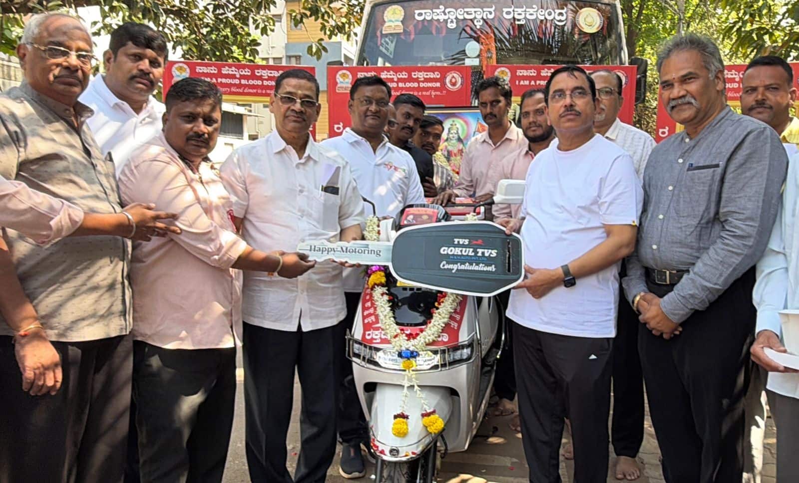 ರಕ್ತ ಕೇಂದ್ರದ ಯೊಜನೆಗಳಿಗೆ ಕೊಡುಗೈ ದಾನಿಯಾಗಿರುವ ಉದ್ಯಮಿ ಡಾ. ವಿ.ಎಸ್.ವಿ. ಪ್ರಸಾದ ಅವರು ರಾಷ್ಟ್ರೋತ್ಥಾನ ರಕ್ತ ಕೇಂದ್ರಕ್ಕೆ 1 ಇವಿ ಸ್ಕೂಟರ್ ಮತ್ತು 4 ಸೆಲ್ಫಿ ಸ್ಟ್ಯಾಂಡ್ಗಳನ್ನು ಕೊಡುಗೆಯಾಗಿ ನೀಡಿದ್ದಾರೆ.