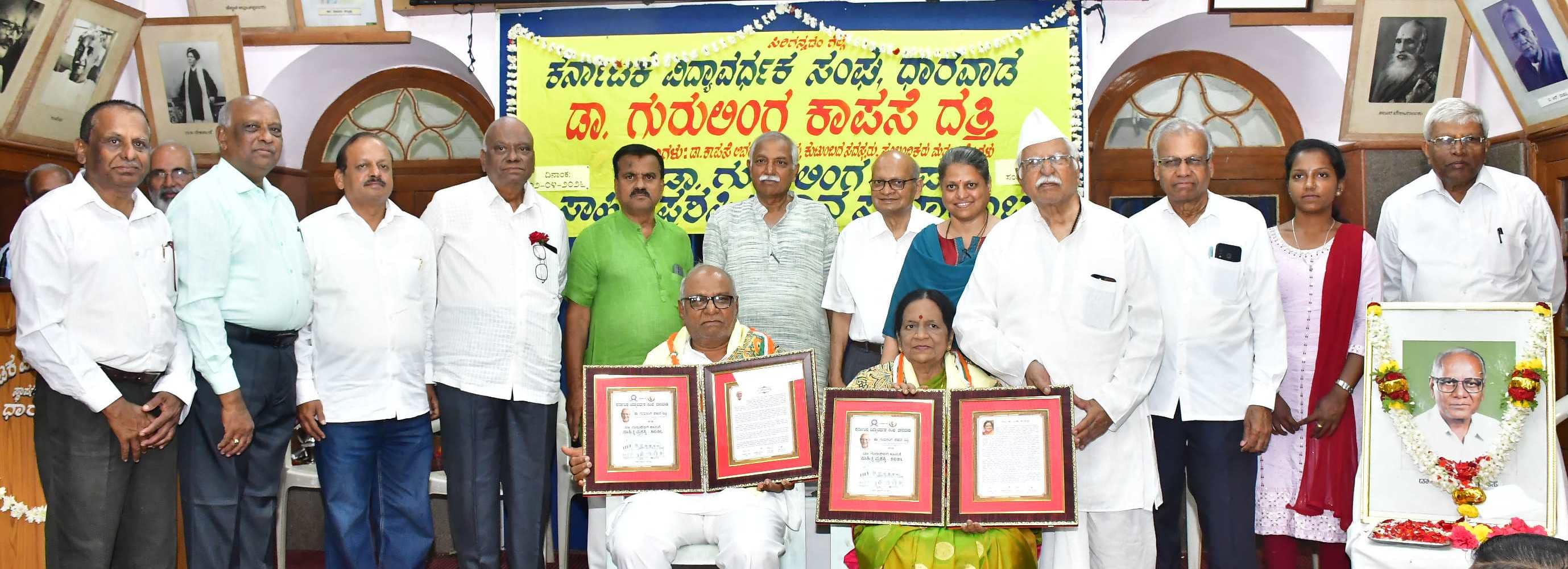 ಧಾರವಾಡ: ಇಲ್ಲಿಯ ಕರ್ನಾಟಕ ವಿದ್ಯಾವರ್ಧಕ ಸಂಘದಲ್ಲಿ ನಡೆದ ಸಮಾರಂಭದಲ್ಲಿ ಹಿರಿಯ ಲೇಖಕಿ ಡಾ. ವೀಣಾ ಶಾಂತೇಶ್ವರ ಹಾಗೂ ಲೋಹಿಯಾ ಪ್ರಕಾಶನದ ಪ್ರಕಾಶಕ ಸಿ. ಚನ್ನಬಸವಣ್ಣ ಅವರಿಗೆ ಡಾ. ಗುರುಲಿಂಗ ಕಾಪಸೆ ಸಾಹಿತ್ಯ ಪ್ರಶಸ್ತಿ ಪ್ರದಾನ ಮಾಡಲಾಯಿತು.