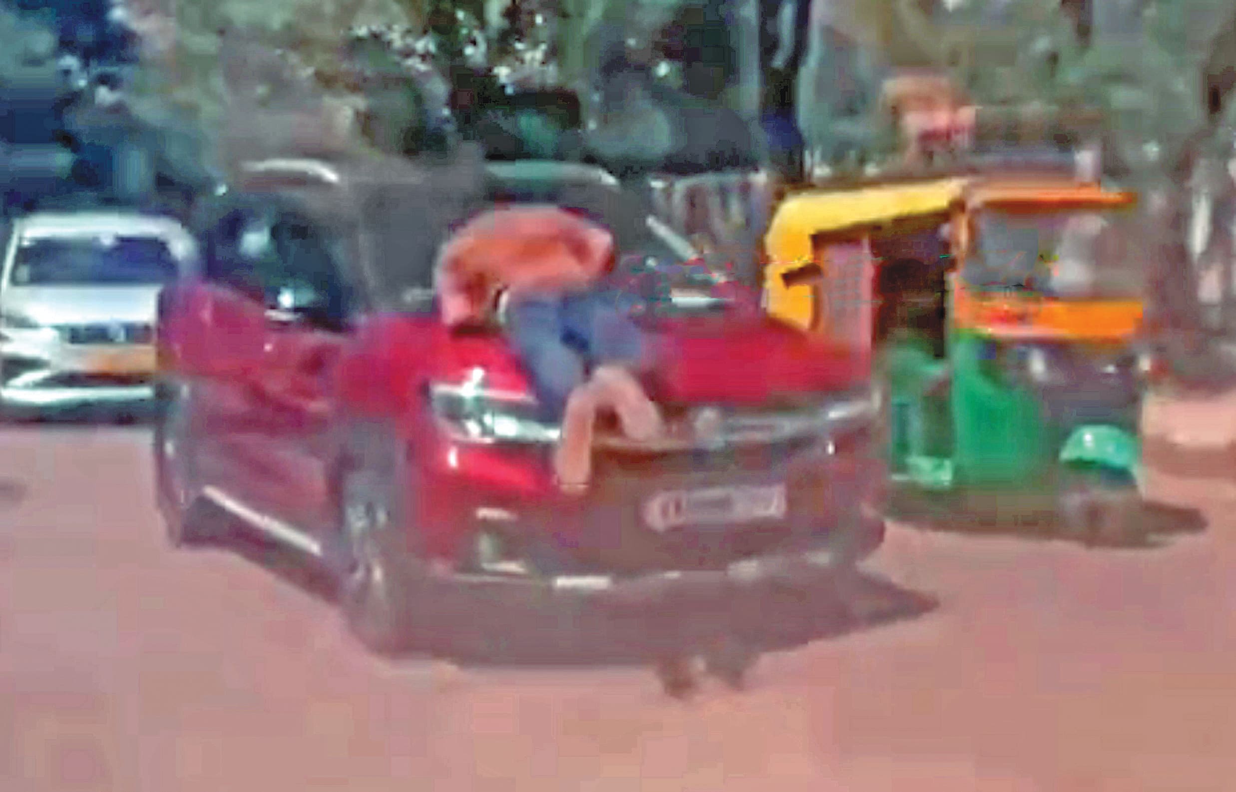 ತನ್ನ ವಾಹನಕ್ಕೆ ಕಾರು ತಗುಲಿದೆ ಎಂದು ಕಾರಿನ ಬ್ಯಾನೆಟ್ ಮೇಲೆ ಕುಳಿತಿದ್ದ ಗೂಡ್ಸ್ ವಾಹನದ ಚಾಲಕನನ್ನು ಒಂದು ಕಿ.ಮೀ ತನಕ ಕಾರಿನ ಚಾಲಕ ಎಳೆದೊಯ್ದಿರುವ ಘಟನೆ ಹಲಸೂರು ಪೊಲೀಸ್ ಠಾಣಾ ವ್ಯಾಪ್ತಿಯ ಹಳೆ ವಿಮಾನ ನಿಲ್ದಾಣದ ರಸ್ತೆಯಲ್ಲಿ ನಡೆದಿದೆ.ಬುಧವಾರ ಮಧ್ಯಾಹ್ನ 12.45 ಸುಮಾರಿಗೆ ಈ ಘಟನೆ ನಡೆದಿದ್ದು, ಇದರ ವಿಡಿಯೋ ಸಾಮಾಜಿಕ ಜಾಲತಾಣದಲ್ಲಿ ವೈರಲ್ ಆಗಿದೆ.