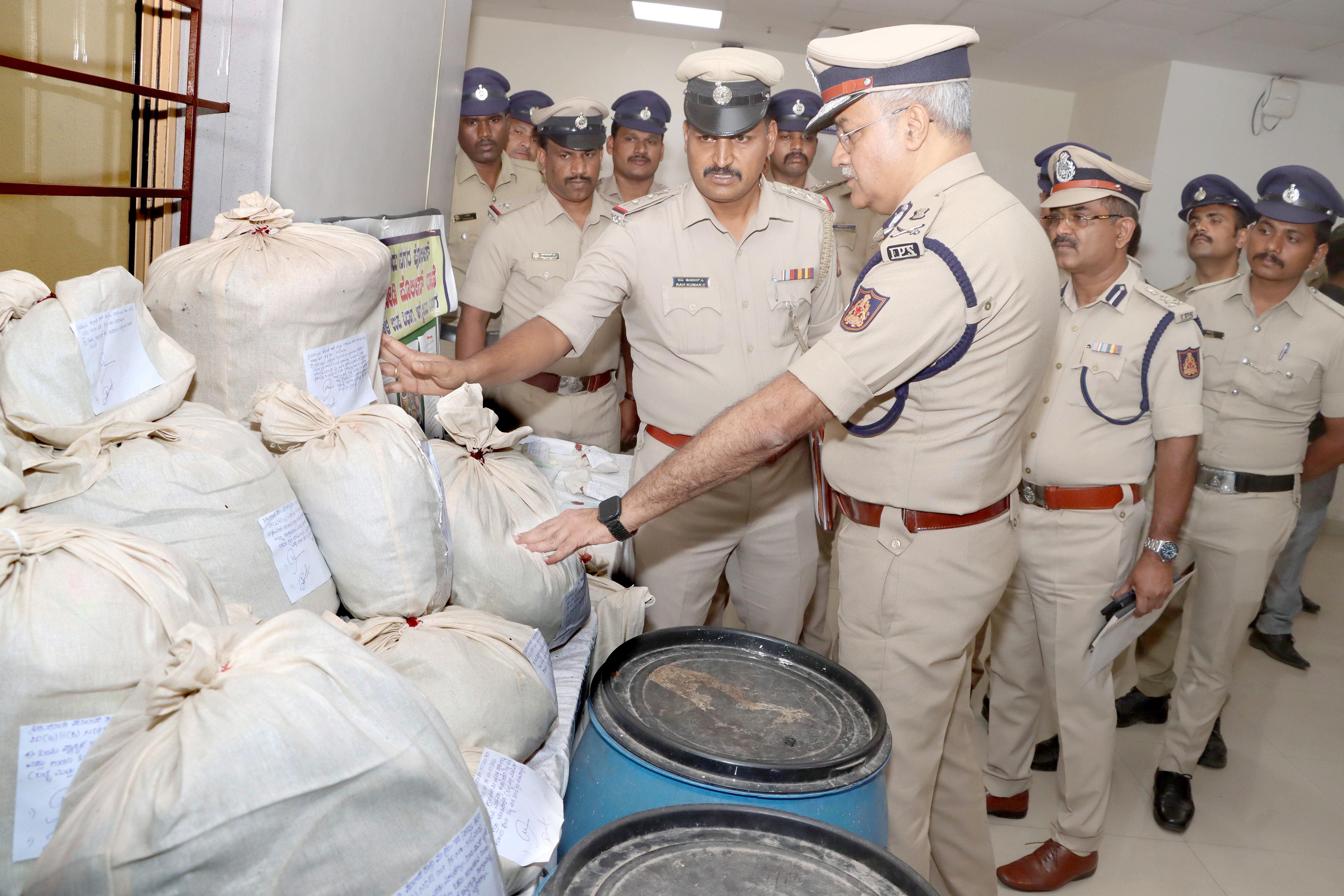 ವಶಪಡಿಸಿಕೊಳ್ಳಲಾದ ಡ್ರಗ್ಸ್ ದಾಸ್ತಾನನ್ನು ಪೊಲೀಸ್ ಆಯುಕ್ತರು ವೀಕ್ಷಿಸಿದರು.