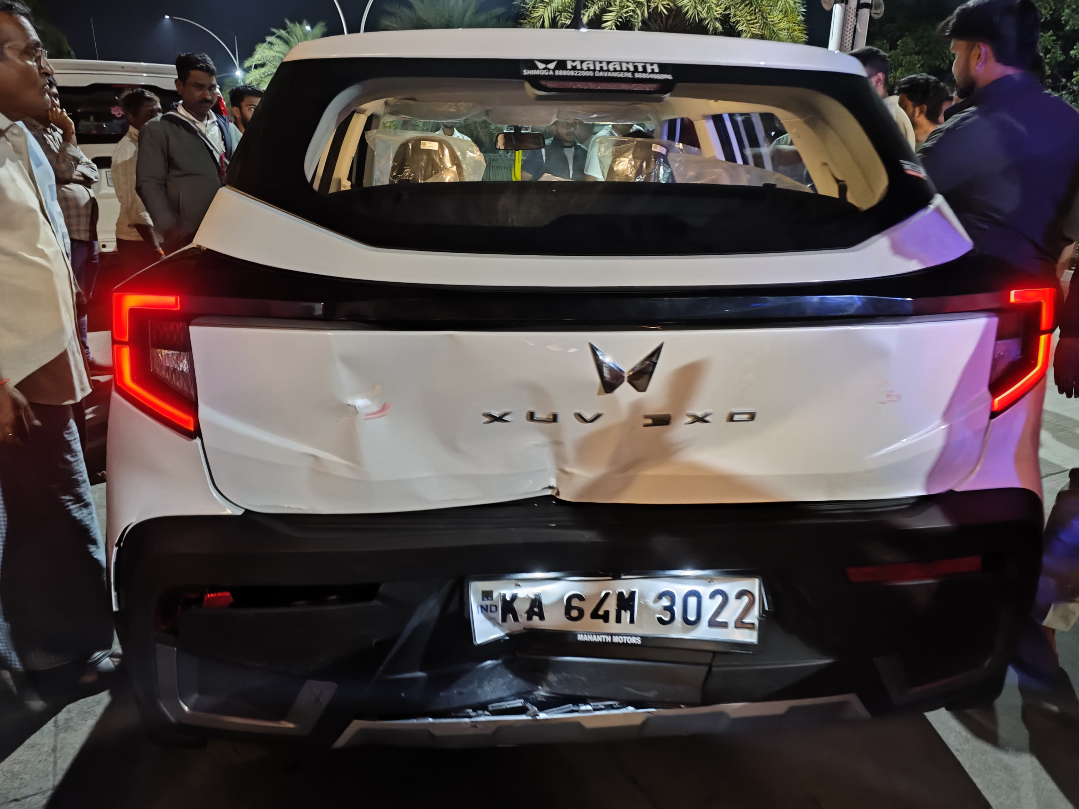 ಮುಖ್ಯ ಶಿಕ್ಷಕರೊಬ್ಬರು ಸಂಜೆಯಷ್ಟೇ ಖರೀದಿಸಿದ್ದ ಕಾರಲ್ಲಿ ಹೆಂಡತಿ, ಮಕ್ಕಳೊಂದಿಗೆ ಸಂಬಂಧಿ ಮನೆಗೆ ಖುಷಿಯಿಂದ ಹೊರಟಿದ್ದ ವೇಳೆ ಹಿಂಬದಿಯಿಂದ ಬಂದ ಪಾನಮತ್ತನಾಗಿದ್ದ ಎನ್ನಲಾದ ಮಫ್ತಿಯಲ್ಲಿ ಹೆಡ್ ಕಾನ್ಸ್ಟೇಬಲ್ ಕಾರು ಡಿಕ್ಕಿ ಹೊಡೆಸಿದ ಪರಿಣಾಮ ಹೊಸ ಕಾರಿನ ಹಿಂಭಾಗ, ಹಳೆ ಕಾರಿನ ಮುಂಭಾಗ ನುಜ್ಜುಗುಜ್ಜಾದ ಘಟನೆ ಇಲ್ಲಿನ ಎಸ್ಸೆಸ್ ಲೇಔಟ್ನ ಆಫೀ ಸರ್ಸ್ ಕ್ಲಬ್ ಎದುರು ಶುಕ್ರವಾರ ರಾತ್ರಿ ನಡೆದಿದೆ.ತುಮಕೂರು ಜಿಲ್ಲೆ ಮಧುಗಿರಿಯ ಶಾಲೆಯೊಂದರಲ್ಲಿ ಮುಖ್ಯ ಶಿಕ್ಷಕರಾದ ರಾಘವೇಂದ್ರ ಶುಕ್ರವಾರ ಮಧ್ಯಾಹ್ನ 3 ಗಂಟೆಗೆ ಮಹೀಂದ್ರ ಎಕ್ಸ್ಯುವಿ 3 ಎಕ್ಸ್ಓ ಕಾರು (ಕೆಎ 64- ಎಂ 3022) ಖರೀದಿಸಿ, ನೋಂದಣಿ ಮಾಡಿಸಿದ್ದರು. ಪತ್ನಿ, ಮಕ್ಕಳು, ಕುಟುಂಬ ಸಮೇತ ಹೊಸ ಕಾರು ಡೆಲಿವರಿ ಪಡೆದು, ನಗರ ದೇವತೆ ಶ್ರೀ ದುರ್ಗಾಂಬಿಕಾ ದೇವಸ್ಥಾನದಲ್ಲಿ ಪೂಜೆ ಮಾಡಿಸಿಕೊಂಡು ಮನೆಗೆ ಮರಳಿದ್ದರು. ಸಂಜೆ ಖುಷಿಯಿಂದಲೇ ತಮ್ಮ ಸಂಬಂಧಿ ಮನೆಗೆ ಹೋಗಲೆಂದು ಬಾಪೂಜಿ ಬ್ಯಾಂಕ್ ಸಮುದಾಯ ಭವನದ ಎದುರಿನಿಂದ ಆಫೀಸರ್ಸ್ ಕ್ಲಬ್ ಎದುರು ಹೋಗುವಾಗ ಘಟನೆ ಸಂಭವಿಸಿದೆ.
