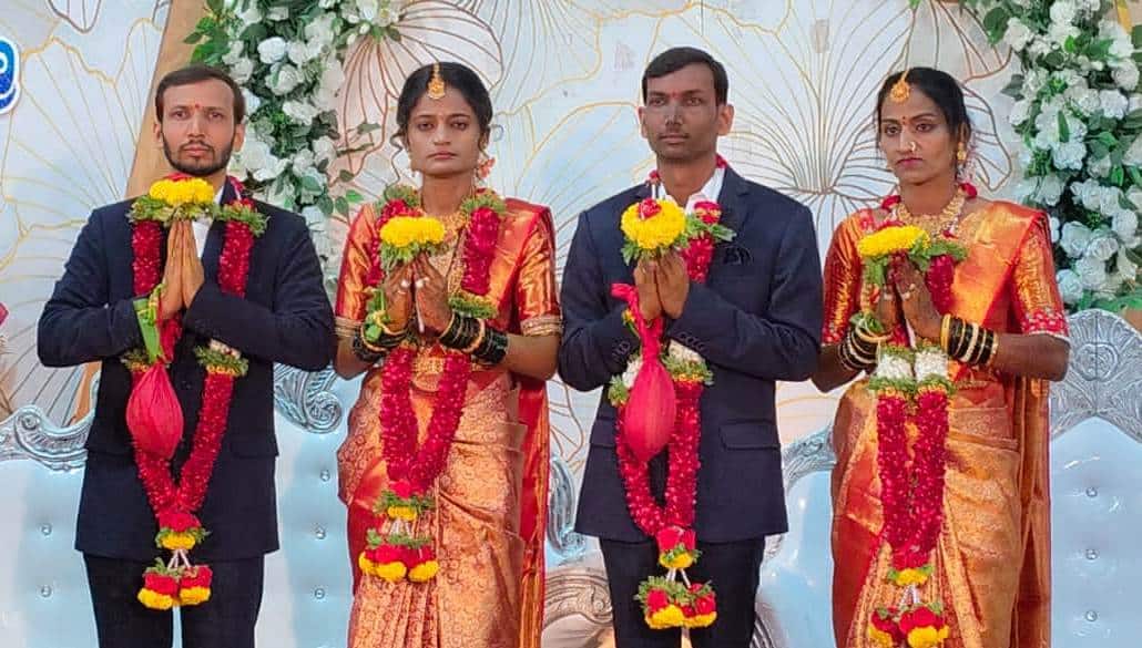 ಅವರು ಮಾತು ಬಾರದವರು, ಆದರೂ ಕುಟುಂಬದ ಜವಾಬ್ದಾರಿ ಹೊತ್ತವರು. ಲೋಕದ ಜ್ಞಾನ ಇದ್ದರೂ ಕೇವಲ ಕೈ ಸನ್ನೆ, ಬಾಯಿ ಸನ್ನೆಯಲ್ಲೇ ಜೀವನ ನಡೆಸುವುದು ಅನಿವಾರ್ಯ. ಎಲ್ಲರಂತೆ ನಮಗೂ ಜೀವನ, ಬದುಕು, ಪ್ರೀತಿಸುವ ಹಕ್ಕಿದೆ ಎಂದು ಬೈಲಹೊಂಗಲ ಪಟ್ಟಣದ ಮುರಕೀಭಾಂವಿ ರಸ್ತೆಯಲ್ಲಿನ ಶಿವಾನಂದ ಭಾರತಿ ನಗರದ ಬಡಾವಣೆಯ ನಿವಾಸಿ ಲಕ್ಷ್ಮೀ ಮುರಗೇಶ ದೊಡಮನಿ ಎಂಬುವರ ಪುತ್ರರು ಬುಧವಾರ ಮುರಗೋಡ ರಸ್ತೆಯ ಗಣಾಚಾರಿ ಕಲ್ಯಾಣ ಮಂಟಪದಲ್ಲಿ ದಾಂಪತ್ಯ ಜೀವನಕ್ಕೆ ಕಾಲಿಟ್ಟರು.ಮೂಗ ಸಹೋದರರಾದ ವಿನಾಯಕ ದೊಡಮನಿ ತುಮಕೂರ ಜಿಲ್ಲೆ ಗುಬ್ಬಿ ತಾಲೂಕಿನ ಅಂತಾಪೂರ ಗ್ರಾಮದ ಕವಿತಾ, ಚಿಕ್ಕಕೆಂಪಯ್ಯ ದಂಪತಿ ಪುತ್ರಿ ಪವಿತ್ರಾಳನ್ನು ಹಾಗೂ ಮಲ್ಲಿಕಾರ್ಜುನ ದೊಡಮನಿ ಸವದತ್ತಿ ತಾಲೂಕಿನ ಹಿರೇಕೊಪ್ಪ ಗ್ರಾಮದ ನಾಗಪ್ಪ ಹೊಂಗಲ ಎಂಬುವರ ಪುತ್ರಿ ರಾಜೇಶ್ವರಿಯನ್ನು ವರಿಸಿದರು. ಇವರ ವಿವಾಹಕ್ಕೆ ಮಠಾಧೀಶರು, ಜನಪ್ರತಿನಿಧಿಗಳು, ಗುರು-ಹಿರಿಯರು, ಬಂಧು-ಬಾಂಧವರು, ಸ್ಥಳೀಯರು ಸಾಕ್ಷಿಯಾಗಿ ಶುಭ ಹಾರೈಸಿದರು. ಈ ಮೂಗ ದಂಪತಿಗಳ ಬದುಕು ಭವಿಷ್ಯದಲ್ಲಿ ಸುಂದರವಾಗಲಿ ಎಂದು ಆಶೀರ್ವದಿಸಿದರು.ಇಬ್ಬರಿಗೂ ಬಾಯಿ ಇಲ್ಲದಿದ್ದರು ವಿನಾಯಕ ಮತ್ತು ಮಲ್ಲಿಕಾರ್ಜುನ ಸಹೋದರರು ಬೆಳಗಾವಿಯ ಖಾಸಗಿ ಕಂಪನಿಯೊಂದರಲ್ಲಿ ಉದ್ಯೋಗ ಮಾಡುತ್ತಿದ್ದಾರೆ. ವಿಶೇಷಚೇತನರಲ್ಲಿಯೂ ಅದಮ್ಯ ಉತ್ಸಾಹ, ಗುರಿ, ಗುರು ಇದ್ದರೆ ಏನೆಲ್ಲ ಸಾಧಿಸಬಹುದು ಎಂಬುದಕ್ಕೆ ಈ ಜೋಡಿಗಳೇ ಸಾಕ್ಷಿಯಾಗಿದ್ದಾರೆ.