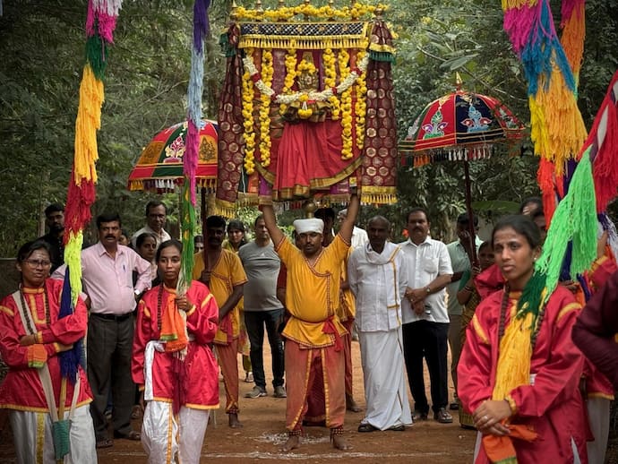 ರಾಮನಗರ: ನಗರದ ಜಾನಪದ ಲೋಕದಲ್ಲಿ ದಸರಾ ಪ್ರಯುಕ್ತ ಬನ್ನಿ ಮುಡಿಯುವ ಕಾರ್ಯಕ್ರಮ ಸಂಪನ್ನಗೊಂಡಿತು. ಕಾರ್ಯಕ್ರಮಕ್ಕೆ ಚಾಲನೆ ನೀಡಿ ಮಾತನಾಡಿದ ಕರ್ನಾಟಕ ಜಾನಪದ ಪರಿಷತ್ತಿನ ಅಧ್ಯಕ್ಷರಾದ ಪ್ರೊ.ಹಿ.ಚಿ.ಬೋರಲಿಂಗಯ್ಯ, ಕನ್ನಡ ಮತ್ತು ಸಂಸ್ಕೃತಿ ಇಲಾಖೆಯ ಅಧಿಕಾರಿಗಳನ್ನು ಕರೆಸಿ ನಮ್ಮ ಕಾರ್ಯಕ್ರಮಗಳನ್ನು ಪರಿಚಯಿಸುವುದರಿಂದ ಸಂಸ್ಥೆ ಇನ್ನಷ್ಟು ಎತ್ತರಕ್ಕೆ ಬೆಳೆಯಲು ಸಹಕಾರಿಯಾಗುತ್ತದೆ ಎಂದು ಹೇಳಿದರು. ಕನ್ನಡ ಮತ್ತು ಸಂಸ್ಕೃತಿ ಇಲಾಖೆಯ ಉಪಕಾರ್ಯದರ್ಶಿ ಎಚ್.ಕೆ.ಸುರೇಶ್ ಬಾಬು ಮಾತನಾಡಿ, ನಾಗೇಗೌಡರು ಕಟ್ಟಿರುವ ಜಾನಪದ ಲೋಕ ತುಂಬಾ ಆಕರ್ಷಕವಾಗಿದೆ. ಮೊದಲ ಬಾರಿಗೆ ದಸರಾ ಹಬ್ಬದ ಈ ಸಂದರ್ಭದಲ್ಲಿ ಜಾನಪದ ಲೋಕ ನೋಡಿ ಸಂತೋಷವಾಗಿದೆ. ಜಾನಪದ ಲೋಕ ಕಣ್ತುಂಬಾ ನೋಡಬಹುದಾದ ಪ್ರವಾಸಿ ಸ್ಥಳ ಮತ್ತು ಜಾನಪದೀಯ ವಸ್ತುಸಂಗ್ರಹಾಲಯ ವಿಶಿಷ್ಟವಾಗಿದ್ದು ನಮ್ಮ ಪೂರ್ವಜರನ್ನು ನೆನಪಿಸುತ್ತವೆ ಎಂದರು. ಬೆಂಗಳೂರು ನಗರ ಜಿಲ್ಲಾ ಸಹಾಯಕ ನಿರ್ದೇಶಕರಾದ ಆರ್.ಚಂದ್ರಶೇಖರ್ ಬನ್ನಿ ಪೂಜೆಯನ್ನು ನೋಡಿ ಸಂತೋಷ ವ್ಯಕ್ತಪಡಿಸಿದರು. ಇದೇ ಸಂದರ್ಭದಲ್ಲಿ ಕಲಾಶಾಲೆ ಮತ್ತು ಡಿಪ್ಲೊಮಾ ವಿದ್ಯಾರ್ಥಿಗಳು ಪೂಜೆ ಕುಣಿತ, ಪಟಾ ಕುಣಿತ, ಕಂಸಾಳೆ ಕುಣಿತದಿಂದ ಪ್ರವಾಸಿಗರನ್ನು ಆಕರ್ಷಿಸಿದರು.5ಕೆಆರ್ ಎಂಎನ್ 14.ಜೆಪಿಜಿ