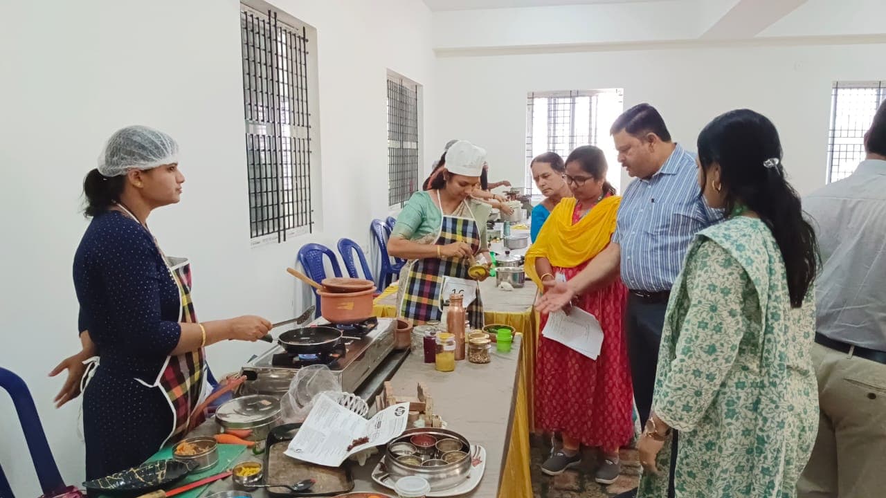 ಪಾಕ ಸ್ಪರ್ಧೆ ಆಯೋಜನೆ:ಪಾಕ ಸ್ಪರ್ಧೆಯಲ್ಲಿ 29 ಮಹಿಳೆಯರು ಭಾಗವಹಿಸಿ 90 ನಿಮಿಷದಲ್ಲಿ ಪಾಯಸ, ಶಾಮ್ಯ ಪಾಯಸ, ಉದಲು ಕಟ್ಲೇಟ್, ಸಿರಿಧಾನ್ಯ ರೊಟ್ಟಿ, ಟೊಮೇಟೊ ಬಾತ್, ಮಿಲೆಟ್ ಮಲಾಯಿ, ನವಣಕ್ಕಿ ಬಿಸಿಬೇಳೆಬಾತ್, ರಾಗಿ ದೋಸೆ, ಸಾಮೇಕ್ಕಿ ಪೊಂಗಲ್ ಸೇರಿ ಇತರೆ ರುಚಿಕರವಾದ ಖಾದ್ಯಗಳನ್ನು ಸಿದ್ಧಪಡಿಸಿದರು.