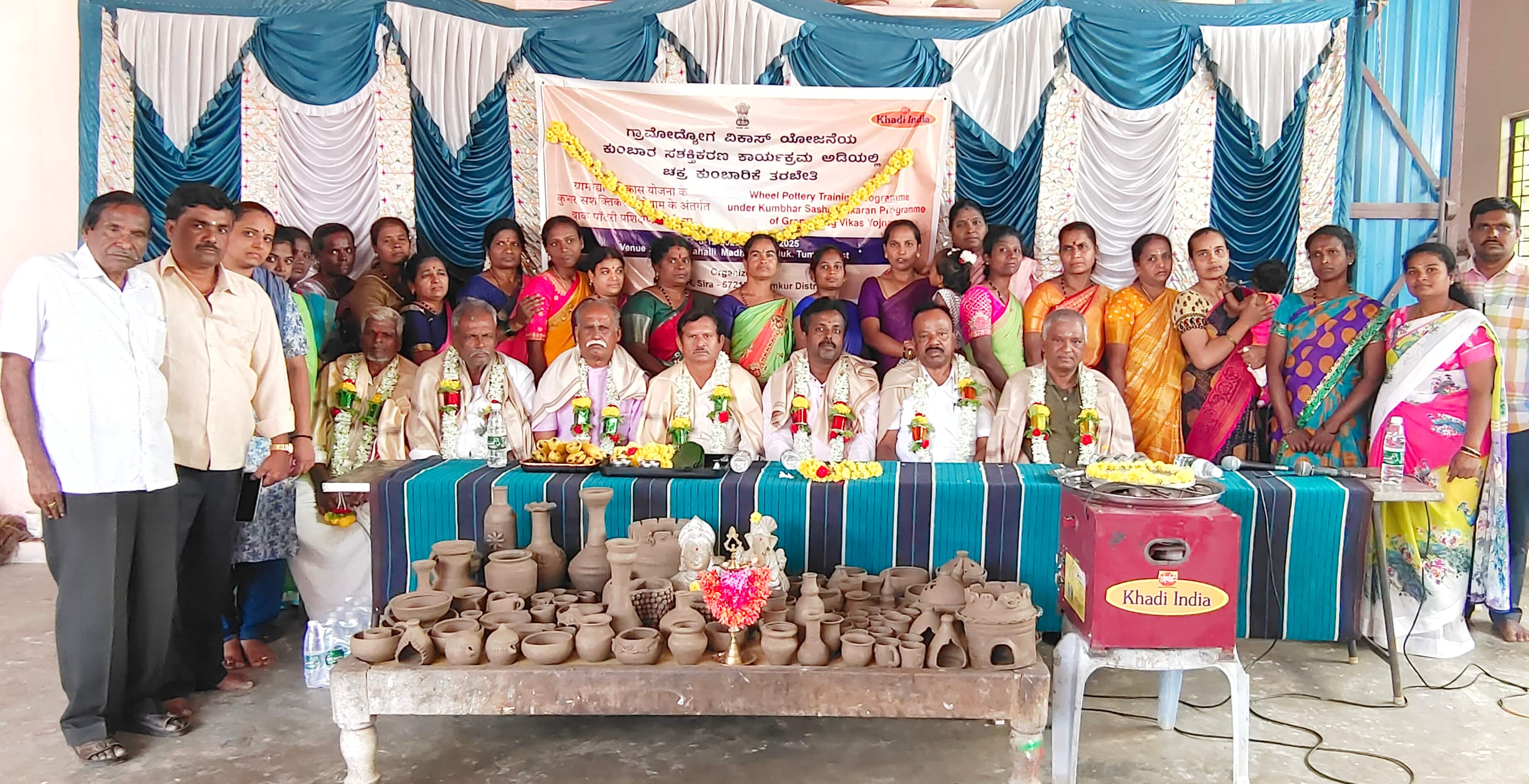 ಗ್ರಾಮೀಣ ಭಾಗದಲ್ಲಿ ಗುಡಿ ಕೈಗಾರಿಕೆ ಕಡಿಮೆ ಆಗುತ್ತಿರುವ ಸಂದರ್ಭದಲ್ಲಿ ಹೆಣ್ಣು ಮಕ್ಕಳು ವಿವಿಧ ಕುಲ ಕಸಬುಗಳನ್ನು ತರಬೇತಿ ಪಡೆಯುತ್ತಿರುವುದು ಸಂತಸ ತಂದಿದ್ದು ಇದರಿಂದ ಆರ್ಥಿಕಾಭಿವೃದ್ಧಿ ಆಗಲಿದೆ ಎಂದು ಎಂದು ಸರ್ವಜ್ಞ ವೇದಿಕೆಯ ಅಧ್ಯಕ್ಷ ವೆಂಕಟರಮಣಪ್ಪ ತಿಳಿಸಿದರು.ಕೊರಟಗೆರೆ ವಿಧಾನ ಸಭಾ ಕ್ಷೇತ್ರದ ಗಂಕಾರನಹಳ್ಳಿ ಗ್ರಾಮದಲ್ಲಿ ಗ್ರಾಮೋದ್ಯೋಗ ವಿಕಾಸ್ ಯೋಜನೆಯಡಿ ಚಕ್ರ ಕುಂಬಾರಿಕೆ ತರಬೇತಿ ಕಾರ್ಯಕ್ರಮದಲ್ಲಿ ಮಾತನಾಡಿದರು. ಕುಂಬಾರ ತರಬೇತಿ ಸಾಂಪ್ರದಾಯಕ ಕುಂಬಾರಿಕೆ ಕೌಶಲ್ಯಗಳನ್ನ ಆಧುನಿಕ ಯಂತ್ರಗಳೊಂದಿಗೆ ಸಂಯೋಜಿಸಿ ಮಡಿಕೆ, ಕುಡಿಕೆ, ಅಲಂಕಾರರಿಕ ವಸ್ತುಗಳನ್ನ ತಯಾರಿಸಲು ಕೇಂದ್ರ ಸರ್ಕಾರ ಗ್ರಾಮೋದ್ಯೋಗ ವಿಕಾಸ್ ಯೋಜನೆಯಡಿ ಕುಂಬಾರ ಸಶಕ್ತಿಕರಣ ಕಾರ್ಯಕ್ರಮವನ್ನು ಜಾರಿಗೆ ತಂದಿದ್ದು, ಅದರ ಸದುಪಯೋಗ ಪಡೆದುಕೊಂಡು ಆರ್ಥಿಕವಾಗಿ ಮುಂದೆ ಬರಬೇಲಕು ಎಂದು ತಿಳಿಸಿದರು.ತರಬೇತಿದಾರ ಸಂಪಂಗಿ ರಾಮಪ್ಪ ಮಾತನಾಡಿ , ಕೇಂದ್ರ ಹಾಗೂ ರಾಜ್ಯ ಸರ್ಕಾರಗಳು ಗ್ರಾಮೋದ್ಯೋಗ ವಿಕಾಸ್ ಯೋಜನೆಯಡಿ ಗ್ರಾಮೀಣ ಭಾಗ ಬಡತನದಲ್ಲಿರುವ ಕುಂಬಾರ ಸಮುದಾಯಕ್ಕೆ ಆರ್ಥಿಕವಾಗಿ ಹಾಗೂ ಸಾಮಾಜಿಕವಾಗಿ ಜೀವನ ನಡೆಸಲು ಅನೇಕ ಯೋಜನೆಗಳನ್ನ ಜಾರಿಗೆ ತರಲಾಗಿದೆ. ಕುಂಬಾರಿಕೆ ತಯಾರಿ ತರಬೇತಿಯಲ್ಲಿ ಸುಮಾರು ೨೦ಕ್ಕೂ ಹೆಚ್ಚು ಮಹಿಳೆಯರು ತರಬೇರಿಯನ್ನ ಪಡೆದಿದ್ದಾರೆ. ತರಬೇತಿ ಪಡೆದ ಎಲ್ಲರಿಗೂ ಮುಂದಿನ ದಿನಗಳಲ್ಲಿ ಉಪಕರಣಗಳನ್ನ ನೀಡಲಾಗುತ್ತದೆ ಎಂದು ತಿಳಿಸಿದರು.ಕುಂಬಾರ ಸಮುದಾಯದ ಮುಖಂಡ ಮೋಹನ್ ಮಾತನಾಡಿ, ಗ್ರಾಮೀಣ ಬಾಗದಲ್ಲಿ ಕುಂಬಾರಿಕೆ ನಶಿಸಿ ಹೋಗುತ್ತಿರುವ ಸಂದರ್ಭದಲ್ಲಿ ಕೇಂದ್ರ ಹಾಗೂ ರಾಜ್ಯ ಸರ್ಕಾರಗಳು ಗ್ರಾಮೋದ್ಯೋಗ ವಿಕಾಸ್ ಯೋಜನೆಯಡಿ ನಮ್ಮ ಸಮುದಾಯದ ಮಹಿಳೆಯರಿಗೆ ಸುಮಾರು ೧೦ ದಿನಗಳ ಕಾಲ ಜೇಡಿ ಮಣ್ಣಿನಿಂದ ಆರೋಗ್ಯಕರ ಮಡಿಕೆ, ಕುಡಿಕೆ, ವಾಟರ್ ಬಾಟಲ್, ಬಿರಿಯಾನಿ ಬಟ್ಟಲು, ತುಳಸಿ ಕಟ್ಟೆ, ದೀಪ, ಸೇರಿದಂತೆ ಮನೆಯಲ್ಲಿ ಇಡುವಂತ ಅಲಂಕಾರಕ ವಸ್ತುಗಳನ್ನ ತರಬೇತಿ ಪಡೆದಿದ್ದಾರೆ ಎಂದು ಹೇಳಿದರು. ಇದೆ ಸಂದರ್ಭದಲ್ಲಿ ಕರವೇ ಅಧ್ಯಕ್ಷ ಅಶ್ವಥಪ್ಪ, ಮಧುಗಿರಿ ವರದರಾಜು, ರಂಗಸ್ವಾಮಿ, ತರಬೇತಿದಾರರಾದ ಸಂಪಂಗಿರಾಮ್, ಮದರ್ ಸಂಸ್ಥೆಯ ಭಾಸ್ಕರ್, ಲಿಂಗ ದೊರೆ, ಮಮತಾ, ನಾಗಮಣಿ, ಪಾರ್ವತಮ್ಮ, ಲತಾಮಣಿ, ಕಾಂತಮ್ಮ, ರೂಪ, ಸೇರಿದಂತೆ ಇತರರು ಇದ್ದರು.