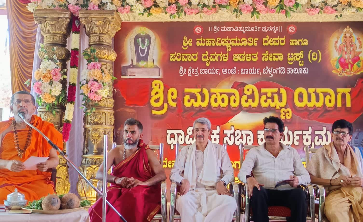 ಬಾರ್ಯ ಶ್ರೀ ಮಹಾವಿಷ್ಣು ದೇವಸ್ಥಾನದಲ್ಲಿ ಜರುಗಿದ ಶ್ರೀ ಮಹಾವಿಷ್ಣುಯಾಗ ಸಂದರ್ಭದಲ್ಲಿ ದೇವಸ್ಥಾನದ ಹೊರಾಂಗಣಕ್ಕೆ ಶಾಶ್ವತ ಮೇಲ್ಚಾವಣಿ ಅಳವಡಿಸುವ ಕಾರ್ಯಕ್ಕೆ ಚಾಲನೆ ನೀಡಿದರು.ಅಖಿಲ ಕರ್ನಾಟಕ ಹಿರಿಯರ ಸೇವಾ ಪ್ರತಿಷ್ಠಾನದ ಅಧ್ಯಕ್ಷ ಕಯ್ಯೂರು ನಾರಾಯಣ ಭಟ್, ಖಜಾಂಜಿ ಅನಾರು ಕೃಷ್ಣಶರ್ಮ ಉಪಸ್ಥಿತರಿದ್ದರು. ಬಾರ್ಯ ಶ್ರೀ ಪಾಂಡುರಂಗ ಭಜನಾ ಮಂದಿರದ ನೂತನ ಕಟ್ಟಡದ ಪ್ರವೇಶೋತ್ಸವದ ಆಮಂತ್ರಣ ಪತ್ರಿಕೆಯನ್ನು ಈ ಸಂದರ್ಭ ಸ್ವಾಮೀಜಿ ಬಿಡುಗಡೆಗೊಳಿಸಿದರು.