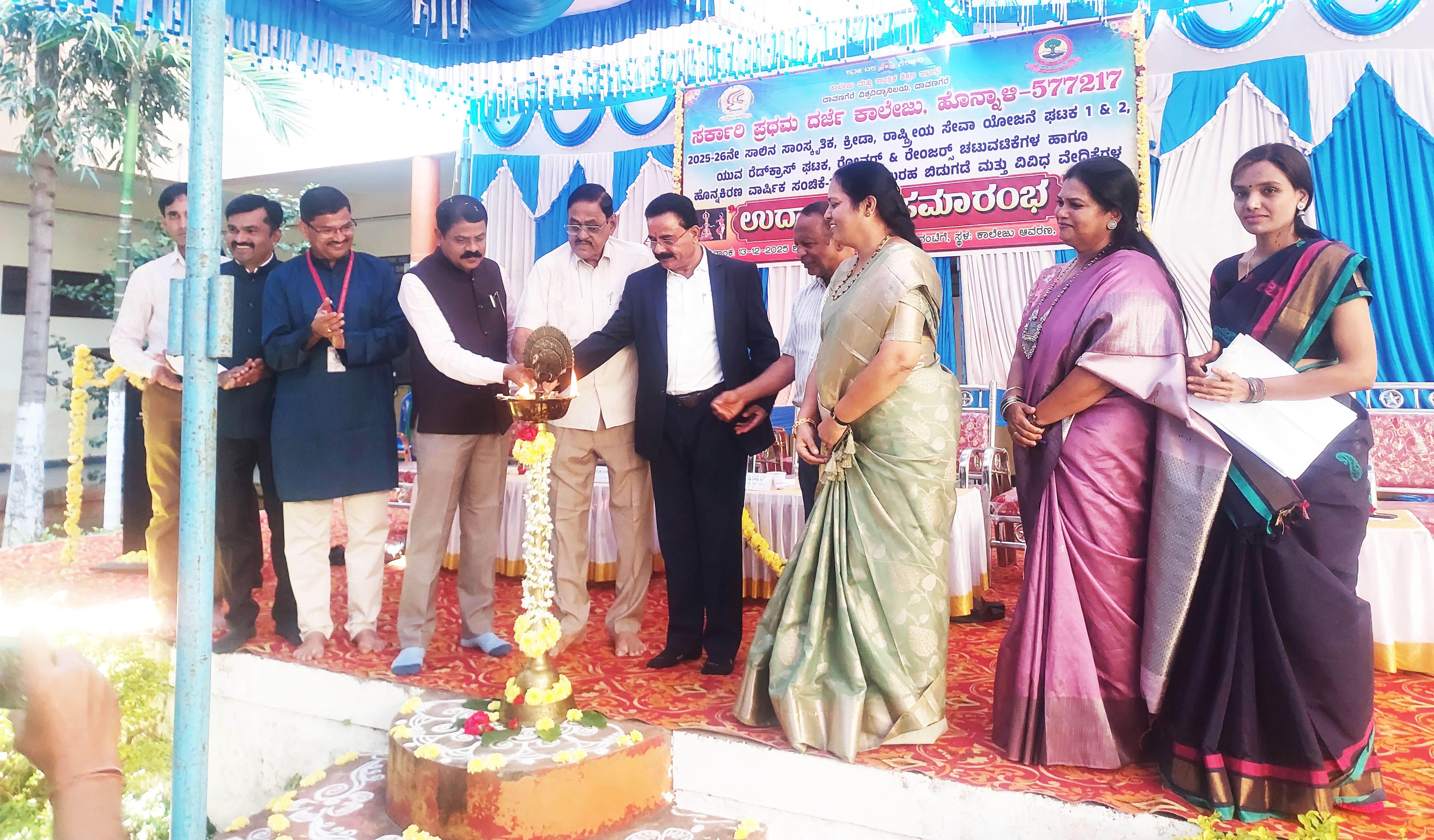 ಹೊನ್ನಾಳಿಯ ಸರ್ಕಾರಿ ಪ್ರಥಮ ದರ್ಜೆ ಕಾಲೇಜು 2007ರಲ್ಲಿ ಆರಂಭಗೊಂಡಾಗ ಕೇವಲ 121 ವಿದ್ಯಾರ್ಥಿಗಳು ಇದ್ದರು ಆದರೆ ಇಂದು ಕ್ರೀಯಾಶೀಲ ಪ್ರಾಂಶುಪಾಲರು, ಹಾಗೂ ಉಪನ್ಯಾಸಕ ವರ್ಗದ ಕಾರಣ 564 ವಿದ್ಯಾರ್ಥಿನಿಯರು, ಹಾಗೂ 322 ವಿದ್ಯಾರ್ಥಿಗಳು ಒಟ್ಟು 886 ಜನ ವಿದ್ಯಾರ್ಥಿಗಳು ಅದರಲ್ಲೂ ಗ್ರಾಮೀಣ ಬಡ ಕುಟುಂಬಗಳಿಂದ ಬರುತ್ತಿರುವ ವಿದ್ಯಾರ್ಥಿಗಳು ಇದ್ದು ಇವರಿಗೆ ಎಲ್ಲಾ ರೀತಿಯ ಶೈಕ್ಷಣಿಕ ಸೌಲಭ್ಯಗಳೊಂದಿಗೆ ಶಿಕ್ಷಣ ದೊರೆಯುತ್ತಿರುವುದು ಶ್ಲಾಘನೀಯ ಎಂದು ಮೆಚ್ಚುಗೆ ವ್ಯಕ್ತಪಡಿಸಿದರು.ದಾವಣಗೆರೆ ವಿಶ್ವವಿದ್ಯಾಲಯದ ಕುಲಪತಿ ಪ್ರೊ.ಬಿ.ಡಿ.ಕುಂಬಾರ ಮಾತನಾಡಿ, ಯುವಕರು ಶಿಕ್ಷಣ ಪಡೆದು ಬೇರೆಯವರ ಕೈಯಲ್ಲಿ ಉದ್ಯೋಗಿಗಳಾಗುವುದರ ಬದಲಿಗೆ ತಮ್ಮಲ್ಲಿರುವ ಕೌಶಲ್ಯ ಶಕ್ತಿಯಿಂದ ಸ್ವಂತ ಉದ್ಯೋಗದಿಂದ ತಾವೇ ಇನ್ನೊಬ್ಬರಿಗೆ ಉದ್ಯೋಗ ನೀಡುವಂತಹ ಉದ್ಯೋಗದಾತರಾಗಬೇಕು ಎಂದರು.