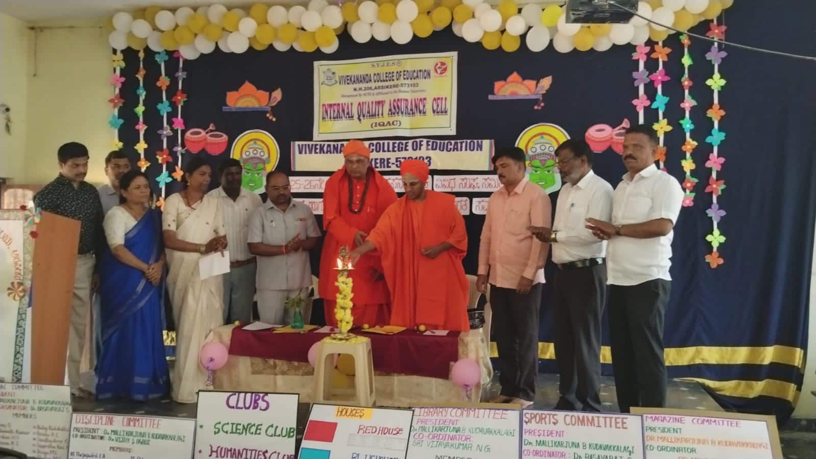 ವಿವೇಕಾನಂದ ಬಿಎಡ್ ಕಾಲೇಜಿನಲ್ಲಿ ವ್ಯಾಸಂಗ ಮಾಡಿದ ಸಾವಿರಾರು ವಿದ್ಯಾರ್ಥಿಗಳು ಇಂದು ವಿವಿಧ ಉನ್ನತ ಹುದ್ದೆಗಳನ್ನು ಅಲಂಕರಿಸಿ ಸಮಾಜ ಸೇವೆಯಲ್ಲಿ ತೊಡಗಿಸಿಕೊಂಡಿರುವುದು ಹೆಮ್ಮೆಯ ಸಂಗತಿ. ಇದೇ ಹಾದಿಯಲ್ಲಿ ಹೊಸದಾಗಿ ದಾಖಲಾದ ಪ್ರಶಿಕ್ಷಣಾರ್ಥಿಗಳು ಕಾಲೇಜಿನಲ್ಲಿ ದೊರೆಯುವ ಶೈಕ್ಷಣಿಕ ಸೌಲಭ್ಯಗಳನ್ನು ಸದ್ಬಳಕೆ ಮಾಡಿಕೊಂಡು ಉತ್ತಮ ಸಾಧನೆ ಮಾಡಬೇಕು ಎಂದು ಕಿವಿಮಾತು ಹೇಳಿದರು.ಕಲ್ಮುರುಡೇಶ್ವರ ತಪೋವನದ ಕರಡಿ ಗವಿ ಮಹಾಸಂಸ್ಥಾನದ ಶ್ರೀ ಶಿವಶಂಕರ ಶಿವಯೋಗಿ ಸ್ವಾಮೀಜಿ ಮಾತನಾಡಿ, ಕಾಲೇಜಿನಲ್ಲಿ ಕನ್ನಡ, ವಿಜ್ಞಾನ, ಗ್ರಂಥಾಲಯ, ಕ್ರೀಡೆ, ನ್ಯಾಕ್ ಹಾಗೂ ಶಿಸ್ತು ಪಾಲನೆ ಸೇರಿದಂತೆ ವಿವಿಧ ಸಂಘಗಳು ಮತ್ತು ಸಮಿತಿಗಳನ್ನು ರಚಿಸಿರುವುದು ಶ್ಲಾಘನೀಯ ಎಂದರು.