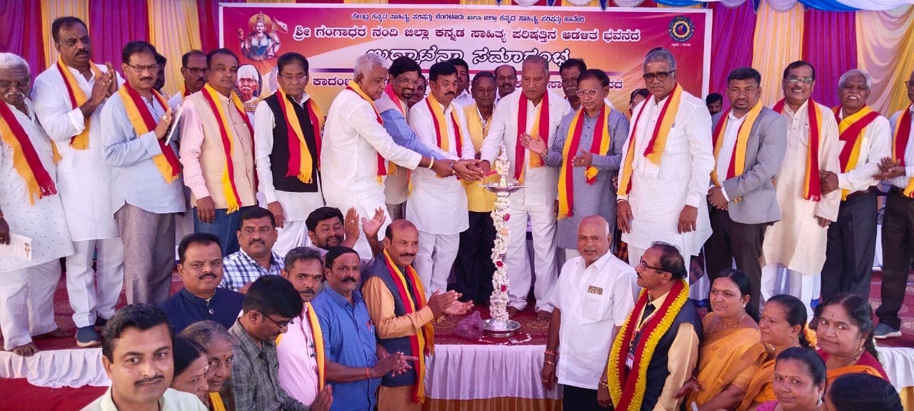 ಹಾವೇರಿ: ದಾನಿಗಳ ಸಹಕಾರದಲ್ಲಿ ಕನ್ನಡ ಮಾಧ್ಯಮ ಶಾಲೆಗಳ ಉಳಿವಿಗೆ ಗ್ರಾಮ ಪಂಚಾಯತ್ ಮಟ್ಟದಲ್ಲಿ ಕೆಪಿಎಸ್ ಶಾಲೆ ಆರಂಭಿಸಲು ಸರ್ಕಾರ ಚಿಂತನೆ ನಡೆಸಿದೆ ಎಂದು ವಿಧಾನಸಭೆ ಉಪಸಭಾಧ್ಯಕ್ಷ, ಶಾಸಕ ರುದ್ರಪ್ಪ ಲಮಾಣಿ ಹೇಳಿದರು. ಇಲ್ಲಿನ ವಿನಾಯಕ ನಗರದ ಬಿ ಬ್ಲಾಕ್ನ ಶ್ರೀ ಗಂಗಾಧರ ನಂದಿ ಜಿಲ್ಲಾ ಕನ್ನಡ ಸಾಹಿತ್ಯ ಪರಿಷತ್ತಿನ ಆಡಳಿತ ಭವನದ ಉದ್ಘಾಟನೆ ಹಾಗೂ ಕಾದಂಬರಿ ಪಿತಾಮಹ ಗಳಗನಾಥರ ಜಿಲ್ಲಾ ಕನ್ನಡ ಸಾಹಿತ್ಯ ಭವನದ ಅಡಿಗಲ್ಲು ಸಮಾರಂಭದ ಅಧ್ಯಕ್ಷತೆ ವಹಿಸಿ ಅವರು ಮಾತನಾಡಿದರು. ಶ್ರೀಮಂತರು ತಮ್ಮ ಮಕ್ಕಳನ್ನು ಇಂಗ್ಲಿಷ್ ಮಾಧ್ಯಮದಲ್ಲಿ ಹಾಗೂ ಬಡವರ ಮಕ್ಕಳು ಕನ್ನಡ ಮಾಧ್ಯಮದಲ್ಲಿ ಅಧ್ಯಯನ ಮಾಡಲು ಬಯಸುತ್ತಾರೆ. ಗ್ರಾಮೀಣ ಪ್ರದೇಶಗಳಲ್ಲಿ ಶಾಲೆಗಳ ಸ್ಥಿತಿ ಶೋಚನೀಯವಾಗಿದೆ. ಈ ಹಿನ್ನೆಲೆಯಲ್ಲಿ ಸರ್ಕಾರ ಬಸ್ ವ್ಯವಸ್ಥೆ ಕಲ್ಪಿಸುವ ಮೂಲಕ ಕನ್ನಡ ಮಾಧ್ಯಮ ಶಾಲೆಗಳ ಪುನರುಜ್ಜೀವನಕ್ಕೆ ಬದ್ಧವಾಗಿದೆ. ತಮ್ಮ ಮಕ್ಕಳನ್ನು ಇಂಗ್ಲಿಷ್ ಮಾಧ್ಯಮದಲ್ಲಿ ಓದಿಸಿ ಕನ್ನಡ ಉಳಿವಿಗೆ ಕೂಗುವ ಪಾಲಕರು ಆತ್ಮಾವಲೋಕನ ಮಾಡಿಕೊಳ್ಳಬೇಕು ಎಂದರು. ಕೇಂದ್ರ ಕನ್ನಡ ಸಾಹಿತ್ಯ ಪರಿಷತ್ತಿನ ಅಧ್ಯಕ್ಷ ನಾಡೋಜ ಡಾ. ಮಹೇಶ ಜೋಶಿ ಮಾತನಾಡಿ, 86ನೇ ಅಖಿಲ ಭಾರತ ಕನ್ನಡ ಸಾಹಿತ್ಯ ಸಮ್ಮೇಳನ ಸ್ಮರಣೆಗೆ ಶ್ರೀ ಗಂಗಾಧರ ನಂದಿ ಅವರ ಹೆಸರಿನಡಿ ಆಡಳಿತ ಭವನ ಉದ್ಘಾಟಿಸಿರುವುದು ನನ್ನ ಪುಣ್ಯ. ಸಮ್ಮೇಳನ ಪಕ್ಷಾತೀತ, ಜಾತ್ಯತೀತ ಮಾದರಿಯಲ್ಲಿ ಯಶಸ್ವಿಯಾಗಿ ಜರುಗಿರುವುದು ನಮ್ಮೆಲ್ಲರ ಹೆಮ್ಮೆ. ಸಮ್ಮೇಳನದ ಬಳಿಕ ಉಳಿದ ಹಣವನ್ನು ಕನ್ನಡ ಸಾಹಿತ್ಯ ಪರಿಷತ್ತಿನ ಕಾರ್ಯಚಟುವಟಿಕೆಗಳಿಗೆ ಬಳಸಿಕೊಳ್ಳಬೇಕು. ನನ್ನ ಪಾಲಿನ ಕರ್ತವ್ಯವನ್ನು ಅಭಿಮಾನದಿಂದ ಮಾಡಿದ್ದೇನೆ. ಉಳಿದಿರುವ 70 ಲಕ್ಷ ರು.ಗಳ ಜೊತೆಗೆ ಸರ್ಕಾರದ ಅನುದಾನದಲ್ಲಿ ನೂತನ ಕಟ್ಟಡ ನಿರ್ಮಿಸಬಹುದು ಎಂದರು.ಮಾಜಿ ಶಾಸಕ ನೆಹರು ಓಲೇಕಾರ ಮಾತನಾಡಿ, ನಾನು ಶಾಸಕನಾಗಿದ್ದ ಅವಧಿಯಲ್ಲಿ ಈ ಕಟ್ಟಡದ ನಿರ್ಮಾಣಕ್ಕೆ ಜಾಗೆಯ ಪಟ್ಟಾ ಕೊಟ್ಟಿದ್ದೆ. ಅಷ್ಟೇ ಅಲ್ಲದೇ 10 ಲಕ್ಷ ರು.ಗಳ ಶಾಸಕರ ಅನುದಾನ ಒದಗಿಸಿದ್ದೆ. ಎಲ್ಲರ ಸಹಕಾರದಿಂದ ನೂತನ ಕಟ್ಟಡ ನಿರ್ಮಾಣವಾಗಿದೆ. ಮುಂಬರುವ ದಿನಗಳಲ್ಲಿ ಕನ್ನಡ ಪರ ಚಟುವಟಿಕೆ ಜರುಗಲಿ ಎಂದರು.ವಿಧಾನ ಪರಿಷತ್ ಸದಸ್ಯ ಪ್ರೊ. ಎಸ್.ವಿ. ಸಂಕನೂರ ಮಾತನಾಡಿದರು. ವಿಧಾನ ಪರಿಷತ್ ಮಾಜಿ ಸದಸ್ಯ ಡಿ.ಎಂ.ಸಾಲಿ, ದಾನಿ ಡಾ.ರವಿ ನಂದಿ ಮಾತನಾಡಿದರು. ಇದೇ ಸಂದರ್ಭದಲ್ಲಿ ಕಟ್ಟಡ ನಿರ್ಮಾಣಕ್ಕೆ ದೇಣಿಗೆ ನೀಡಿರುವ ದಾನಿಗಳನ್ನು ಹಾಗೂ ನಿಕಟಪೂರ್ವ ಕಸಾಪ ಜಿಲ್ಲಾಧ್ಯಕ್ಷರನ್ನು ಸನ್ಮಾನಿಸಿ, ಗೌರವಿಸಲಾಯಿತು. ಶಾಸಕ ಬಸವರಾಜ ಶಿವಣ್ಣನವರ, ನಗರಾಭಿವೃದ್ಧಿ ಪ್ರಾಧಿಕಾರದ ಅಧ್ಯಕ್ಷ ಎಸ್.ಎಫ್.ಎನ್ ಗಾಜಿಗೌಡ್ರ, ಮುಖಂಡರಾದ ಎಂ.ಎA.ಹಿರೇಮಠ, ಎಂ.ಎಂ. ಮೈದೂರ, ನಗರಸಭೆ ಉಪಾಧ್ಯಕ್ಷ ಮಲ್ಲಿಕಾರ್ಜುನ ಸಾತೇನಹಳ್ಳಿ, ನಗರಸಭೆ ಸದಸ್ಯ ಸಂಜೀವಕುಮಾರ ನೀರಲಗಿ, ಅಪರ ಜಿಲ್ಲಾಧಿಕಾರಿ ನಾಗರಾಜ ಎಲ್, ಲಿಂಗರಾಜ ಅಂಗಡಿ, ಕೇಂದ್ರ ಕಸಾಪ ಗೌರವ ಕಾರ್ಯದರ್ಶಿ ಬಿ.ಎಂ.ಪಟೇಲಪಾಂಡು, ಬಿ.ಎನ್. ವಾಸರೆ, ವಾಮದೇವಪ್ಪ, ಬಿ.ಎನ್. ವಾಸರೆ, ಮಲ್ಲೇಶ ಕರಿಗಾರ, ಸಾಹಿತಿ ಗಂಗಾಧರ ನಂದಿ ಅವರ ಪತ್ನಿ ಸುಲೋಚನಾ ನಂದಿ, ಉದ್ಯಮಿ ಪವನ್ ದೇಸಾಯಿ, ಜಿಲ್ಲೆಯ ಎಂಟು ತಾಲೂಕಿನ ಕಸಾಪ ಅಧ್ಯಕ್ಷರು, ಸಂಘ ಸಂಸ್ಥೆಗಳ ಪದಾಧಿಕಾರಿಗಳು ಉಪಸ್ಥಿತರಿದ್ದರು. ಕಸಾಪ ತಾಲೂಕಾಧ್ಯಕ್ಷ ವೈ.ಬಿ. ಆಲದಕಟ್ಟಿ ಸ್ವಾಗತಿಸಿದರು. ನಾಗರಾಜ ನಡುವಿನಮಠ 