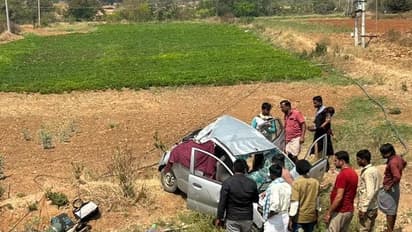 ಬೆಂಗಳೂರಿನಿಂದ ಹೊರಟಿದ್ದ ಕಾರೊಂದು ಚಾಲಕನ ನಿಯಂತ್ರಣ ಕೂಡ್ಲಿಗಿ ಸಮೀಪದ ವಿರುಪಾಪುರ ಗ್ರಾಮದ ಬಳಿ ರಾಷ್ಟ್ರೀಯ ಹೆದ್ದಾರಿ 50 ರಲ್ಲಿ ಆಳವಾದ ಸೇತುವೆ ಗುಂಡಿಗೆ ಬಿದ್ದ ಪರಿಣಾಮ ಕಾರಿನಲ್ಲಿದ್ದ ವೃದ್ಧ ಮಹಿಳೆ ಸ್ಥಳದಲ್ಲೇ ಸಾವನ್ನಪ್ಪಿದರೆ, ಈಕೆಯ ಪತಿ ತೀವ್ರಗಾಯಗೊಂಡು ಕೂಡ್ಲಿಗಿ ಆಸ್ಪತ್ರೆಯಲ್ಲಿ ಚಿಕಿತ್ಸೆ ಫಲಕಾರಿಯಾಗದೆ ಸಾವನ್ನಪ್ಪಿರುವ ಘಟನೆ ಶನಿವಾರ ಬೆಳಿಗ್ಗೆ ನಡೆದಿದೆ. ಈ ಅಪಘಾತದಲ್ಲಿ ಇನ್ನೊಂದು ದಂಪತಿಗೆ ತೀವ್ರ ಗಾಯಗಳಿಗವೆ. | Kannada Prabha
