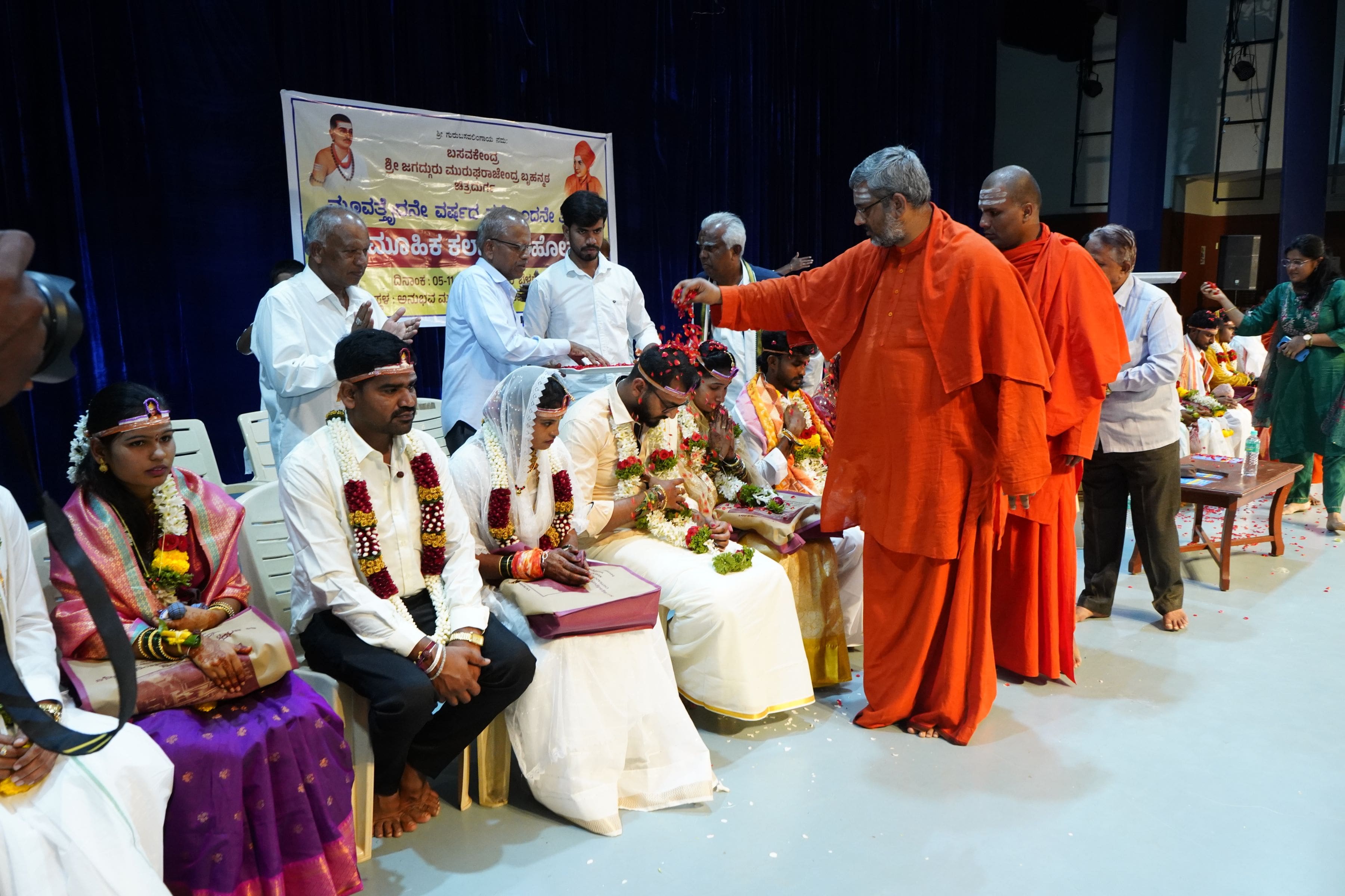 ಶ್ರೀಮಠವು ಅಮಾವಾಸ್ಯೆ, ಹುಣ್ಣಿಮೆ ನೋಡದೆ ವಿವಾಹಗಳನ್ನು ಏರ್ಪಡಿಸುತ್ತ ಬಂದಿದೆ. ಇಂದು ಹುಣ್ಣಿಮೆಯಾದರೂ ವಿವಾಹಗಳು ನೆರವೇರುತ್ತಿವೆ. ಅದು ಶ್ರೀಮಠದ ಆದರ್ಶ ಕಾರ್ಯವಾಗಿದೆ ಸಾರ್ವಜನಿಕರು ದುಂದುವೆಚ್ಚ ಮಾಡದೆ ತಮ್ಮ ಮಕ್ಕಳ, ಮೊಮ್ಮಕ್ಕಳ ವಿವಾಹವನ್ನು ಸರಳವಾಗಿ ಸಾಮೂಹಿಕ ವಿವಾಹದಲ್ಲಿಯೇ ಮಾಡಿ ಎಂದು ಮನವಿ ಮಾಡಿದರು.ದಾವಣಗೆರೆ ವಿರಕ್ತಮಠದ ಡಾ. ಬಸವಪ್ರಭು ಸ್ವಾಮಿಗಳು ಮಾತನಾಡಿ, ಮನೆ ಕಟ್ಟಿ ನೋಡು; ಮದುವೆ ಮಾಡಿ ನೋಡು ಎಂಬ ಮಾತಿದೆ. ಕಾರಣ ಎರಡೂ ಕಷ್ಟದ ಕೆಲಸಗಳು. ಅಂತಹ ಕಷ್ಟದ ಕೆಲಸವನ್ನು ಮುರುಘಾಮಠವು ಸುಮಾರು 35 ವರ್ಷಗಳಿಂದ ಸಾಮೂಹಿಕ ಕಲ್ಯಾಣ ಮಹೋತ್ಸವದ ಮೂಲಕ ಮಾಡುತ್ತ ಬಂದಿದೆ. ಸತಿ ಪತಿಗಳ ನಡುವೆ ಪ್ರೀತಿ ಇರಬೇಕು. ಅದರಿಂದ ಸುಖ ಸಂಸಾರ ಸಾಧ್ಯ. ಸಿಹಿಯಾದ ಜೀವನ ಸತಿ ಪತಿಗಳು ಒಂದಾದಾಗ ಮಾತ್ರ ಸಾಧ್ಯ ಎಂದರು.