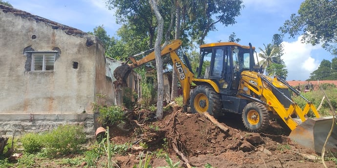 ಶ್ರೀರಂಗಪಟ್ಟಣ ತಾಲೂಕಿನ ಕೆಆರ್ಎಸ್ನ ಕಾವೇರಿ ನೀರಾವರಿ ಇಲಾಖೆ ಕಾರ್ಯಪಾಲಕ ಅಭಿಯಂತರ ಕಚೇರಿ ಮುಂಭಾಗ ಖಾಸಗಿ ವ್ಯಕ್ತಿ ಒತ್ತುವರಿ ಮಾಡಿ ನಿರ್ಮಿಸಿದ್ದ ವಸತಿ ಗೃಹವನ್ನು ನಿಗಮದ ಅಧಿಕಾರಿಗಳು ಜೆಸಿಬಿ ಮೂಲಕ ತೆರವು ಮಾಡಿದರು.