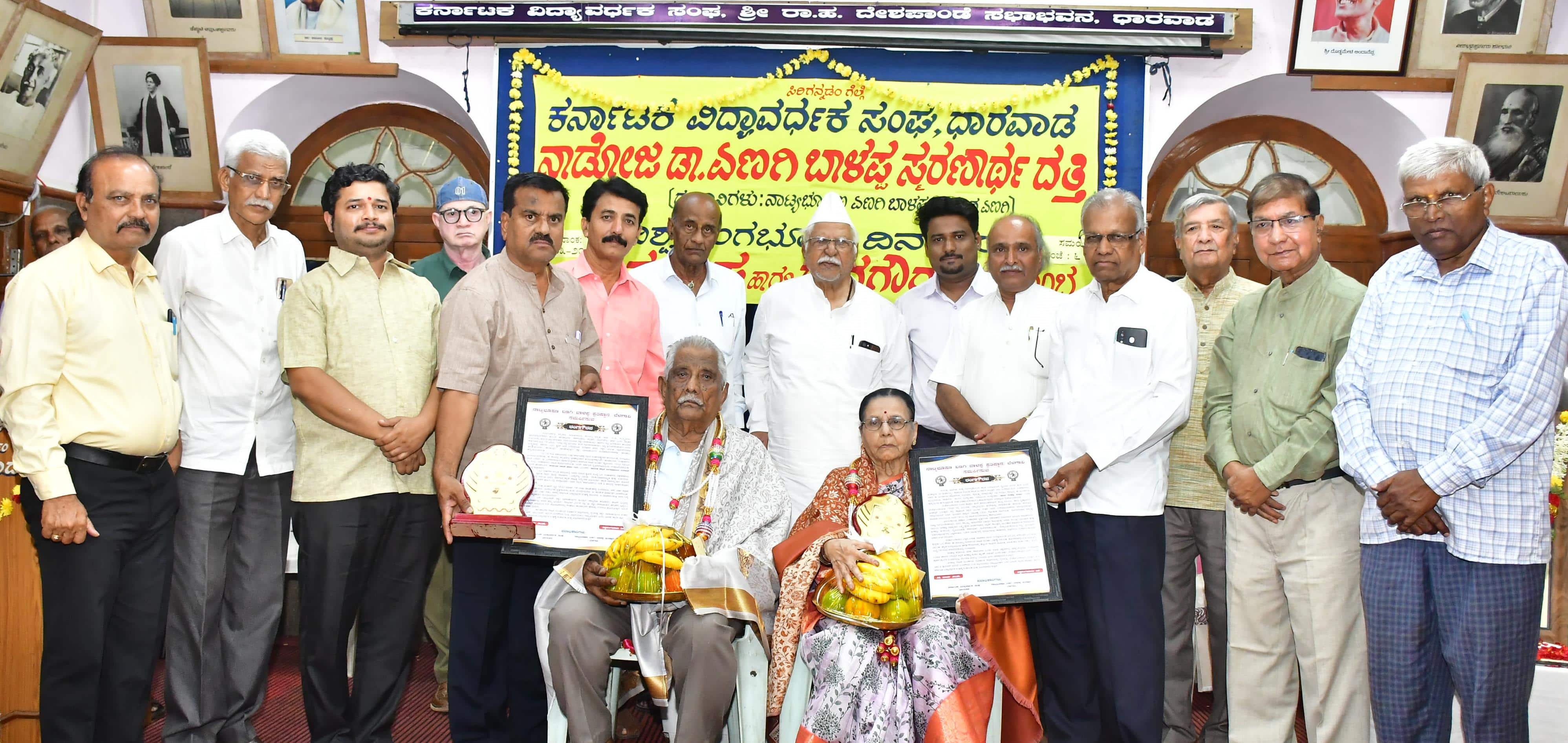 ಕರ್ನಾಟಕ ವಿದ್ಯಾವರ್ಧಕ ಸಂಘ ‘ನಾಡೋಜ ಡಾ. ಏಣಗಿ ಬಾಳಪ್ಪ ಸ್ಮರಣಾರ್ಥ ದತ್ತಿ’ ಅಂಗವಾಗಿ ಆಯೋಜಿಸಿದ್ದ ದತ್ತಿ ಉಪನ್ಯಾಸ ಹಾಗೂ ರಂಗ ಗೌರವದಲ್ಲಿ ರಂಗ ಗೌರವ ಸನ್ಮಾನ ಮಾಡಿ ಮಾತನಾಡಿದರು.1874ರಲ್ಲಿ ವೀರನಾರಾಯಣ ಪ್ರಸಾದಿಕ ಕೃತಪುರ ಕರ್ನಾಟಕ ನಾಟಕ ಮಂಡಳಿ ಹಾಗೂ ಶಿರಹಟ್ಟಿಯ ಮಹಾಲಕ್ಷ್ಮೀ ಪ್ರಸಾದಿಕ ಸಂಗೀತ ನಾಟಕ ಮಂಡಳಿಗಳು ಮರಾಠಿಮಯವಾದ ಆ ಕಾಲ ಘಟ್ಟದಲ್ಲಿ ಕರ್ನಾಟಕದಲ್ಲಿ ಕನ್ನಡ ನಾಟಕ ಸಂಸ್ಕೃತಿಯನ್ನು ಪುನರುಜ್ಜೀವನಗೊಳಿಸಿದವು. ಆಧುನಿಕ ನಾಟಕಗಳ ಪಿತಾಮಹರೆನಿಸಿಕೊಂಡ ಸಕ್ಕರಿ ಬಾಳಾಚಾರ್ಯ ಹಾಗೂ ಡಾ. ಏಣಗಿ ಬಾಳಪ್ಪನವರ ರಂಗ ಸೇವೆ ಸ್ಮರಣೀಯ ಎಂದರು.