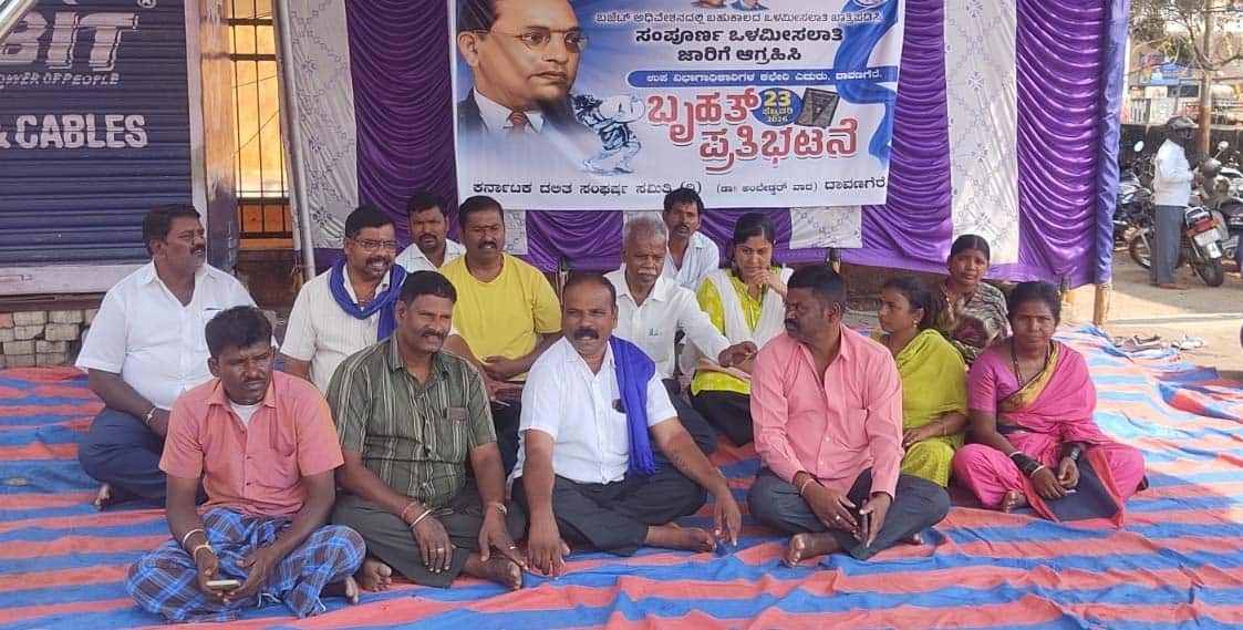 - ದಾವಣಗೆರೆ ಎಸಿ ಕಚೇರಿ ಬಳಿ ರಾಜ್ಯ ಸಂಚಾಲಕ ಮಲ್ಲೇಶ್ ನೇತೃತ್ವದಲ್ಲಿ ಧರಣಿ