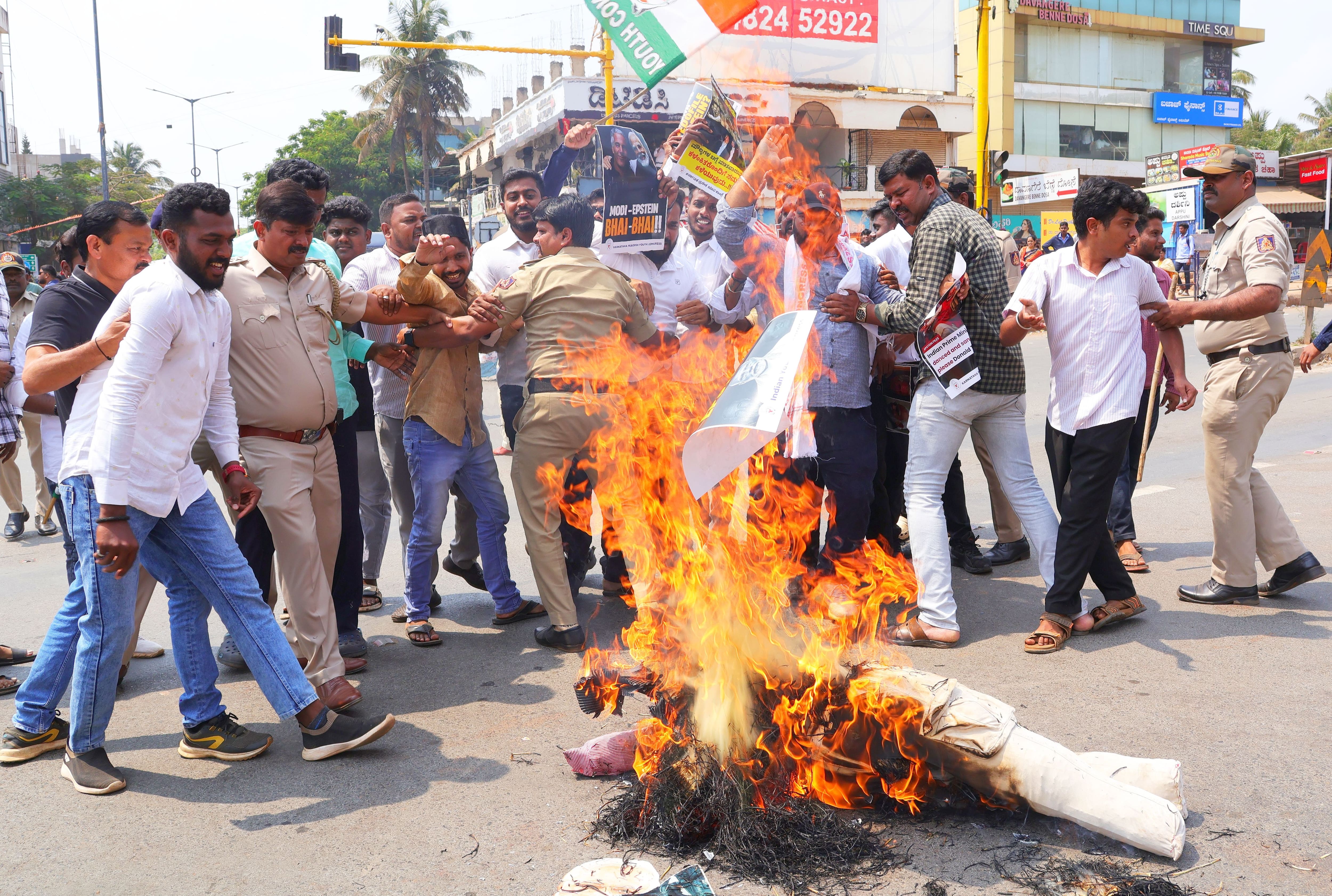 ದೇಶವಲ್ಲದೆ ವಿದೇಶದಲ್ಲೂ ಚರ್ಚೆಯಾಗುತ್ತಿರುವ ಎಪ್ಸ್ಟೀನ್ ಸಂಬಂಧಿತ ದಾಖಲೆಗಳ ಬಗ್ಗೆ ಕೇಂದ್ರ ಸರ್ಕಾರದಿಂದ ಪಾರದರ್ಶಕತೆ ಮತ್ತು ಹೊಣೆಗಾರಿಕೆಗೆ ಒತ್ತಾಯಿಸಿ ಸೋಮವಾರ ಹುಬ್ಬಳ್ಳಿ-ಧಾರವಾಡ ಮಹಾನಗರ ಜಿಲ್ಲಾ ಯುವ ಕಾಂಗ್ರೆಸ್ ಘಟಕದಿಂದ ಪ್ರತಿಭಟನೆ ನಡೆಸಲಾಯಿತು. ಈ ವೇಳೆ ಕಾರ್ಯಕರ್ತರನ್ನು ವಶಕ್ಕೆ ಪಡೆದು ನಂತರ ಬಿಡುಗಡೆಗೊಳಿಸಲಾಯಿತು.ಇಲ್ಲಿನ ವಿದ್ಯಾನಗರದ ಆರ್ಟ್ಸ್ ಕಾಲೇಜು ವೃತ್ತದಲ್ಲಿ ಸೇರಿದ ಕಾಂಗ್ರೆಸ್ ಯುವ ಕಾರ್ಯಕರ್ತರು ಪ್ರಧಾನಿ ನರೇಂದ್ರ ಮೋದಿ ಹಾಗೂ ಎಪ್ಸ್ಟೀನ್ ಇರುವ ಪ್ರತಿಕೃತಿ ದಹಿಸಿ ಆಕ್ರೋಶ ವ್ಯಕ್ತಪಡಿಸಿದರು. ಈ ವೇಳೆ ರಸ್ತೆ ತಡೆಯಲು ಮುಂದಾದ ಪ್ರತಿಭಟನಾಕಾರರು ಹಾಗೂ ಪೊಲೀಸರ ನಡುವೆ ಕೆಲಕಾಲ ವಾಗ್ವಾದ ನಡೆಯಿತು. ರಸ್ತೆ ತಡೆಯಲು ಮುಂದಾದ ಪ್ರತಿಭಟನಾಕರರನ್ನು ಪೊಲೀಸರು ವಶಕ್ಕೆ ಪಡೆದು ಬಳಿಕ ಬಿಡುಗಡೆ ಮಾಡಿದರು.