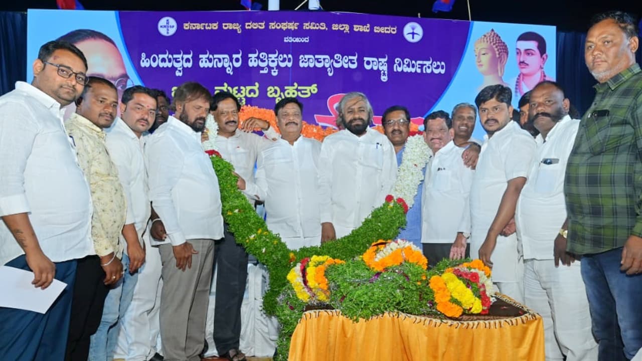 ಬಡತನ, ಅಸಮಾನತೆ ನಿರ್ಮೂಲನೆ ಮಾಡಲು ಎಲ್ಲರು ಶ್ರಮಿಸಿ ಎಂದು ಸಮಾಜ ಕಲ್ಯಾಣ ಸಚಿವ ಡಾ. ಮಹದೇವಪ್ಪ ಕರೆ ನೀಡಿದರು. ಬೀದರ್ನಲ್ಲಿ ಕರ್ನಾಟಕ ರಾಜ್ಯ ದಲಿತ ಸಂಘರ್ಷ ಸಮಿತಿ ರಾಜ್ಯ ಹಾಗೂ ಜಿಲ್ಲಾ ಘಟಕದಿಂದ ಹಿಂದುತ್ವದ ಹುನ್ನಾರ ಹತ್ತಿಕ್ಕಲು ಜಾತ್ಯತೀತ ರಾಷ್ಟ್ರ ನಿರ್ಮಿಸಲು ಬೃಹತ್ ಸಮಾವೇಶ ಸಮಾರಂಭ ನಡೆಯಿತು.