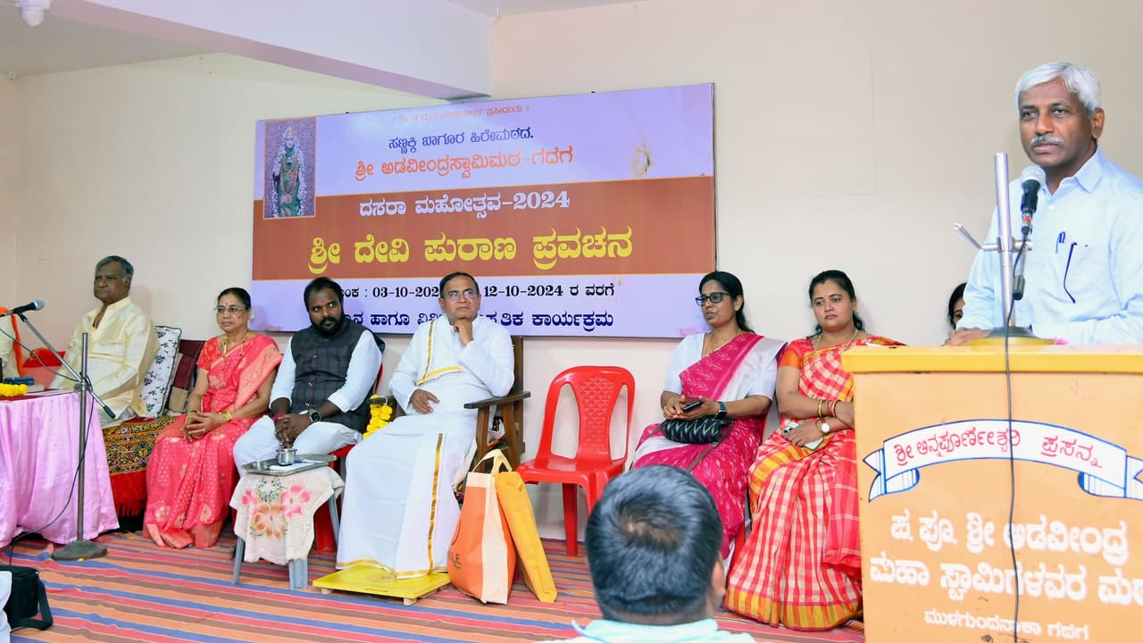 ಅವರು ನಗರದ ಅಡವೀಂದ್ರ ಸ್ವಾಮಿ ಮಠದಲ್ಲಿ ದಸರಾ ಮಹೋತ್ಸವದ ಪುರಾಣ ಪ್ರವಚನ, ಅನ್ನಪೂರ್ಣೆಶ್ವರಿ ದೇವಿ ಜಾತ್ರಾ ಮಹೋತ್ಸವ ಕಾರ್ಯಕ್ರಮದಲ್ಲಿ ಭಾಗವಹಿಸಿ ಮಾತನಾಡಿದ ಅವರು, 9 ದಿನಗಳ ನವರಾತ್ರಿ ದಸರಾ ಹಬ್ಬವು ಘಟಸ್ಥಾಪನೆಯಿಂದ ಪ್ರಾರಂಭವಾಗುತ್ತದೆ, ಮಣ್ಣಿನ ಮಡಿಕೆಯಲ್ಲಿ ಹುತ್ತದ ಮಣ್ಣಿನಲ್ಲಿ ನವಧಾನ್ಯ ಹಾಕಿ ನೀರುಣಿಸಿ 9ನೇ ಬನ್ನಿ ಹಬ್ಬದ ದಿನ ಯಾವ ಕಾಳು ಉತ್ತಮ ಫಲ ನೀಡುತ್ತದೆ ಎಂಬುದನ್ನು ಗಮನಿಸಿ ಪ್ರಸಕ್ತ ವರ್ಷದಲ್ಲಿ ಅಂತಹ ಬೆಳೆ ಬಿತ್ತನೆ ಮಾಡಿದರೆ ಉತ್ತಮ ಫಸಲು ಬರುತ್ತದೆ ಎಂಬುದು ರೈತಾಪಿ ಜನರಲ್ಲಿ ಅಚಲವಾದ ವಿಶ್ವಾಸ, ನಂಬಿಕೆ ಬಹು ವರ್ಷಗಳಿಂದ ಇಟ್ಟುಕೊಂಡು ಬಂದಿದ್ದು ಇಂದಿಗೂ ಮುಂದುವರೆದಿದೆ ಎಂದರು.ಘಟಸ್ಥಾಪನೆಗೆ ಹಾಕಿದ ನವ ಧಾನ್ಯಗಳಲ್ಲಿ ಯಾವ ಬಗೆಯ ಧಾನ್ಯ ಹೆಚ್ಚು ಫಲವತ್ತಾಗಿ ವಿಸ್ತರಿಸಿಕೊಂಡಿದೆಯೂ ಆ ವರ್ಷ ಆ ಧಾನ್ಯದ ಬೆಳೆ ಉತ್ತಮ ಫಸಲು ನೀಡಬಲ್ಲದು ಎಂದು ನಂಬಿರುವ ರೈತರು ಈ ಸಂಕೇತ ಬಳಸಿಕೊಂಡು ಕೃಷಿ ಮಾಡುವರು ಎಂದು ನೈಸರ್ಗಿಕ, ವೈಜ್ಞಾನಿಕ ಕಾರಣ ನೀಡಿದರು.