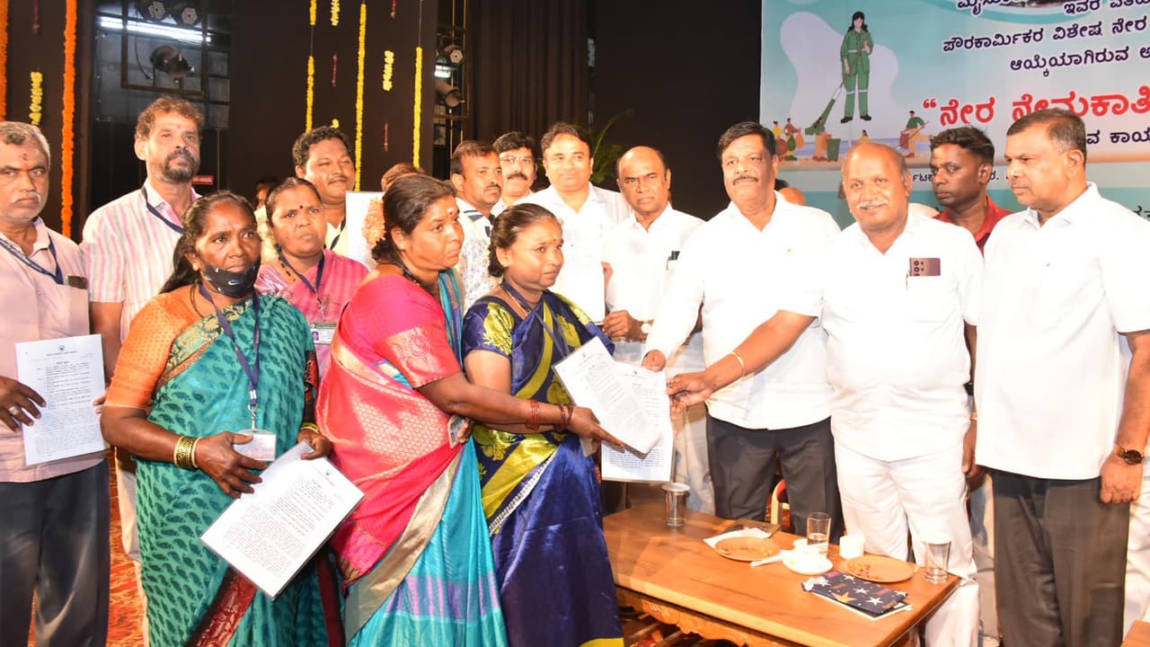 ನಗರದ ಕಲಾಮಂದಿರದಲ್ಲಿ ಮೈಸೂರು ಮಹಾನಗರ ಪಾಲಿಕೆಯು ಶುಕ್ರವಾರ ಆಯೋಜಿಸಿದ್ದ ಪೌರಕಾರ್ಮಿಕರ ವಿಶೇಷ ನೇರ ನೇಮಕಾತಿಯಲ್ಲಿ ಆಯ್ಕೆಯಾಗಿರುವ 173 ಅಭ್ಯರ್ಥಿಗಳಿಗೆ ನೇಮಕಾತಿ ಆದೇಶವನ್ನು ವಿತರಿಸಿ ಮಾತನಾಡಿದ ಅವರು, ತಳ ಸಮುದಾಯದ ಏಳಿಗೆಯೇ ನಮ್ಮ ಸರ್ಕಾರದ ಪ್ರಮುಖ ಧ್ಯೇಯವಾಗಿದೆ ಎಂದು ಹೇಳಿದರು.ಪೌರಕಾರ್ಮಿಕ ಬಂಧುಗಳು ಊರಿನ ಕಸ ಸ್ವಚ್ಛಗೊಳಿಸಿ ನೈರ್ಮಲ್ಯ ಕಾಪಾಡುವಲ್ಲಿ ಪ್ರತಿನಿತ್ಯ ಶ್ರಮವಹಿಸುತ್ತಾರೆ. ಅತ್ಯಂತ ಕಷ್ಟದ, ನಿಕೃಷ್ಟದ ಹಾಗೂ ತ್ಯಾಗದ ಬದುಕು ನಿಮ್ಮದಾಗಿದೆ. ನಿಮ್ಮಿಂದ ಉಳಿದವರು ಸುಖದಿಂದ ಬದುಕುತ್ತಿದ್ದಾರೆ. ನೀವು ಮಾತ್ರ ಕಷ್ಟದ ಜೀವನವನ್ನೆ ನಡೆಸುತ್ತಾರೆ. ಈ ಪರಿಸ್ಥಿತಿ ಸುಧಾರಣೆಗೆ ಸರ್ಕಾರದಿಂದ ಕ್ರಮ ವಹಿಸಲಾಗುವುದು ಎಂದು ಅವರು ತಿಳಿಸಿದರು.
