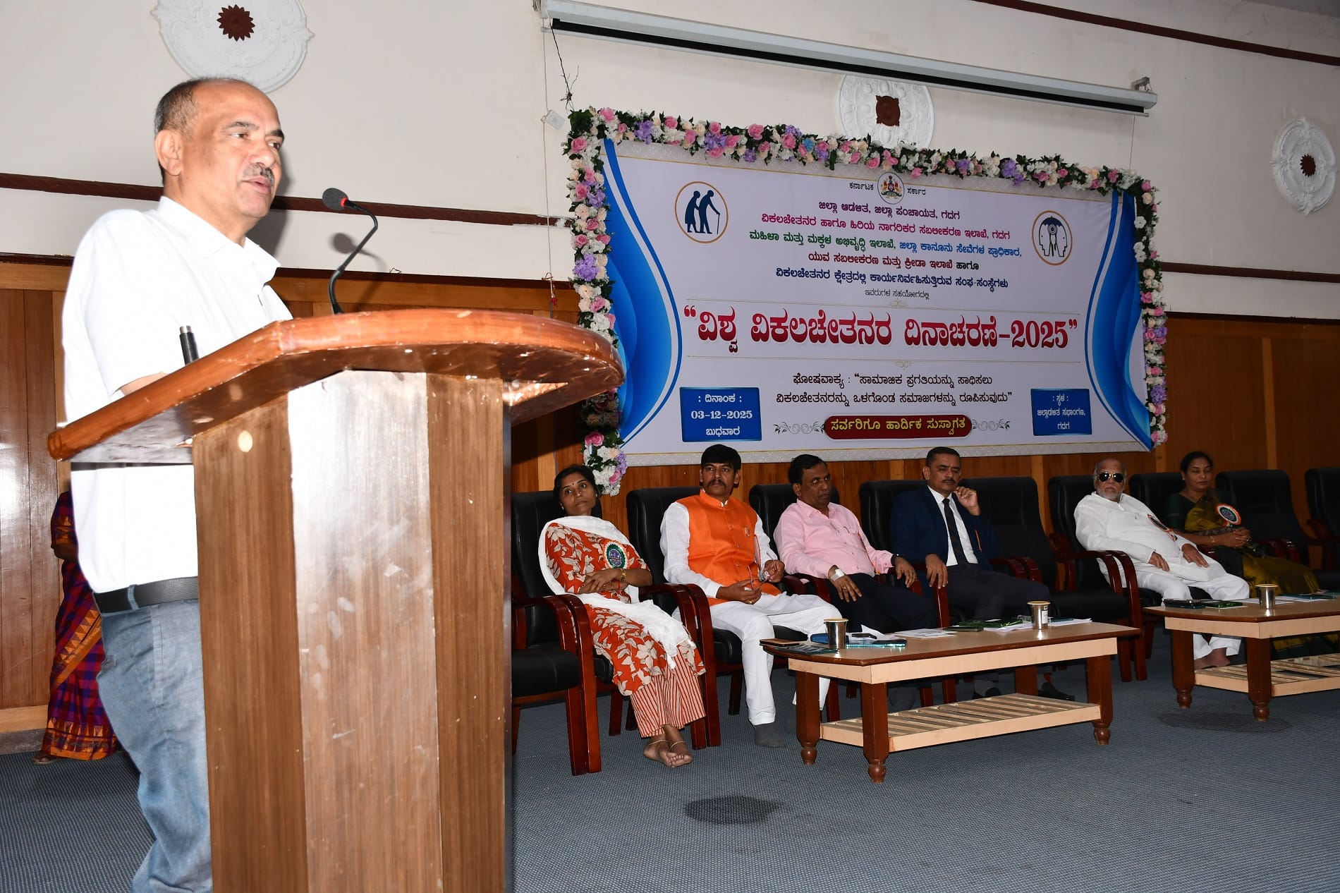 ಗದಗ: ಅಂಗವಿಕಲರ ಪ್ರತಿಭೆಯನ್ನು ಗುರುತಿಸಿ ಪ್ರೋತ್ಸಾಹಿಸಬೇಕು. ಅಂಗವಿಕಲರಿಗೆ ಅನುಕಂಪ ಬೇಕಾಗಿಲ್ಲ. ಅವರಲ್ಲಿ ಮನೋಸ್ಥೈರ್ಯ ತುಂಬಿ ಮುನ್ನಡೆಸಬೇಕು ಎಂದು ಜಿಲ್ಲಾಧಿಕಾರಿ ಸಿ.ಎನ್. ಶ್ರೀಧರ್ ತಿಳಿಸಿದರು.ನಗರದ ಜಿಲ್ಲಾಡಳಿತ ಭವನದ ಆಡಿಟೋರಿಯಂ ಹಾಲ್ನಲ್ಲಿ ಬುಧವಾರ ಜಿಲ್ಲಾಡಳಿತ, ಜಿಪಂ, ವಿಕಲಚೇತನರ ಹಾಗೂ ಹಿರಿಯ ನಾಗರಿಕರ ಸಬಲೀಕರಣ ಇಲಾಖೆ, ಮಹಿಳಾ ಮತ್ತು ಮಕ್ಕಳ ಅಭಿವೃದ್ಧಿ ಇಲಾಖೆ, ಜಿಲ್ಲಾ ಕಾನೂನು ಸೇವೆಗಳ ಪ್ರಾಧಿಕಾರ, ಯುವ ಸಬಲೀಕರಣ ಮತ್ತು ಕ್ರೀಡಾ ಇಲಾಖೆ ಹಾಗೂ ಅಂಗವಿಕಲರ ಕ್ಷೇತ್ರದಲ್ಲಿ ಕಾರ್ಯ ನಿರ್ವಹಿಸುತ್ತಿರುವ ಸ್ವಯಂ ಸೇವಾ ಸಂಸ್ಥೆ ಮತ್ತು ಸಂಘಗಳ ಸಹಯೋಗದಲ್ಲಿ ಸಾಮಾಜಿಕ ಪ್ರಗತಿಯನ್ನು ಸಾಧಿಸಲು ಅಂಗವಿಕಲರ ಒಳಗೊಂಡ ಸಮಾಜಗಳನ್ನು ರೂಪಿಸುವುದು ಎಂಬ ಘೋಷವಾಕ್ಯದಡಿ ನಡೆದ ವಿಶ್ವ ವಿಕಲಚೇತನರ ದಿನಾಚರಣೆ ಕಾರ್ಯಕ್ರಮ ಉದ್ಘಾಟಿಸಿ ಮಾತನಾಡಿದರು.ಅಂಗವಿಕಲರು ಸ್ವಾವಲಂಬಿಯಾಗಿ ಬದುಕು ಸಾಗಿಸಲು ಹಾಗೂ ಅವರಲ್ಲಿ ಅಡಗಿರುವ ಪ್ರತಿಭೆಯನ್ನು ಗುರುತಿಸಿ ಪ್ರೋತ್ಸಾಹಿಸುವ ಕೆಲಸವಾಗಬೇಕು. ಜಿಲ್ಲೆಯ ಅಂಗವಿಕಲರು ವಿವಿಧ ಕ್ಷೇತ್ರಗಳಲ್ಲಿ ಸಾಧನೆ ಮಾಡಿ ಅಂತಾರಾಷ್ಟ್ರೀಯ ಮಟ್ಟದಲ್ಲಿಯೂ ಜಿಲ್ಲೆಗೆ ಕೀರ್ತಿ ತಂದಿದ್ದಾರೆ. ಸಮಾಜದಲ್ಲಿ ಅಂಗವಿಕಲರನ್ನು ಗೌರವದಿಂದ ಕಾಣುವುದು ನಮ್ಮೆಲ್ಲರ ಜವಾಬ್ದಾರಿಯಾಗಿದೆ. ದೇಶದಲ್ಲಿನ ಕ್ರೀಡಾಪಟುಗಳಲ್ಲಿ ಅಂಗವಿಕಲ ಕ್ರೀಡಾಪಟುಗಳು ವಿಶ್ವಮಟ್ಟದಲ್ಲಿ ಗುರುತಿಸಿಕೊಂಡು ಯಾವುದರಲ್ಲೂ ತಾವು ಕಡಿಮೆ ಎಲ್ಲ ಎಂದು ಸಾಬೀತುಪಡಿಸಿದ್ದಾರೆ. ದೇವರು ಕೊಟ್ಟ ಅತೀಂದ್ರಿಯ ಶಕ್ತಿಯನ್ನು ಉಪಯೋಗಿಸಿಕೊಂಡು ಸಾಧನೆ ಮಾಡಿದ್ದಾರೆ. ದೇವರು ಕೊಟ್ಟ ಅವಕಾಶಗಳನ್ನು ಸದುಪಯೋಗಪಡಿಸಿಕೊಂಡು ಸ್ವಾವಲಂಬಿಯಾಗಿ ಬದುಕು ನಿರ್ವಹಿಸುವುದು ಸಾರ್ಥಕ ಬದುಕೆನಿಸುತ್ತದೆ ಎಂದರು.