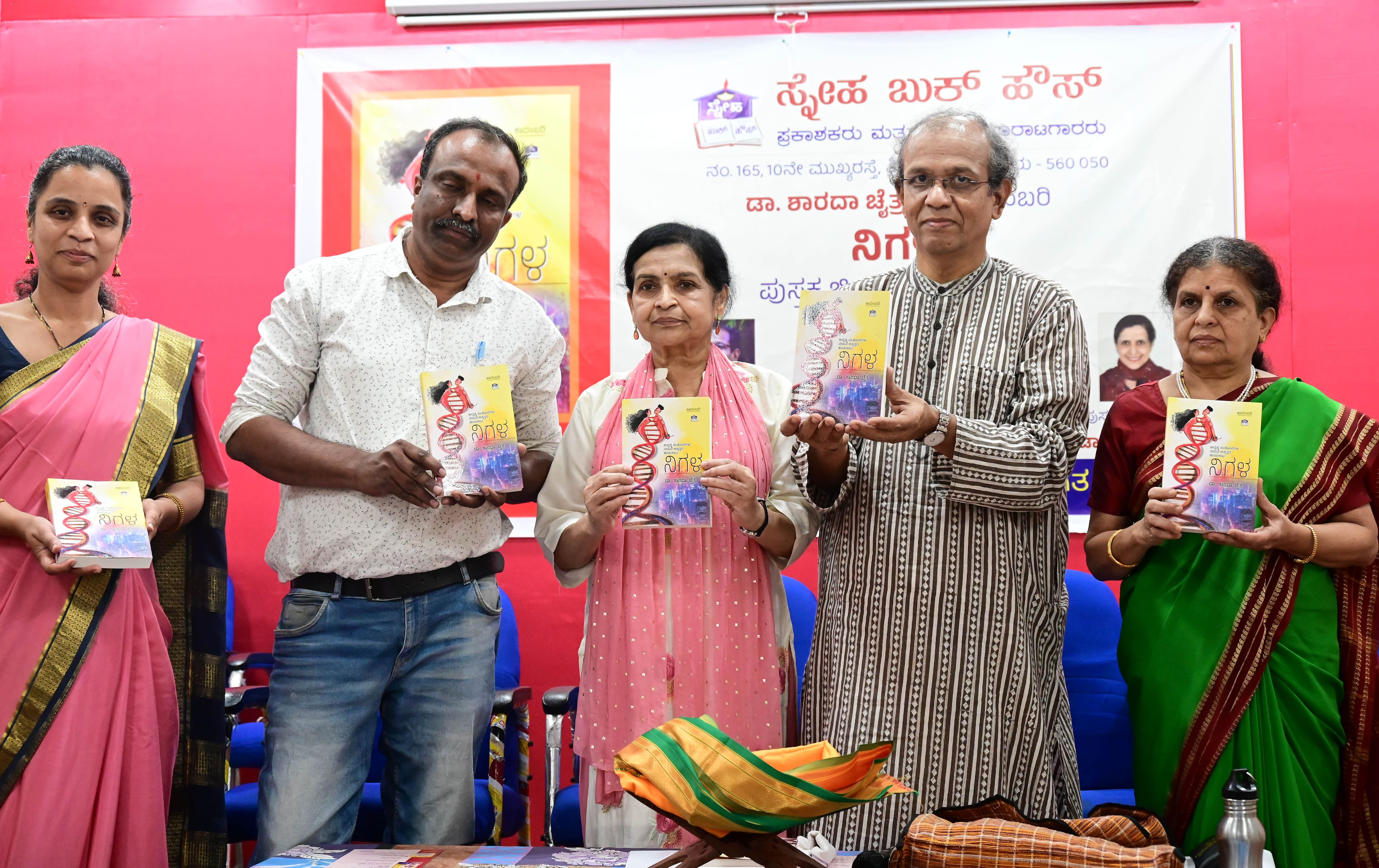 ಶನಿವಾರ ನಗರದಲ್ಲಿ ನಡೆದ ಕಾರ್ಯಕ್ರಮದಲ್ಲಿ ವಿದ್ವಾಂಸ ಶತಾವಧಾನಿ ಡಾ.ಆರ್. ಗಣೇಶ ಅವರು ನಿಗಳ ಕಾದಂಬರಿಯನ್ನು ಬಿಡುಗಡೆ ಮಾಡಿದರು. ಲೇಖಕಿ ಮೀರಾಬಾಯಿ ಫಡ್ಕೆ, ಪುಸ್ತಕದ ಲೇಖಕಿ ಡಾ. ಶಾರದಾ ಚೈತ್ರ, ಸ್ನೇಹ ಬುಕ್ ಹೌಸ್ನ ಕೆ.ಬಿ. ಪರಶಿವಪ್ಪ ಮತ್ತಿತರರು ಇದ್ದರು.