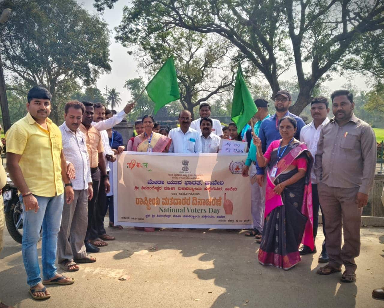 ಸ್ಥಳೀಯ ಹುಕ್ಕೇರಿಮಠದ ಶ್ರೀ ಶಿವಲಿಂಗೇಶ್ವರ ಮಹಿಳಾ ಮಹಾವಿದ್ಯಾಲಯದಲ್ಲಿ ಮೇರಾ ಯುವ ಭಾರತ ಹಾವೇರಿ ಮತ್ತು ಶ್ರೀ ಶಿವಲಿಂಗೇಶ್ವರ ಮಹಿಳಾ ಮಹಾವಿದ್ಯಾಲಯ ಹಾಗೂ ಐ.ಕ್ಯೂ.ಎ.ಸಿ ಮತ್ತು ರಾಷ್ಟ್ರೀಯ ಸೇವಾ ಯೋಜನೆ ಘಟಕ, ಯುಥ್ ರೆಡ್ ಕ್ರಾಸ್ ಆಶ್ರಯದಲ್ಲಿ ಏರ್ಪಡಿಸಿದ್ದ ರಾಷ್ಟ್ರೀಯ ಮತದಾರರ ದಿನಾಚರಣೆ ಕಾರ್ಯಕ್ರಮ ಉದ್ಘಾಟಿಸಿ ಮಾತನಾಡಿ, ನಾವು ಪ್ರಬುದ್ಧ ಮತದಾರರು ಆದಾಗ ಮಾತ್ರ ಪ್ರಜಾಪ್ರಭುತ್ವದ ಉಳಿವು ಸಾಧ್ಯ ಎಂದರು.ಅಧ್ಯಕ್ಷತೆ ವಹಿಸಿದ್ದ ಶ್ರೀ ಶಿವಲಿಂಗೇಶ್ವರ ಮಹಿಳಾ ಮಹಾವಿದ್ಯಾಲಯ ಪ್ರಾಚಾರ್ಯೆ ಸವಿತಾ ಹಿರೇಮಠ ಮಾತನಾಡಿ, ನಮ್ಮ ಮತ, ನಮ್ಮ ಹಕ್ಕು ಅದನ್ನು ನಾವೆಲ್ಲ ಅತ್ಯಂತ ಆಲೋಚನಾಯುಕ್ತವಾಗಿ ಚಲಾಯಿಸಬೇಕು. ಯಾರು ಇದುವರೆಗೂ ಮತದಾರರ ಪಟ್ಟಿಯಲ್ಲಿ ನೋಂದಾಯಿಸಿಲ್ಲವೋ ಅವರು ಮತದಾರರ ಪಟ್ಟಿಯಲ್ಲಿ ಹೆಸರು ನೋಂದಾಯಿಸಿಕೊಳ್ಳಬೇಕು ಎಂದರು. ಸಾಮಾಜಿಕ ಕಾರ್ಯಕರ್ತ ಡಾ. ಸಂತೋಷ ಆಲದಕಟ್ಟಿ ಮಾತನಾಡಿ, ಯುವ ಜನಾಂಗಕ್ಕೆ ಮತದಾನದ ಜಾಗೃತಿಯ ಅವಶ್ಯಕತೆ ಇದೆ. ಯಾವ ಯುವ ಜನಾಂಗವು ದೇಶದ ಪ್ರಗತಿ ಮತ್ತು ವ್ಯವಸ್ಥೆಯ ತಳಹದಿಯಾಗಿದೆಯೋ ಅಂತಹ ಯುವಕ, ಯುವತಿಯರಿಗೆ ಜಾಗೃತಿ ಅಗತ್ಯವಿದೆ ಎಂದರು. ಮೇರಾ ಯುವ ಭಾರತ ಜಿಲ್ಲಾ ಅಧಿಕಾರಿ ಭುಕ್ಯಾ ಸಂಜೀವ ಪ್ರಾಸ್ತಾವಿಕವಾಗಿ ಮಾತನಾಡಿದರು. ಕಾರ್ಯಕ್ರಮದ ಅಂಗವಾಗಿ ಪುರಸಿದ್ದೇಶ್ವರ ದೇವಸ್ಥಾನದಿಂದ ನಗರದ ವಿವಿಧ ಬಡಾವಣೆಯಲ್ಲಿ ಜಾಥಾ ಮೂಲಕ ಸಂಚರಿಸಿ ಮತದಾನದ ಜಾಗೃತಿ ಮೂಡಿಸಲಾಯಿತು. ಕಾರ್ಯಕ್ರಮದಲ್ಲಿ ಮತದಾರರ ಪ್ರತಿಜ್ಞಾವಿಧಿ ಸ್ವೀಕರಿಸಿದರು. ಇದೇ ಸಂದರ್ಭದಲ್ಲಿ ಹೊಸ ಮತದಾನ ಮಾಡುವ ಯುವತಿಯರಿಗೆ ಸನ್ಮಾನಿಸಲಾಯಿತು. ಕಾರ್ಯಕ್ರಮದಲ್ಲಿ ಒಕ್ಕೂಟದ ಕಾರ್ಯಾಧ್ಯಕ್ಷ ಎಸ್.ಎ. ಸೈಯದ್ ಮತ್ತು ಮಹಾವಿದ್ಯಾಲಯದ ಬೋಧಕ ಮತ್ತು ಬೋಧಕೇತರ ಸಿಬ್ಬಂದಿ, ವಿದ್ಯಾರ್ಥಿನಿಯರು ಇದ್ದರು. ನೇತ್ರಾ ತಳವಾರ ಪ್ರಾರ್ಥಿಸಿದರು. ಪ್ರಾಚಾರ್ಯ ಎಸ್.ವಿ. ಹಿರೇಮಠ ಸ್ವಾಗತಿಸಿದರು. ಚಂದ್ರಕಲಾ ನಾಗನೂರ ವಂದಿಸಿದರು. ಎನ್.ಎಸ್.ಎಸ್. ಕಾರ್ಯಕ್ರಮಾಧಿಕಾರಿ ಎಂ.ಎಂ. ಮಡಿವಾಳರ ನಿರೂಪಿಸಿದರು.