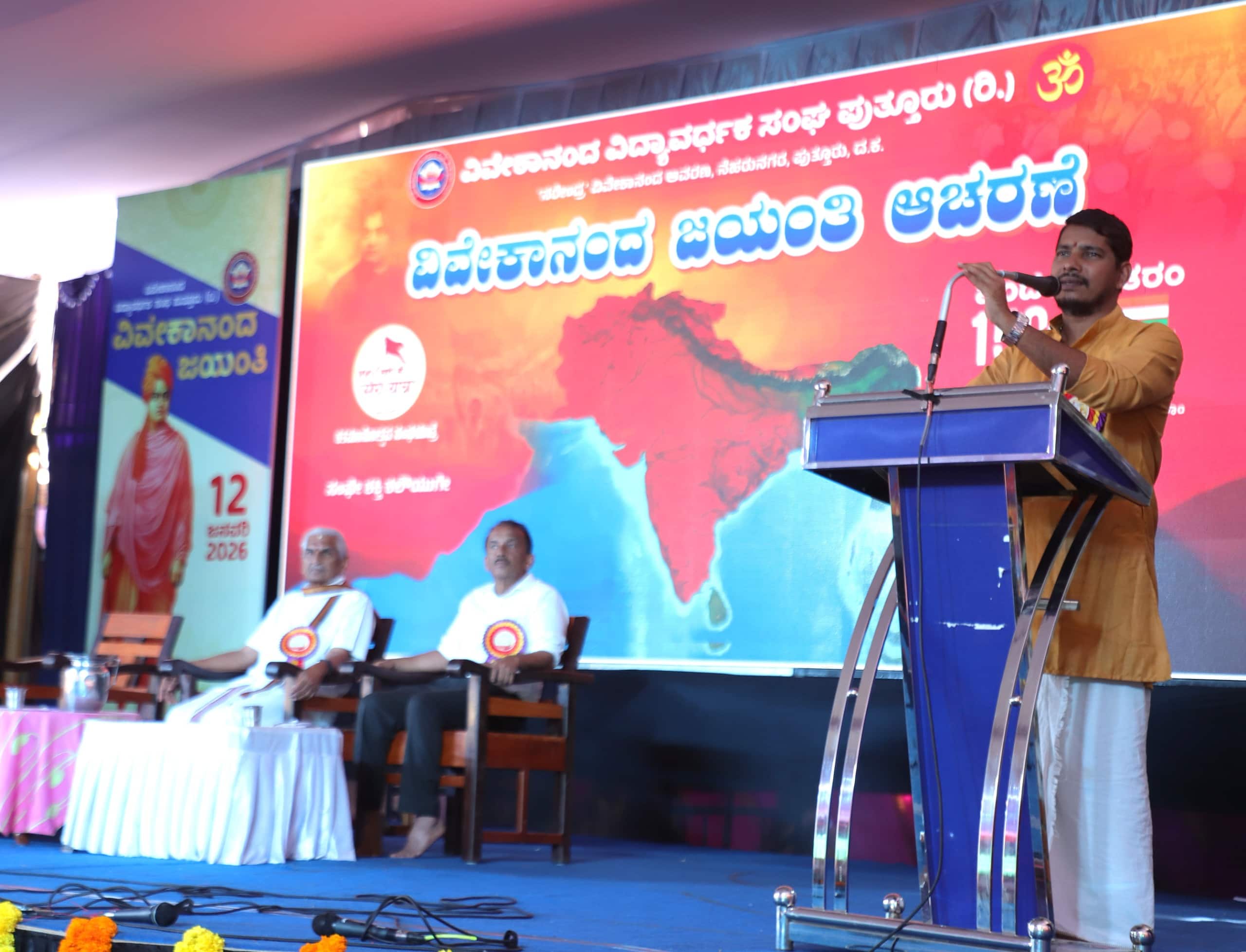 ಭಾರತ ಯಾವತ್ತಿಗೂ ನಾಶಗೊಳ್ಳುವುದಿಲ್ಲ ಎಂಬ ಮೃತ್ಯುಂಜಯ ತತ್ತ್ವವನ್ನು ಜಗತ್ತಿಗೆ ಪರಿಚಯಿಸಿದೆ. ಇವತ್ತಿಗೂ ಭಾರತದ ಅಮರಗಾಥೆ ಸೋಮನಾಥ ಮಂದಿರ ನಮ್ಮೆಲ್ಲರ ಕಣ್ಣೆದುರಿದೆ. ರಾಷ್ಟ್ರೀಯ ಸ್ವಯಂಸೇವಕ ಸಂಘ ನೂರು ವರ್ಷ ಪೂರೈಸಿದೆ. ವಂದೇ ಮಾತರಂ ಗೀತೆ ನೂರೈವತ್ತು ವರ್ಷಗಳಿಂದ ಮೊಳಗುತ್ತಿದೆ. ಇದು ಭಾರತದ ಜೀವಂತಿಕೆಗೆ ಸಾಕ್ಷಿಯಾಗಿದೆ.ಸ್ವಾತಂತ್ರ್ಯಪೂರ್ವದಲ್ಲಿ ಖುದಿರಾಮ್ ಬೋಸ್, ಪ್ರೀತಿಲತಾ ವಡ್ಡೇದಾರ್, ಬಿಪಿನ್ ಚಂದ್ರಪಾಲ್ ಮೊದಲಾದ ಕಾಂತ್ರಿಕಾರಿ ವೀರರು ರಾಷ್ಟ್ರದ ಮುಕ್ತಿಗಾಗಿ ಜೀವ ಬಲಿದಾನ ಮಾಡಿದ್ದಾರೆ. ಇವರಿಗೆಲ್ಲರಿಗೂ ಸ್ವಾಮಿ ವಿವೇಕಾನಂದರು ಪ್ರೇರಣೆಯಾಗಿದ್ದರು. ವಿವೇಕಾನಂದರ ಸಾಹಿತ್ಯ ಭಾರತೀಯರಿಗೆ ಸ್ಫೂರ್ತಿಯ ಮೂಲವಾಗಿದೆ ಎಂದು ಹೇಳಿದರು.ಕಾರ್ಯಕ್ರಮದ ಅಧ್ಯಕ್ಷತೆ ವಹಿಸಿದ್ದ ವಿವೇಕಾನಂದ ವಿದ್ಯಾವರ್ಧಕ ಸಂಘದ ಅಧ್ಯಕ್ಷ ಡಾ. ಕಲ್ಲಡ್ಕ ಪ್ರಭಾಕರ ಭಟ್ ಮಾತನಾಡಿ, ಜಗತ್ತು ಗೆಲ್ಲಲ್ಲು ಅನೇಕ ಮಂದಿ ಪ್ರಯತ್ನಿಸಿದ್ದಾರೆ. ಆದರೆ ಒಂದು ಬಿಂದು ರಕ್ತ ನೆಲಕ್ಕೆ ಚೆಲ್ಲದೆ, ರಕ್ತಕ್ಕೆ ರಕ್ತ ಜೋಡಿಸಿದವರು ಸ್ವಾಮಿ ವಿವೇಕಾನಂದರು. ದೇಶಭಕ್ತಿಯೆಂಬ ವ್ರತದಿಂದ ಭಾರತದ ಆಧ್ಯಾತ್ಮಿಕ ಚಿಂತನೆ ವಿಶ್ವದೆಲ್ಲೆಡೆ ಪಸರಿಸಿದರು. ಮಾತ್ರವಲ್ಲದೆ, ಪ್ರತಿಯೊಬ್ಬ ವ್ಯಕ್ತಿ ತನ್ನೊಳಗಿನ ತನ್ನನ್ನು ಜಾಗೃತಗೊಳಿಸಲು ವಿವೇಕಾನಂದರೇ ಆದರ್ಶವಾಗಿದ್ದಾರೆ ಎಂದರು. ಬ್ರಿಟೀಷರ ಬಂಧನವನ್ನು ತಪ್ಪಿಸಲು ಭಾರತದಲ್ಲಿ ಸಾವಿರಾರು ಹೋರಾಟಗಾರರು ಹುಟ್ಟಿದರು. ದೇಶಕ್ಕಾಗಿ ಹೋರಾಡಿ, ತಮ್ಮ ಉಸಿರನ್ನು ಅರ್ಪಣೆ ಮಾಡಲು ವಂದೇ ಮಾತರಂ ಹಾಡು ಅವರಿಗೆಲ್ಲ ಪ್ರೇರಣೆಯಾಯಿತು. ಆದರೆ ಆ ಹಾಡಿಗೆ ಭಾವ ತುಂಬಲು, ವಿವೇಕಾನಂದರ ನುಡಿಗಳೇ ಮೂಲವಾಗಿದ್ದವು. ಅಂದಿನಿಂದ ಇಂದಿನವರೆಗೆ ಸಮಾಜದಲ್ಲಿ ವಿವೇಕಾನಂದರ ತತ್ತ್ವಗಳು ಉಸಿರಾಡುತ್ತಿದೆ ಎಂದು ಹೇಳಿದರು.ಮೊಳಗಿತು ವಂದೇ ಮಾತರಂವಂದೇ ಮಾತರಂ ಗೀತೆಯ 150ನೇ ವರ್ಷಾಚರಣೆಯ ಪ್ರಯುಕ್ತ ಸುಮಾರು 10 ಸಾವಿರ ವಿದ್ಯಾರ್ಥಿಗಳು ಹಾಗೂ ಗ್ರಾಮಾಂತರ ಶಾಲೆಗಳ ಸುಮಾರು 10 ಸಾವಿರ ವಿದ್ಯಾರ್ಥಿಗಳು ಸೇರಿದಂತೆ ಒಟ್ಟು 20 ಸಾವಿರ ವಿದ್ಯಾರ್ಥಿಗಳು ಏಕ ಕಾಲದಲ್ಲಿ ವಂದೇ ಮಾತರಂ ಮತ್ತು ದೇಶ ಭಕ್ತಿಗೀತೆಗಳ ಸಮೂಹ ಗಾಯನದಲ್ಲಿ ಭಾಗಿಗಳಾದರು.