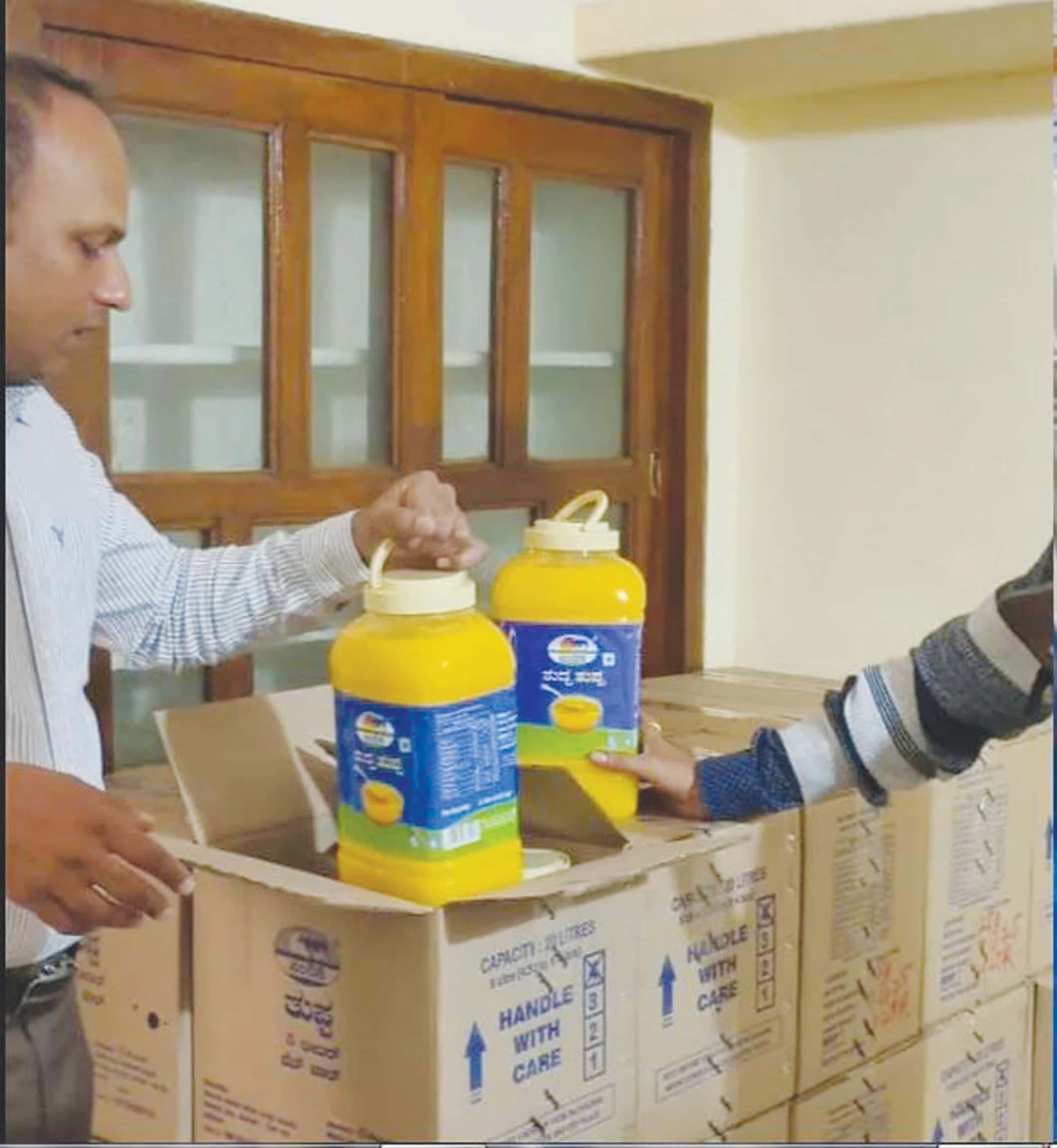 ಚಾಮರಾಜಪೇಟೆಯಲ್ಲಿ ಆರೋಪಿ ಮಹೇಂದ್ರ ಹೊಂದಿದ್ದ ನಂದಿನಿ ಪಾರ್ಲರ್ನಲ್ಲಿ ನಕಲಿ ತುಪ್ಪ ಮಾರಾಟ ಮಾಡುತ್ತಿರುವ ಬಗ್ಗೆ ಖಚಿತ ಮಾಹಿತಿ ಪಡೆದು ಶುಕ್ರವಾರ ಸಿಸಿಬಿ ಹಾಗೂ ಕೆಎಂಎಫ್ ಜಾಗೃತ ದಳ ಅಧಿಕಾರಿಗಳು ಜಂಟಿ ಕಾರ್ಯಾಚರಣೆ ನಡೆಸಿದ ವೇಳೆ ಜಾಲ ಬಯಲಾಯಿತು ಎಂದು ನಗರ ಪೊಲೀಸ್ ಆಯುಕ್ತ ಸೀಮಂತ್ ಕುಮಾರ್ ಸಿಂಗ್ ತಿಳಿಸಿದ್ದಾರೆ.ಹೇಗೆ ನಕಲಿ ತುಪ್ಪ ತಯಾರಿಕೆ?: