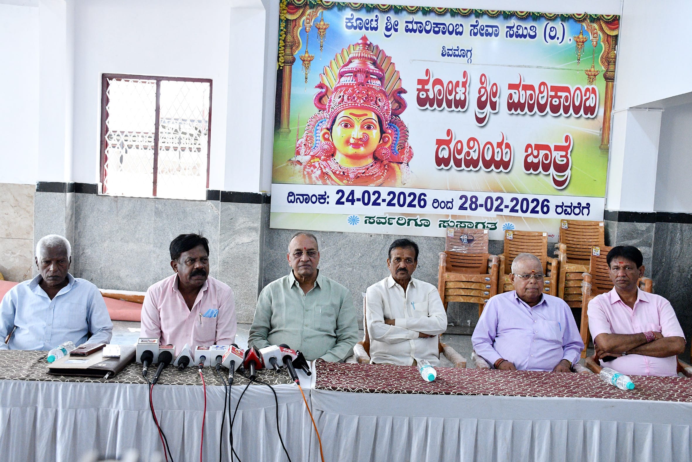 ಇತಿಹಾಸ ಮತ್ತು ಪುರಾಣ ಪ್ರಸಿದ್ಧ ಶಿವಮೊಗ್ಗದ ಕೋಟೆ ಶ್ರೀ ಮಾರಿಕಾಂಬ ಜಾತ್ರೆ ಮಂಗಳವಾರದಿಂದ ಆರಂಭಗೊಳ್ಳುತ್ತಿದ್ದು, ಈಗಾಗಲೇ ಎಲ್ಲಾ ಸಿದ್ಧತೆಗಳು ಪೂರ್ಣಹಂತ ತಲುಪಿದೆ. ಎಲ್ಲರೂ ಸೇರಿ ಒಟ್ಟಾಗಿ ವಿಜೃಂಭಣೆಯಿಂದ ಹಬ್ಬವನ್ನು ಆಚರಿಸುವಂತೆ ಶ್ರೀ ಕೋಟೆ ಮಾರಿಕಾಂಬ ದೇವಸ್ಥಾನ ಸಮಿತಿಯ ಅಧ್ಯಕ್ಷ ಎಸ್.ಕೆ.ಮರಿಯಪ್ಪ ಕರೆ ನೀಡಿದರು.ನಗರದ ಮಾರಿಕಾಂಬ ದೇವಸ್ಥಾನದ ಸಭಾಂಗಣದಲ್ಲಿ ಸೋಮವಾರ ಏರ್ಪಡಿಸಿದ್ದ ಮಾಧ್ಯಮಗೋಷ್ಠಿಯಲ್ಲಿ ಮಾತನಾಡಿ, ಕೋಟೆ ಮಾರಿಕಾಂಬ ದೇವಿಯ ಜಾತ್ರೆಗೆ ಸರ್ವಸಿದ್ಧತೆಗಳು ಪೂರ್ಣಹಂತ ತಲುಪಿವೆ. ಮಂಗಳವಾರ ಬೆಳಿಗ್ಗೆ 5 ಗಂಟೆಗೆ ಗಾಂಧಿಬಜಾರಿನ ತವರು ಮನೆಯಲ್ಲಿ ಸಾಪ್ರದಾಯಕ ಪೂಜೆಗಳೊಂದಿಗೆ ಜಾತ್ರೆಗೆ ಚಾಲನೆ ನೀಡಲಾಗುವುದು. ಅಂದು ರಾತ್ರಿ ಮೆರವಣಿಗೆಯ ಮೂಲಕ ಮಾರಿ ಗದ್ದುಗೆಗೆ ಅಮ್ಮನವರನ್ನು ಪ್ರತಿಷ್ಠಾಪಿಸಲಾಗುವುದು. ಬುಧವಾರ ಬೆಳಗ್ಗೆ 5 ಗಂಟೆಯಿಂದಲೇ ಸಾರ್ವಜನಿಕರ ದರ್ಶನಕ್ಕೆ ಅವಕಾಶ ಕಲ್ಪಿಸಲಾಗಿದೆ ಎಂದರು.