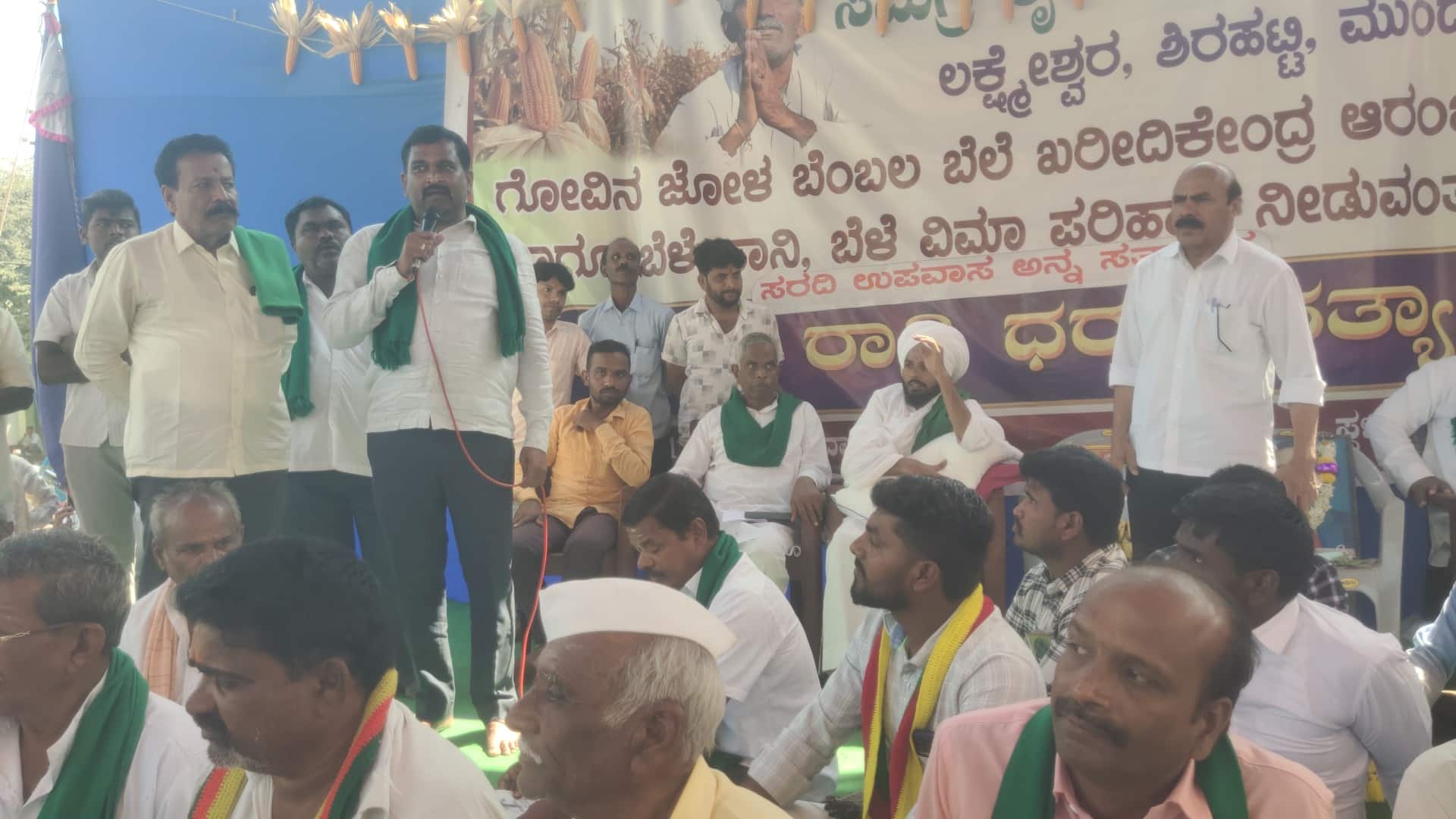 ಉಪವಿಭಾಗಾಧಿಕಾರಿ ಗಂಗಪ್ಪ, ಡಿವೈಎಸ್ಪಿ ಮುರ್ತುಜಾ ಖಾಜಿ, ತಹಸೀಲ್ದಾರ್ ಕೆ. ರಾಘವೇಂದ್ರ, ಸಿಪಿಐ ಡಿ.ವಿ. ನೇಮಗೌಡ ಇದ್ದರು.ನಾಳೆ ಲಕ್ಷ್ಮೇಶ್ವರ ಬಂದ್ಗೆ ಕರೆಗೋವಿನಜೋಳ ಖರೀದಿ ಕೇಂದ್ರ ತೆರೆಯುವ ಕುರಿತು ಸರ್ಕಾರ ಅಂತಿಮ ನಿರ್ಧಾರ ಪ್ರಕಟಿಸದ ಹಿನ್ನೆಲೆ ಗುರುವಾರ ಲಕ್ಷ್ಮೇಶ್ವರ ಬಂದ್ ಮಾಡಿ ಹೋರಾಟ ತೀವ್ರಗೊಳಿಸಲಾಗುವುದು ಎಂದು ಹೋರಾಟದ ನೇತೃತ್ವ ವಹಿಸಿರುವ ಮಂಜುನಾಥ ಮಾಗಡಿ, ನಾಗರಾಜ ಚಿಂಚಲಿ ತಿಳಿಸಿದರು. ಸಾರ್ವಜನಿಕರು ಬಂದ್ಗೆ ಸಹಕರಿಸಬೇಕು ಎಂದು ಮನವಿ ಮಾಡಿದರು.