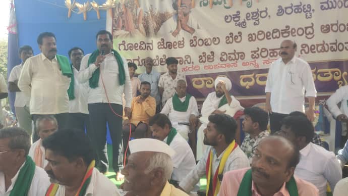 ಲಕ್ಷ್ಮೇಶ್ವರ: ಬೆಂಬಲ ಬೆಲೆಯಲ್ಲಿ ಗೋವಿನಜೋಳ ಖರೀದಿಸುವಂತೆ ಆಗ್ರಹಿಸಿ ಪಟ್ಟಣದ ಶಿಗ್ಲಿ ಕ್ರಾಸ್ ಹತ್ತಿರ ನಡೆಸುತ್ತಿರುವ ಪ್ರತಿಭಟನೆ ಮಂಗಳವಾರ 4ನೇ ದಿನಕ್ಕೆ ಕಾಲಿಟ್ಟಿದೆ. ಉಪವಾಸ ಸತ್ಯಾಗ್ರಹ ನಡೆಸುತ್ತಿದ್ದ ರೈತರೊಬ್ಬರು ಅಸ್ವಸ್ಥರಾಗಿದ್ದು, ಆಸ್ಪತ್ರೆಗೆ ದಾಖಲಿಸಲಾಗಿದೆ.