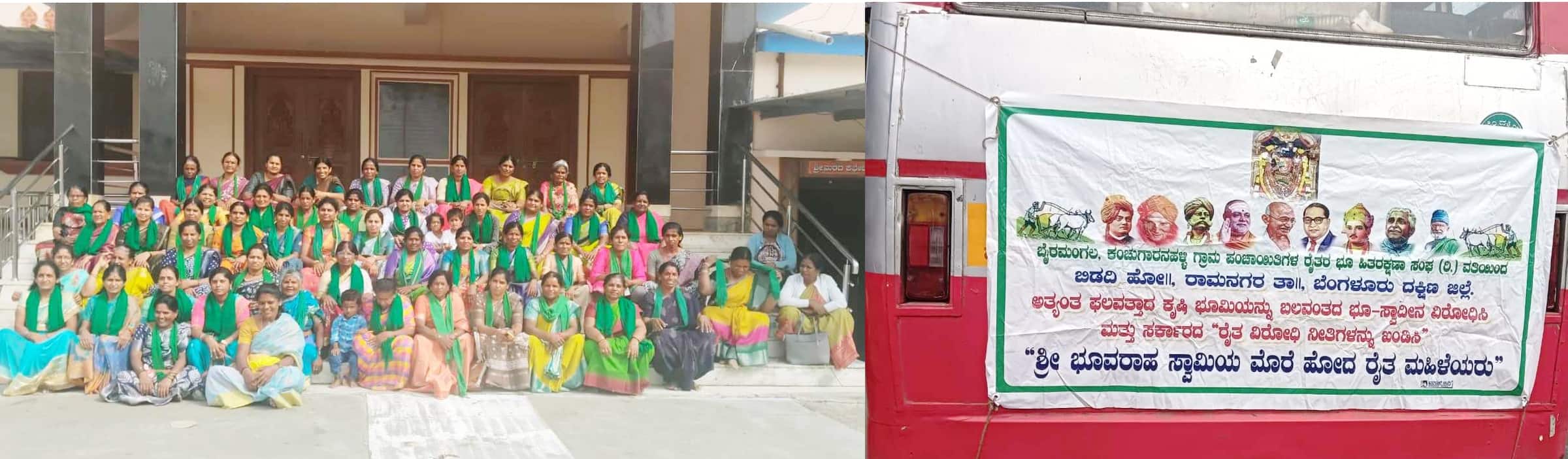 ಕಳೆದ ನಾಲ್ಕೈದು ತಿಂಗಳಿಂದ ಬೈರಮಂಗಲ ವೃತ್ತದಲ್ಲಿ ನೂರಾರು ರೈತರು ಅನಿರ್ದಿಷ್ಟಾವಧಿ ಧರಣಿ ನಡೆಸುತ್ತಿದ್ದಾರೆ. ಇಲ್ಲಿವರೆಗೆ ರಾಜ್ಯ ಸರ್ಕಾರವಾಗಲಿ ಅಥವಾ ಸರ್ಕಾರದ ಪ್ರತಿನಿಧಿಗಳಾಗಲಿ ಧರಣಿ ಸ್ಥಳಕ್ಕೆ ಭೇಟಿ ನೀಡಿ ಅಹವಾಲು ಆಲಿಸುವ ಕೆಲಸ ಮಾಡಿಲ್ಲ. ಈ ಮಧ್ಯೆ ಜಿಲ್ಲಾಡಳಿತ ಭೂಮಾಲೀಕರ ಅಭಿಪ್ರಾಯ ಪಡೆಯದೆ ಟೌನ್ ಶಿಪ್ ಯೋಜನೆಗೆ ಸ್ವಾಧೀನ ಪಡಿಸಿಕೊಳ್ಳಲಾಗುವ ಭೂಮಿಗೆ ದರ ಕೂಡ ನಿಗದಿ ಮಾಡಿದೆ. ಇದರಿಂದ ಮತ್ತಷ್ಟು ಕೆರಳಿರುವ ರೈತರು ಜನಪ್ರತಿನಿಧಿಗಳಿಗೆ ಘೇರಾವ್ ಹಾಕಿ ಆಕ್ರೋಶ ವ್ಯಕ್ತಪಡಿಸುತ್ತಿದ್ದಾರೆ.ಇಷ್ಟೆಲ್ಲ ಆದರೂ ನ್ಯಾಯ ಸಿಗದ ಕಾರಣ ರೈತರು ಪ್ರತಿಭಟನೆ ನಡೆಸುವ ಜೊತೆಗೆ ದೇವರಲ್ಲಿ ಹರಕೆ ಹೊತ್ತಿಕೊಳ್ಳುತ್ತಿದ್ದಾರೆ. ಇಷ್ಟಾರ್ಥ ನೆರವೇರುವ ನಂಬಿಕೆಯಿಂದ ಬೈರಮಂಗಲ-ಕಂಚುಗಾರನಹಳ್ಳಿ ಗ್ರಾಮ ಪಂಚಾಯಿ ವ್ಯಾಪ್ತಿಯ ರೈತ ಮಹಿಳೆಯರು ಕೆ.ಆರ್. ಪೇಟೆ ತಾಲೂಕಿನಲ್ಲಿರುವ ಭೂ ವರಹ ಸ್ವಾಮಿ ದೇವಾಲಯಕ್ಕೆ ಭೇಟಿ ನೀಡಿ ವಿಶೇಷ ಪೂಜೆ ಸಲ್ಲಿಸಿ ವಾಪಸ್ಸಾಗಿದ್ದಾರೆ.