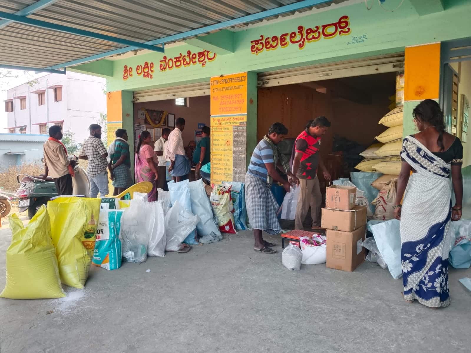 ೧೧ ಬಂಗಾರಪೇಟೆ: ತಾಲ್ಲೂಕಿನ ತೊಪ್ಪನಹಳ್ಳಿ ಗ್ರಾಮದ ಶ್ರೀ ಲಕ್ಷಿö್ಮ ವೆಂಕಟೆಶ್ವರ ಫರ್ಟಿಲೈಸರ್ ಅಂಗಡಿಯಲ್ಲಿ ಯೂರಿಯಾ ಖರೀದಿಗೆ ರೈತರು ನಿಂತಿರುವುದು.