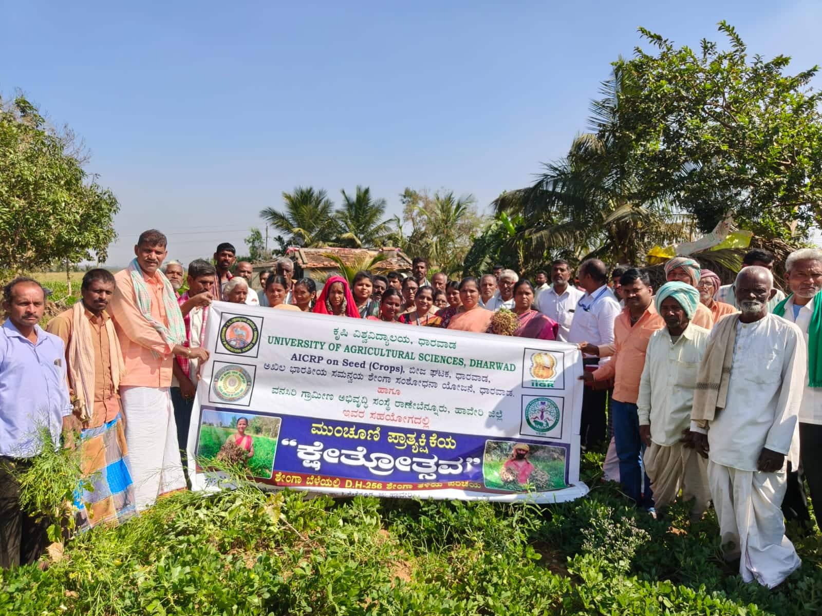 ಅಖಿಲ ಭಾರತ ಸಮನ್ವಯ ಶೇಂಗಾ ಸಂಶೋಧನಾ ಯೋಜನೆ ಬೀಜ ಘಟಕ, ಕೃಷಿ ವಿಶ್ವವಿದ್ಯಾಲಯ ಧಾರವಾಡ ಹಾಗೂ ವನಸಿರಿ ಗ್ರಾಮೀಣ ಅಭಿವೃದ್ದಿ ಸಂಸ್ಥೆ ರಾಣಿಬೆನ್ನೂರು ಇವರ ಸಹಯೋಗದಲ್ಲಿ ಹಿರೇಕೆರೂರು ತಾಲೂಕ ಯಲವದಹಳ್ಳಿ ಗ್ರಾಮದ ನಾಗಪ್ಪ ಗುಡ್ಡಪ್ಪ ಜೋಗೇರ ಇವರ ಜಮೀನಿನಲ್ಲಿ ಡಿ.ಎಚ್.256 ಶೇಂಗಾ ತಳಿಯ ಕ್ಷೇತ್ರೋತ್ಸವ ಜರುಗಿತು.
