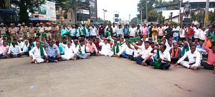 ಪ್ರತಿಟನ್ ಕಬ್ಬಿಗೆ ₹3300 ದರ ನಿಗದಿಪಡಿಸಬೇಕೆಂದು ಆಗ್ರಹಿಸಿ ಸೋಮವಾರ ಪಟ್ಟಣದಲ್ಲಿ ರೈತರು ರಸ್ತೆ ತಡೆ ನಡೆಸಿ ಆಕ್ರೋಶ ವ್ಯಕ್ತಪಡಿಸಿದರು. ರಾಜ್ಯ ಹೆದ್ದಾರಿಯಲ್ಲಿ ಪ್ರತಿಭಟನಾ ಸಭೆ ನಡೆಸಿ, ದರ ನಿಗದಿಯಾಗುವರೆಗೂ ಕಾರ್ಖಾನೆ ಆರಂಭಿಸಬಾರದೆಂದು ಆಗ್ರಹಿಸಿದರು. ಕಾರ್ಖಾನೆ ಆಡಳಿತ ಮಂಡಳಿಯ ರೈತ ವಿರೋಧಿ ಧೋರಣೆ ಖಂಡಿಸಿದ ರೈತರು ಸಮಸ್ಯೆ ಇತ್ಯರ್ಥಪಡಿಸಲು ಶಾಸಕ ದೇಶಪಾಂಡೆಯವರು ಮುಂದಾಗುತ್ತಿಲ್ಲವೆಂದು ಆರೋಪಿಸಿದರು.ಕಾರ್ಖಾನೆ ಆಡಳಿತ ಮಂಡಳಿಯವರು ದರನಿಗದಿಪಡಿಸುವವರೆಗೂ ಕಾರ್ಖಾನೆಯು ಕಬ್ಬು ನುರಿಸುವುದಿಲ್ಲವೆಂದು ಭರವಸೆ ನೀಡಿದ್ದರಿಂದ, ಕಳೆದ ಐದು ದಿನಗಳಿಂದ ಆರಂಭಗೊಂಡ ಆಹೋರಾತ್ರಿ ಧರಣಿಯನ್ನು ಎರಡು ದಿನಗಳವರೆಗೆ ಸ್ಥಗಿತಗೊಳಿಸುವ ನಿರ್ಣಯವನ್ನು ರೈತರು ಕೈಗೊಂಡರು.ರಸ್ತೆತಡೆ: