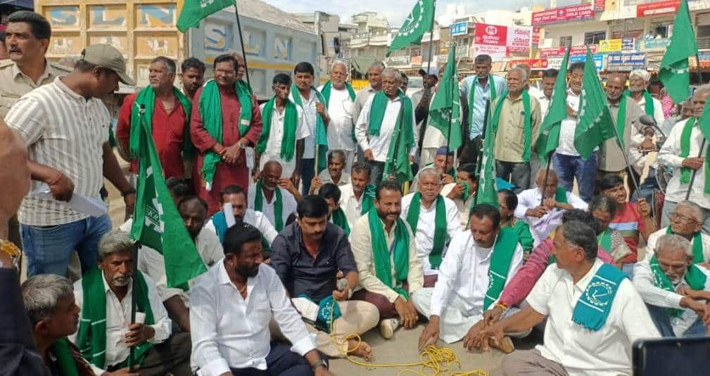 (ಫೋಟೋ ಕ್ಯಾಪ್ಷನ್)ಮಾಗಡಿಯ ಕಲ್ಯಾಗೇಟ್ ವೃತ್ತದಲ್ಲಿ ವಿವಿಧ ಬೇಡಿಕೆ ಈಡೇರಿಕೆಗಾಗಿ ಆಗ್ರಹಿಸಿ ತಾಲೂಕು ಆಡಳಿತ ವಿರುದ್ಧ ರೈತ ಸಂಘದ ಅಧ್ಯಕ್ಷ ಹೊಸಪಾಳ್ಯ ಲೋಕೇಶ್ ನೇತೃತ್ವದಲ್ಲಿ ಹಸಿರು ಸೇನೆ ಹಾಗೂ ರೈತ ಸಂಘದ ಪದಾಧಿಕಾರಿಗಳು ಪ್ರತಿಭಟನೆ ನಡೆಸಿದರು.