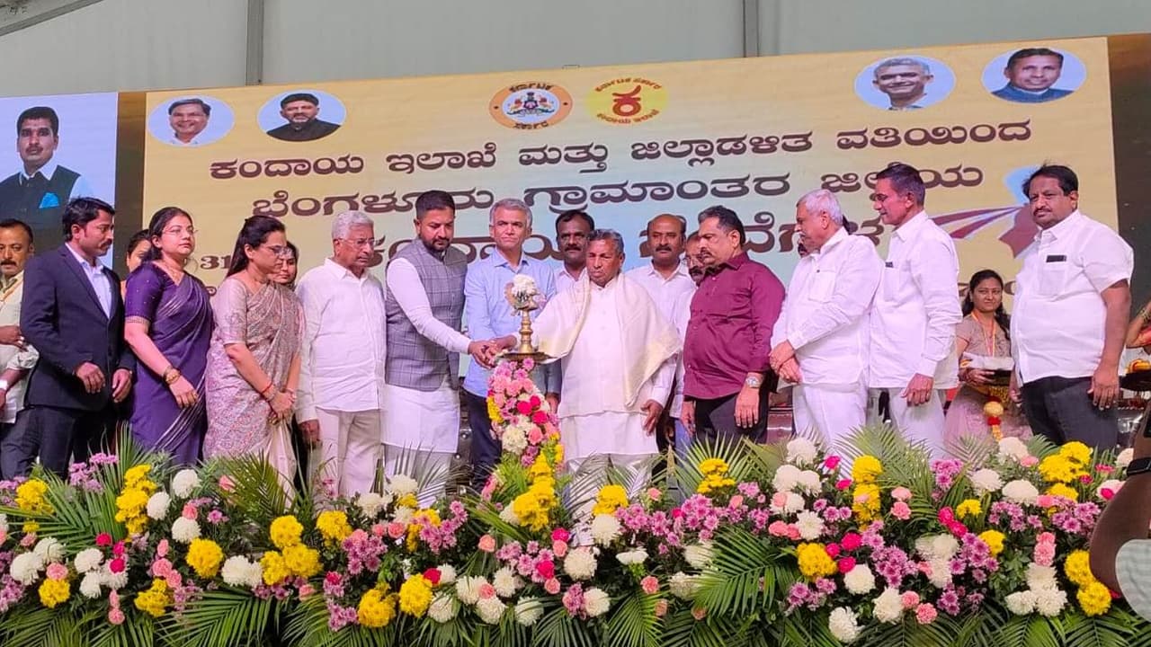 ಹೊಸಕೋಟೆತಲ್ಲಿ ಕಂದಾಯ ಇಲಾಖೆ, ಜಿಲ್ಲಾಡಳಿತದ ಸಹಯೋಗದಲ್ಲಿ ಕಂದಾಯ ಇಲಾಖೆಯ ಸೇವೆಗಳ ಗ್ಯಾರಂಟಿ ಸಮರ್ಪಣಾ ಸಮಾವೇಶವನ್ನು ಸಚಿವರಾದ ಕೃಷ್ಣಬೈರೇಗೌಡ, ಕೆ.ಎಚ್.ಮುನಿಯಪ್ಪ, ಶಾಸಕ ಶರತ್ ಬಚ್ಚೇಗೌಡ ಉದ್ಘಾಟಿಸಿದರು.