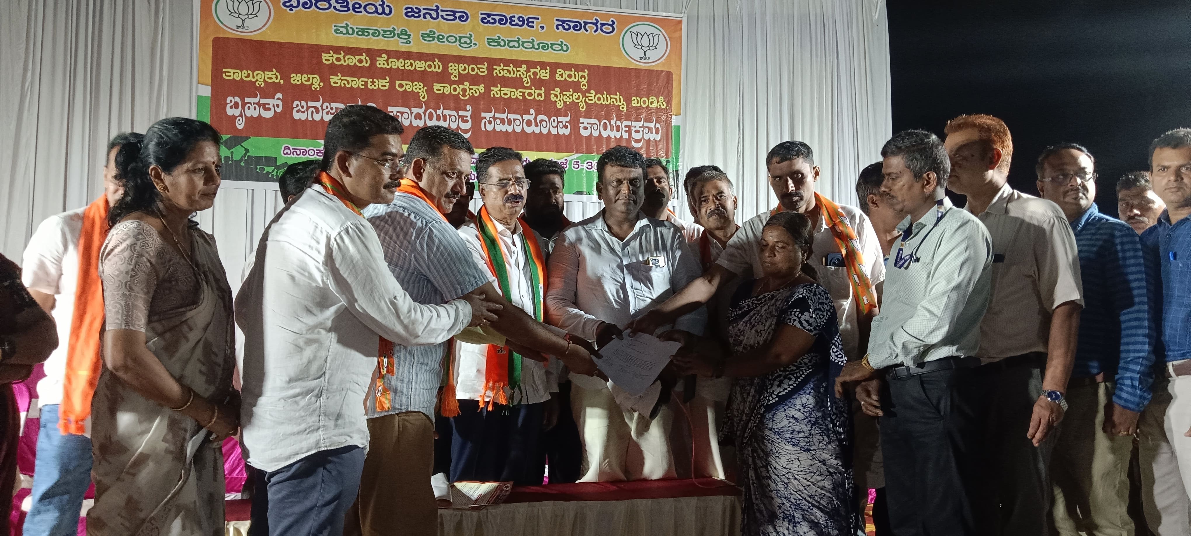 ಮಹಾಶಕ್ತಿ ಕೇಂದ್ರದ ಅಧ್ಯಕ್ಷ ಸುಧೀಂದ್ರ ಹೊಸಕೊಪ್ಪ, ತಾಲೂಕು ಅಧ್ಯಕ್ಷ ದೇವೇಂದ್ರಪ್ಪ. ಕೆ.ಎಸ್. ಪ್ರಶಾಂತ್, ಪ್ರಮುಖರಾದ ದೇವೇಂದ್ರಪ್ಪ, ಮಾಜಿ ತಾಲೂಕು ಪಂಚಾಯತ್ ಅಧ್ಯಕ್ಷ ಹಕ್ರೆ ಮಲ್ಲಿಕಾರ್ಜುನ್. ನಾಗರಾಜ್ ಬೊಬ್ಬಿಗೆ ಸೇರಿದಂತೆ ಸಾವಿರಾರು ರೈತರು ಹಾಗೂ ಪಕ್ಷದ ಕಾರ್ಯಕರ್ತರು ಪಾಲ್ಗೊಂಡು ಸರ್ಕಾರದ ವಿರುದ್ಧ ಘೋಷಣೆ ಕೂಗಿದರು.ರೈತರ ಹಕ್ಕುಪತ್ರಕ್ಕೆ ಹಣ ವಸೂಲಿ